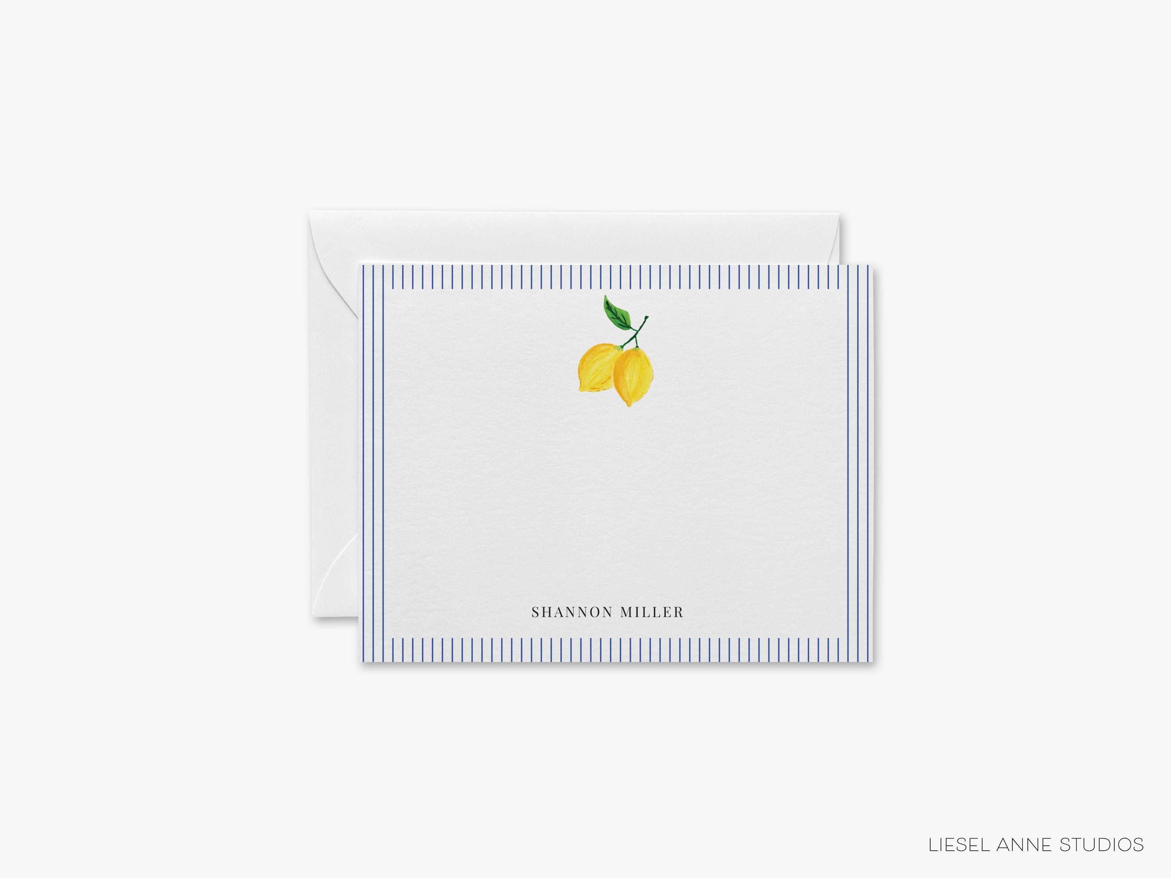 • Sets of Personalized Lemon Flat Note Cards + White or Kraft Envelopes