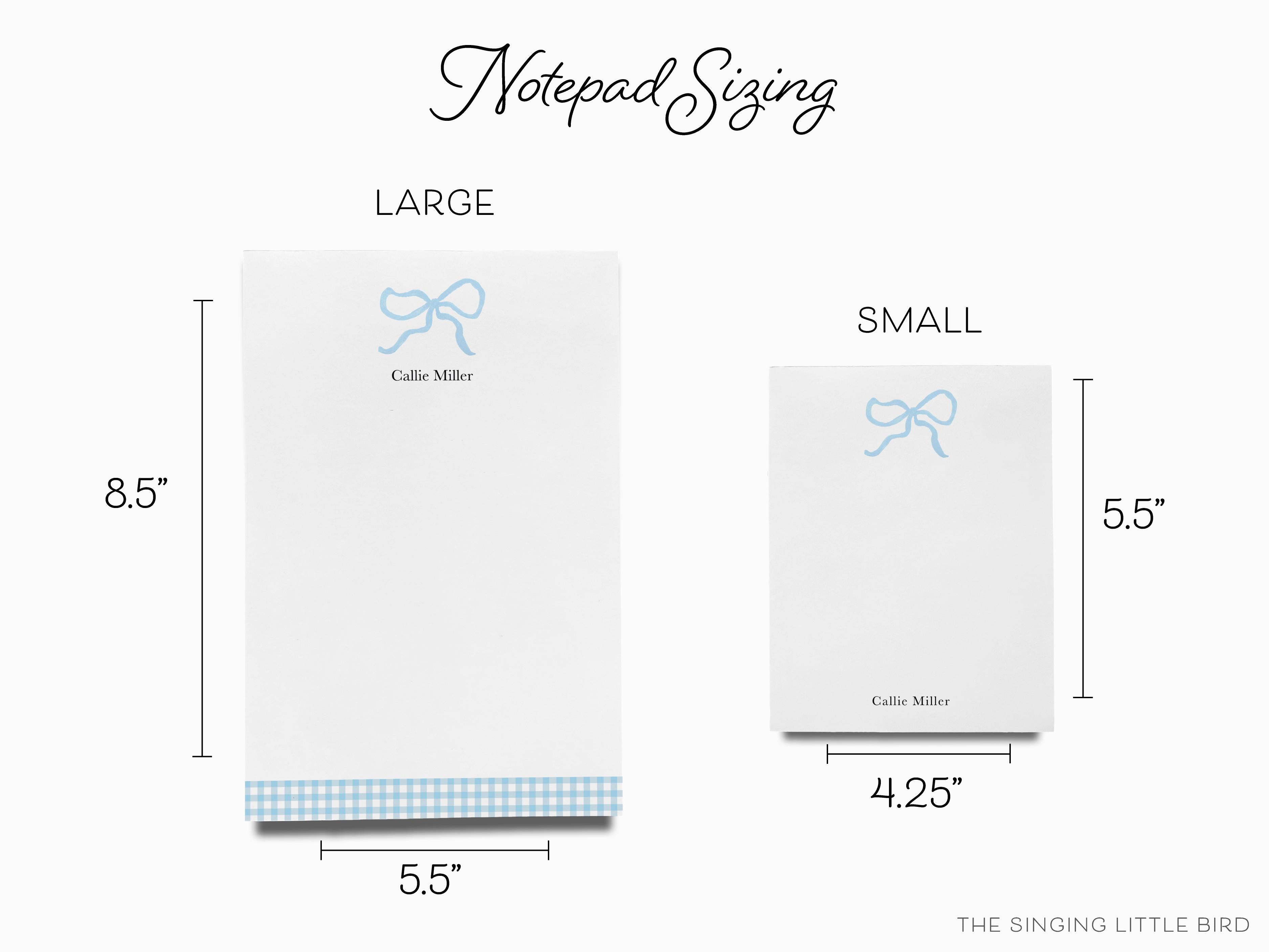 Light Blue Bow Notepad | Blue Gingham Notepad Set | Blue To Do List | Preppy Feminine Notepads | Personalized Gift | Hostess Gift Blue Bow
