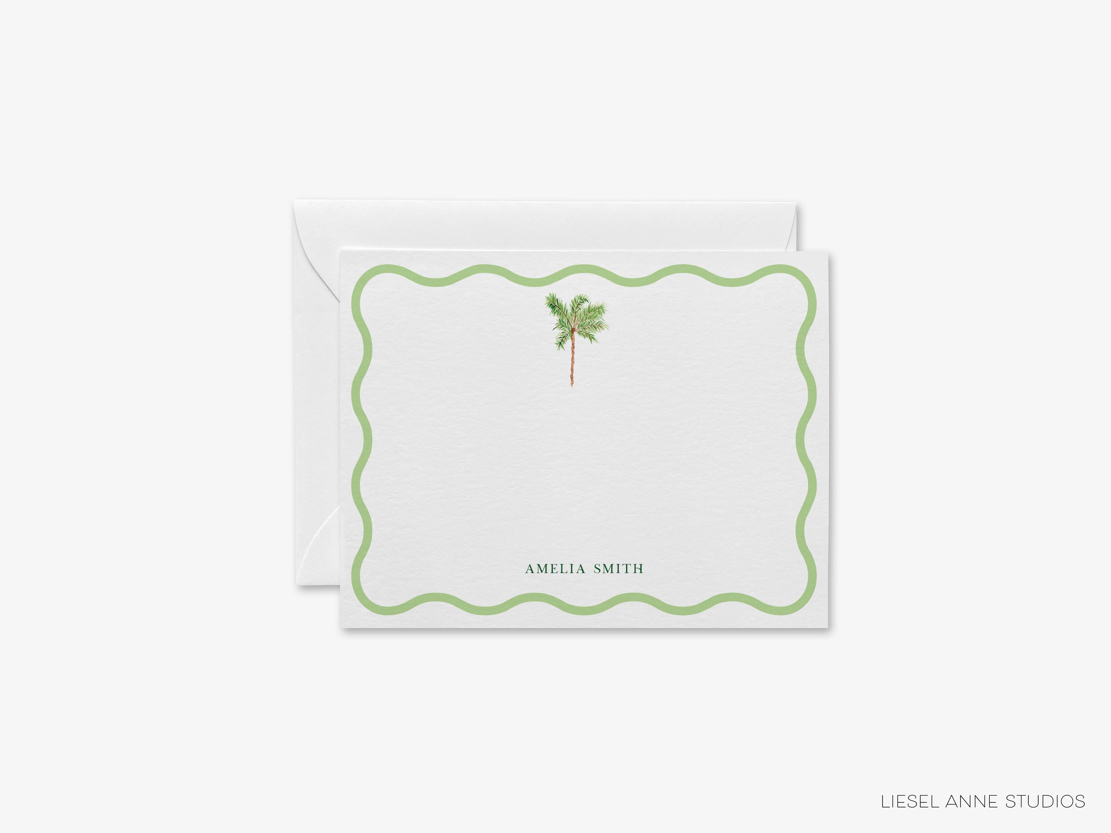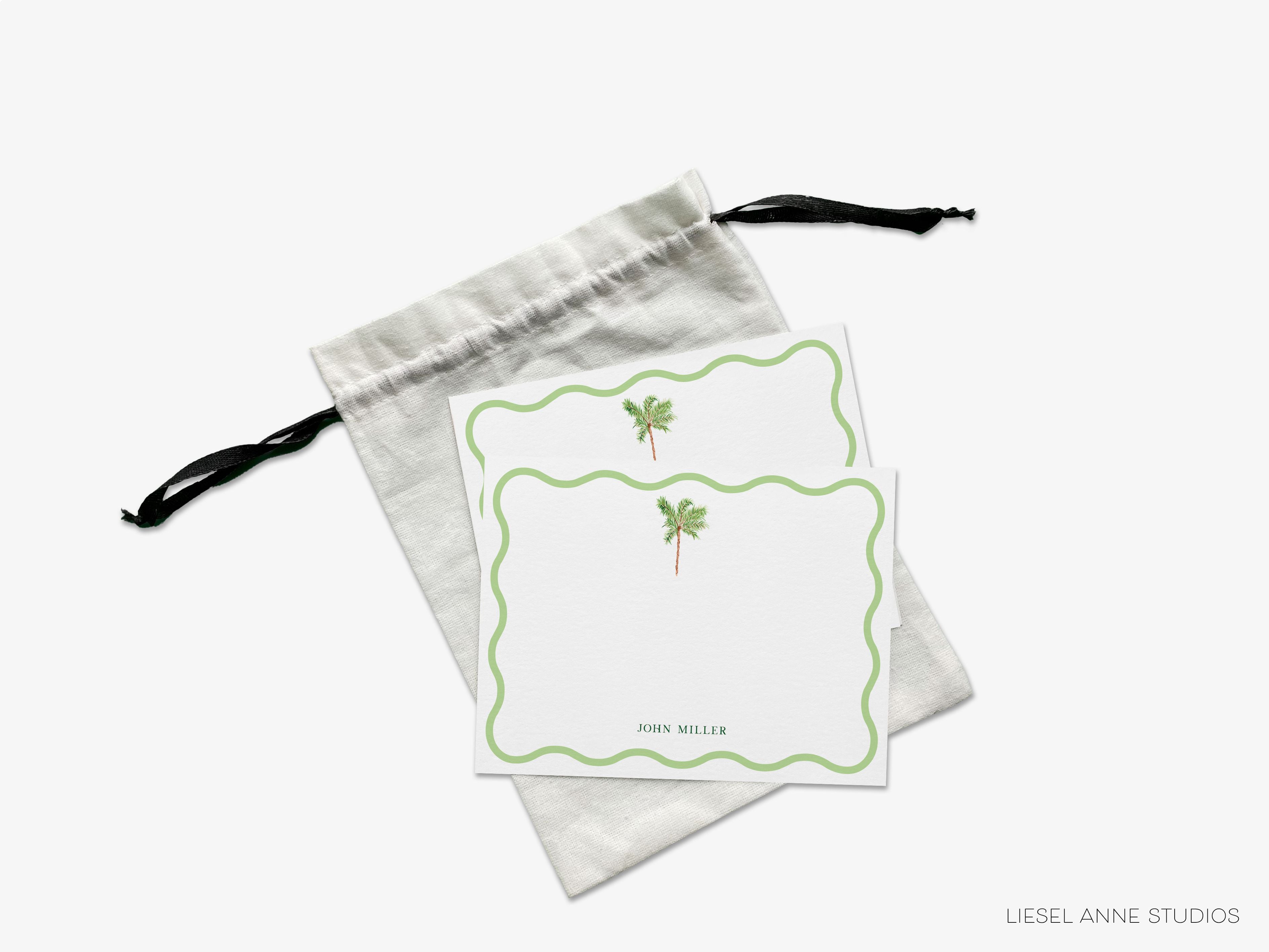 • Sets of Personalized Palm Tree Flat Note Cards + White or Kraft Envelopes