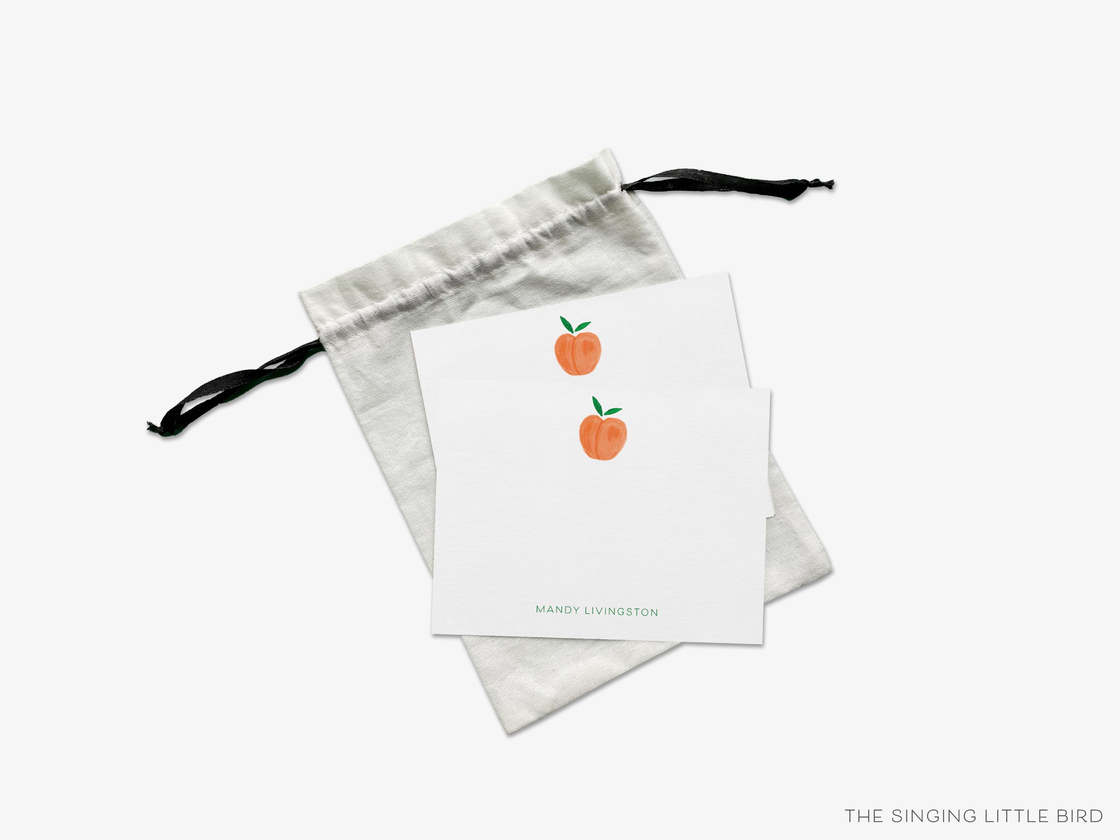 • Sets of Personalized Peach Flat Note Cards + White or Kraft Envelopes