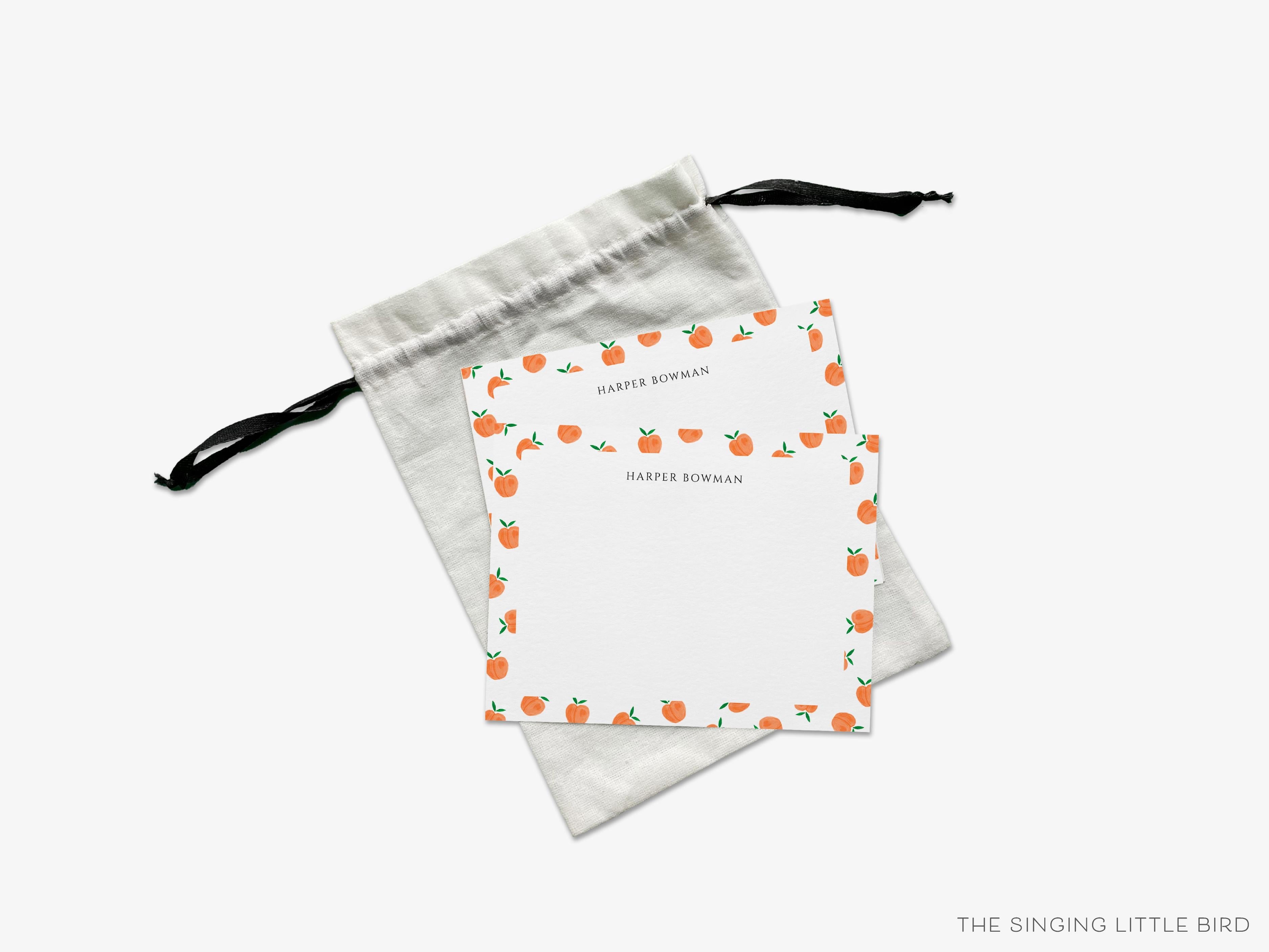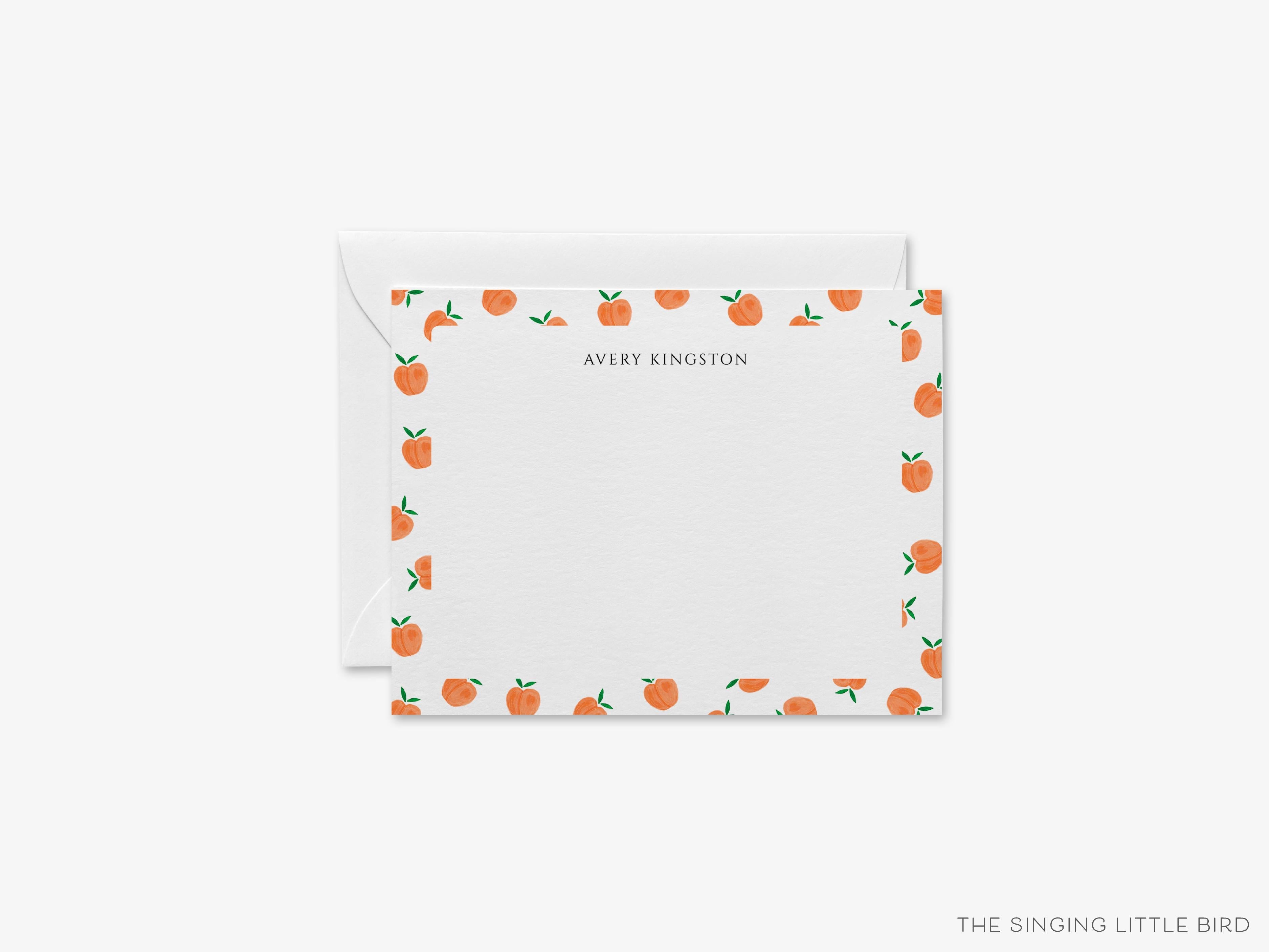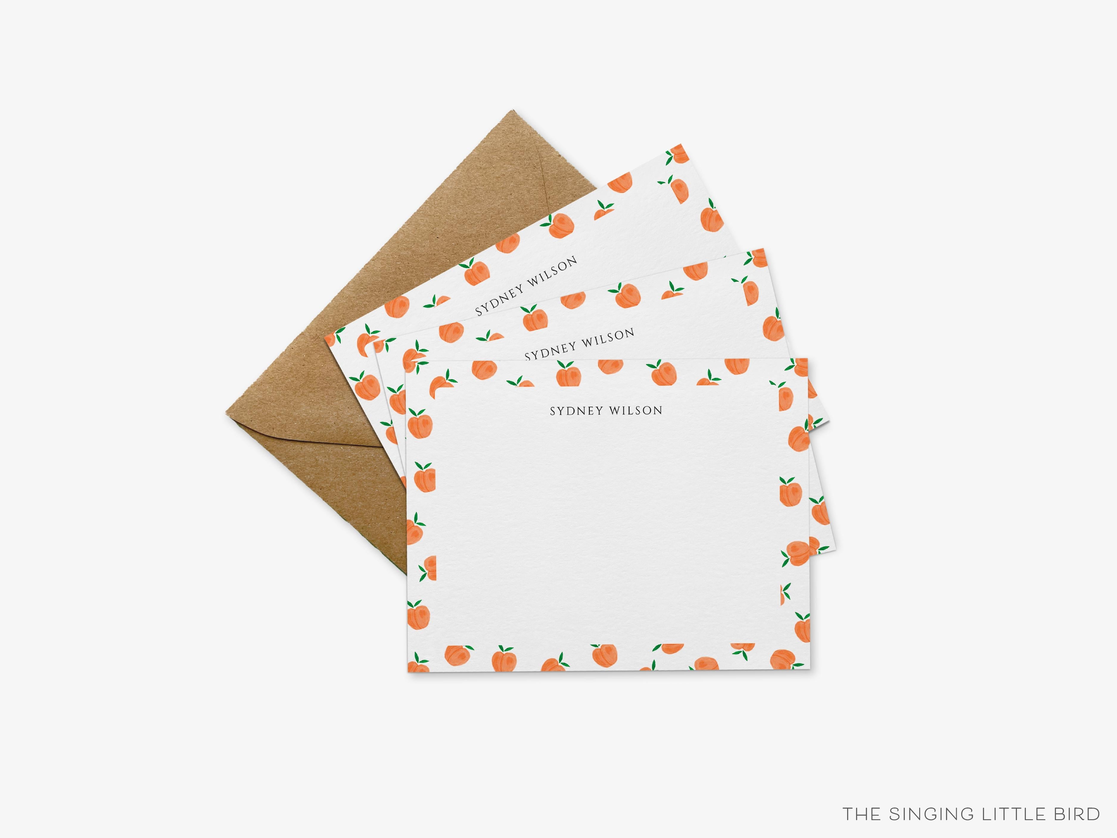 • Sets of Personalized Peaches Flat Note Cards + White or Kraft Envelopes