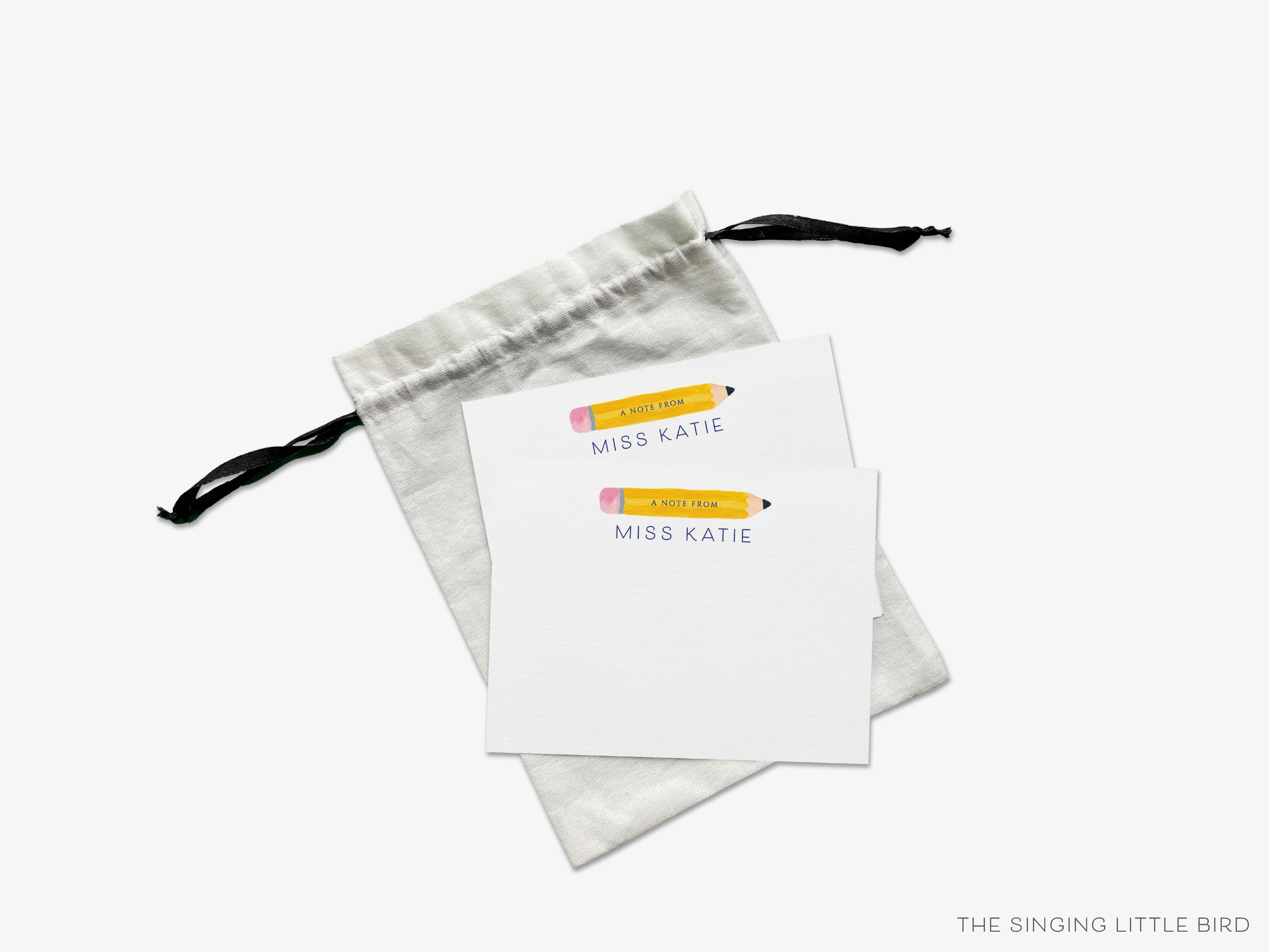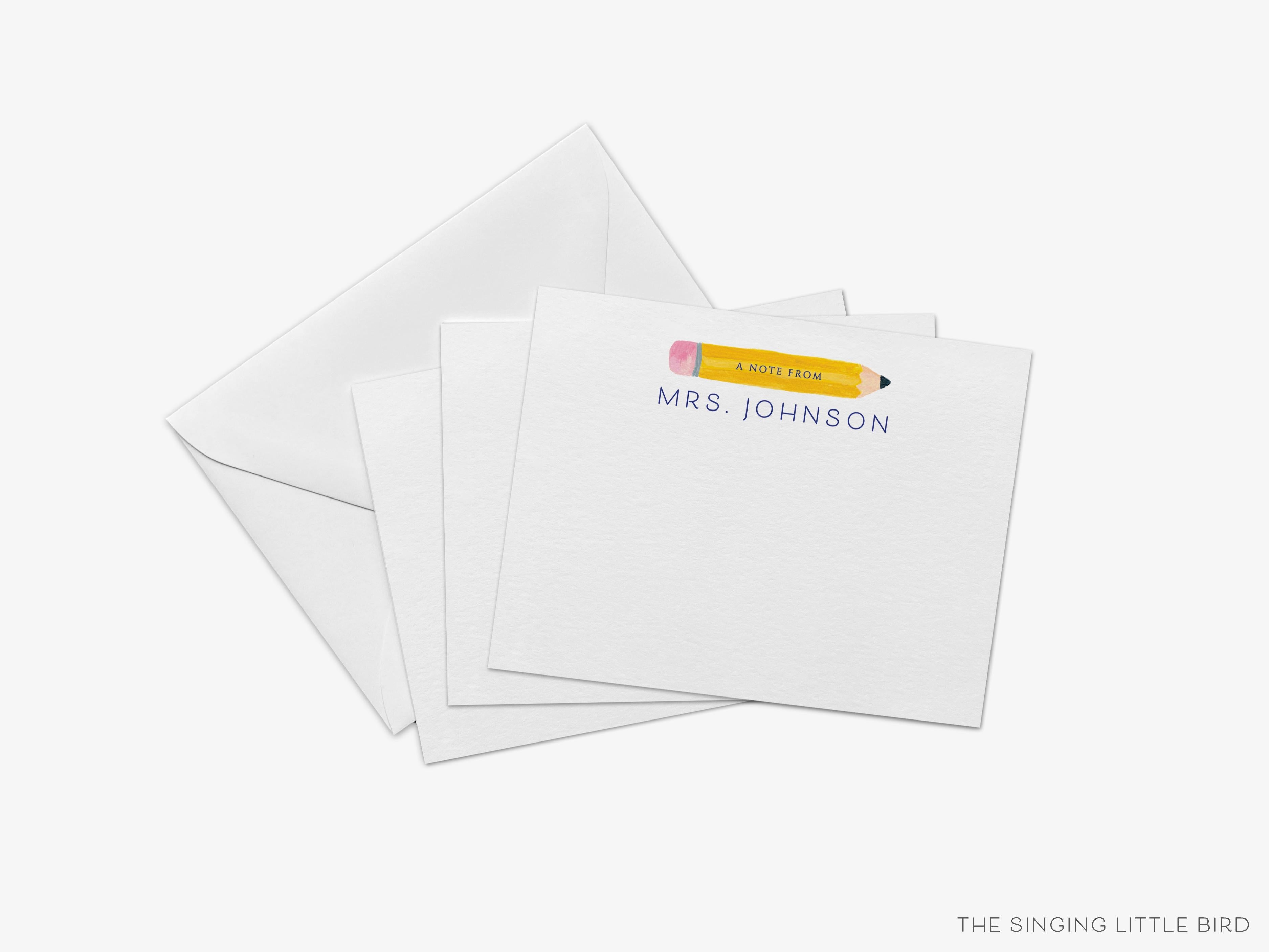 • Sets of Personalized Pencil Teacher Flat Note Cards + White or Kraft Envelopes