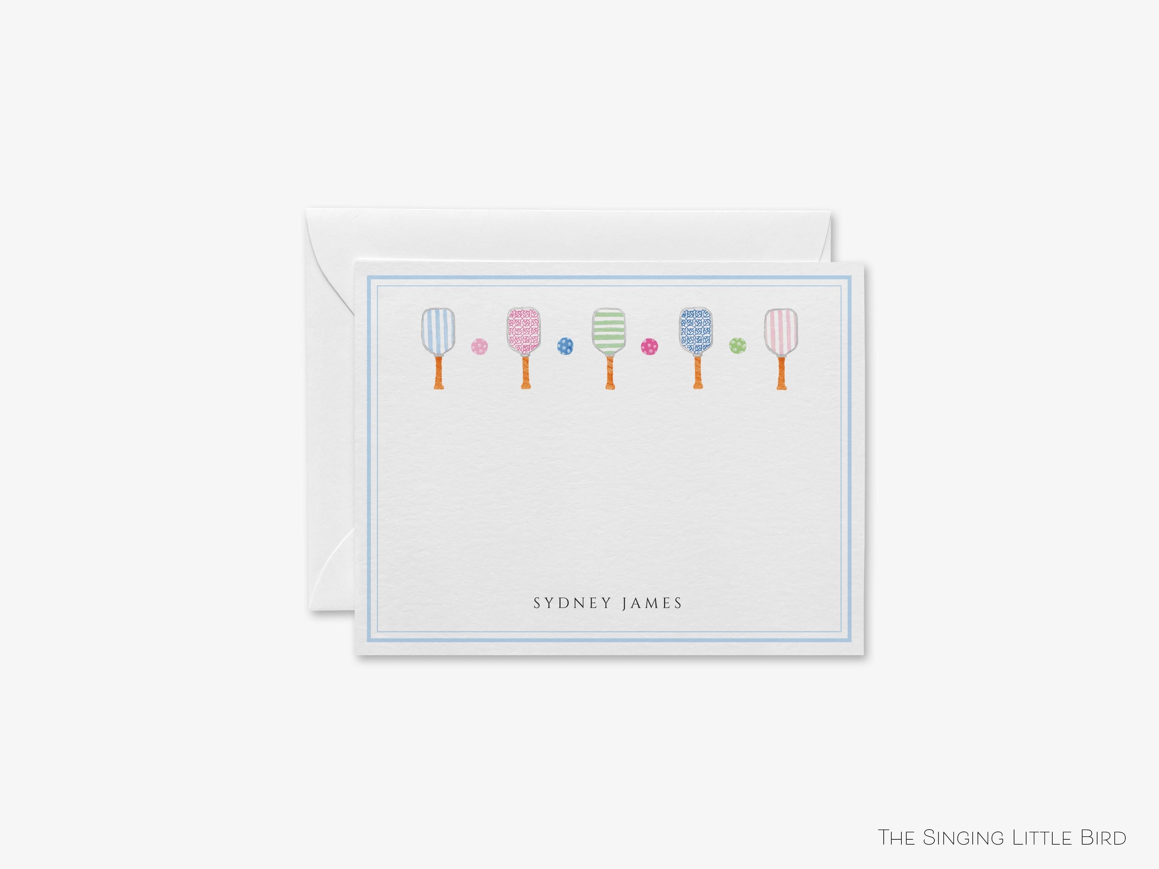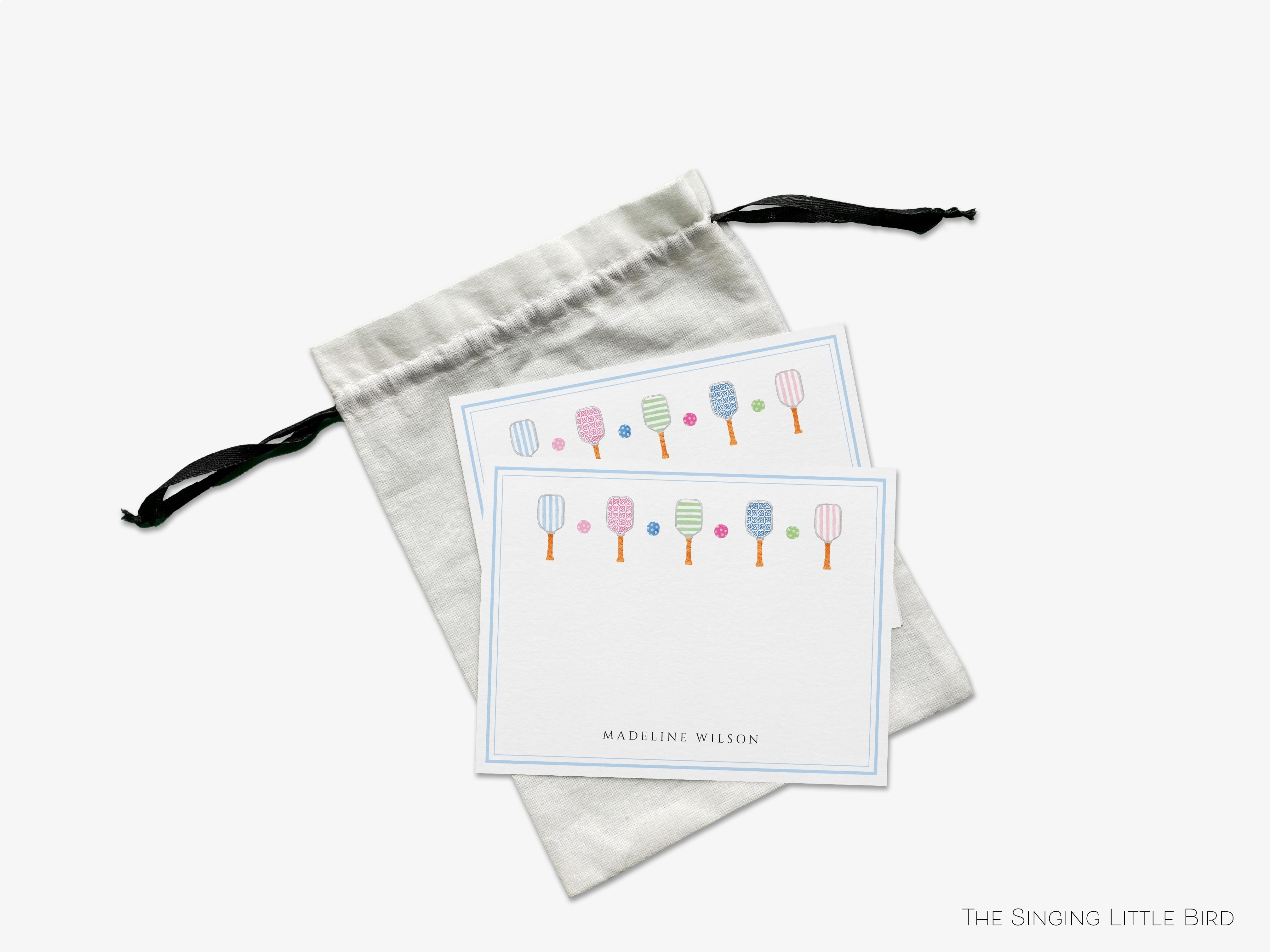• Sets of Personalized Pickleball Flat Note Cards + White or Kraft Envelopes
