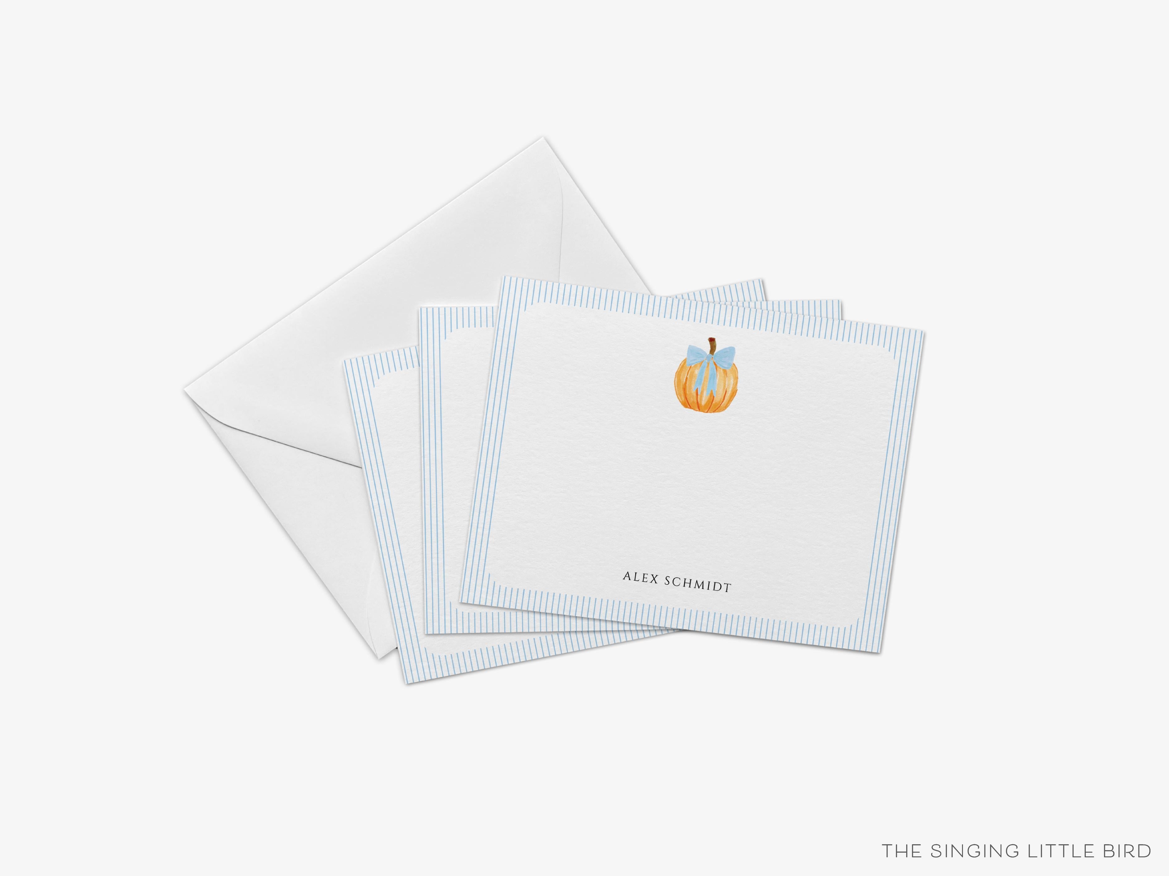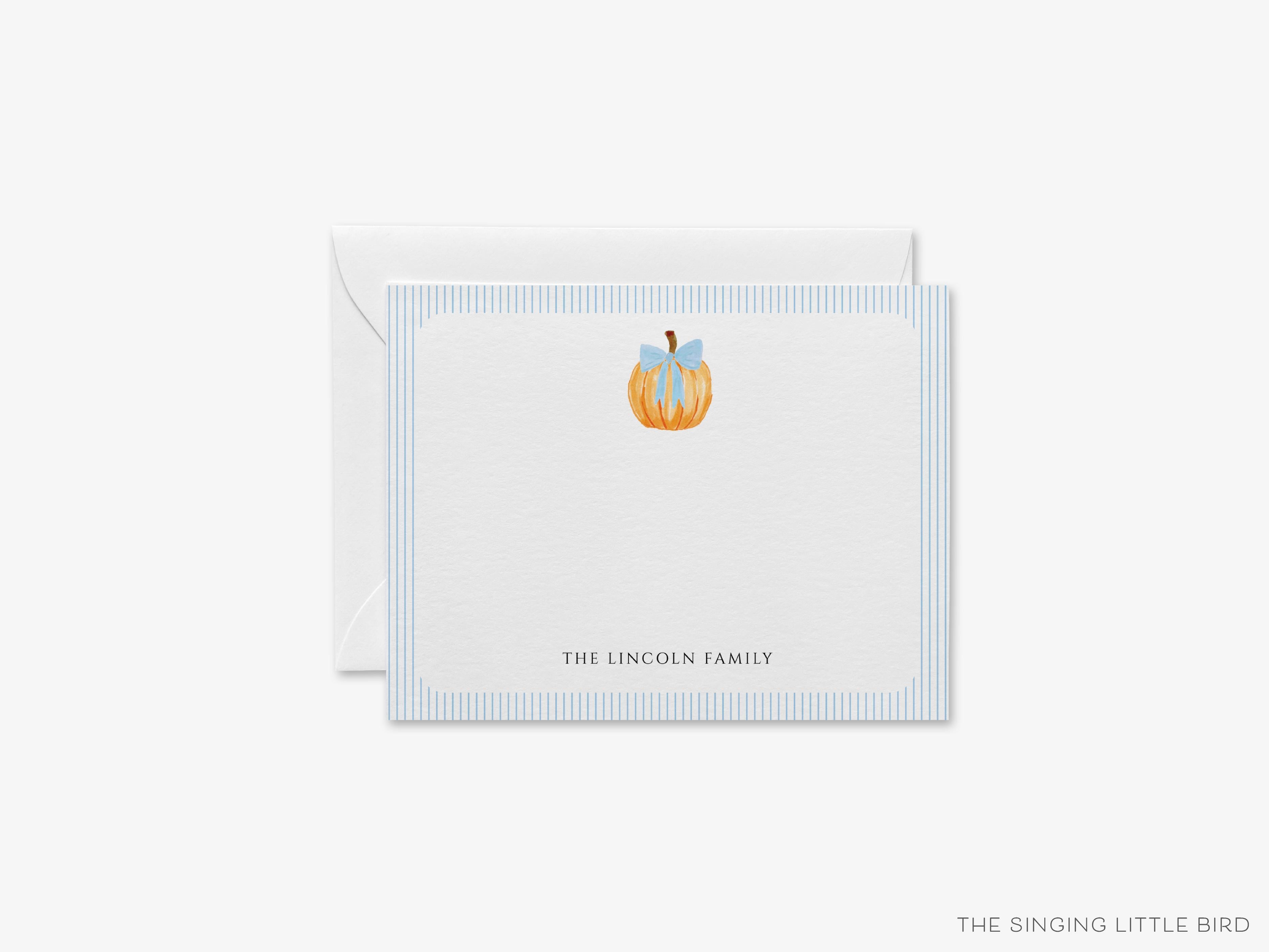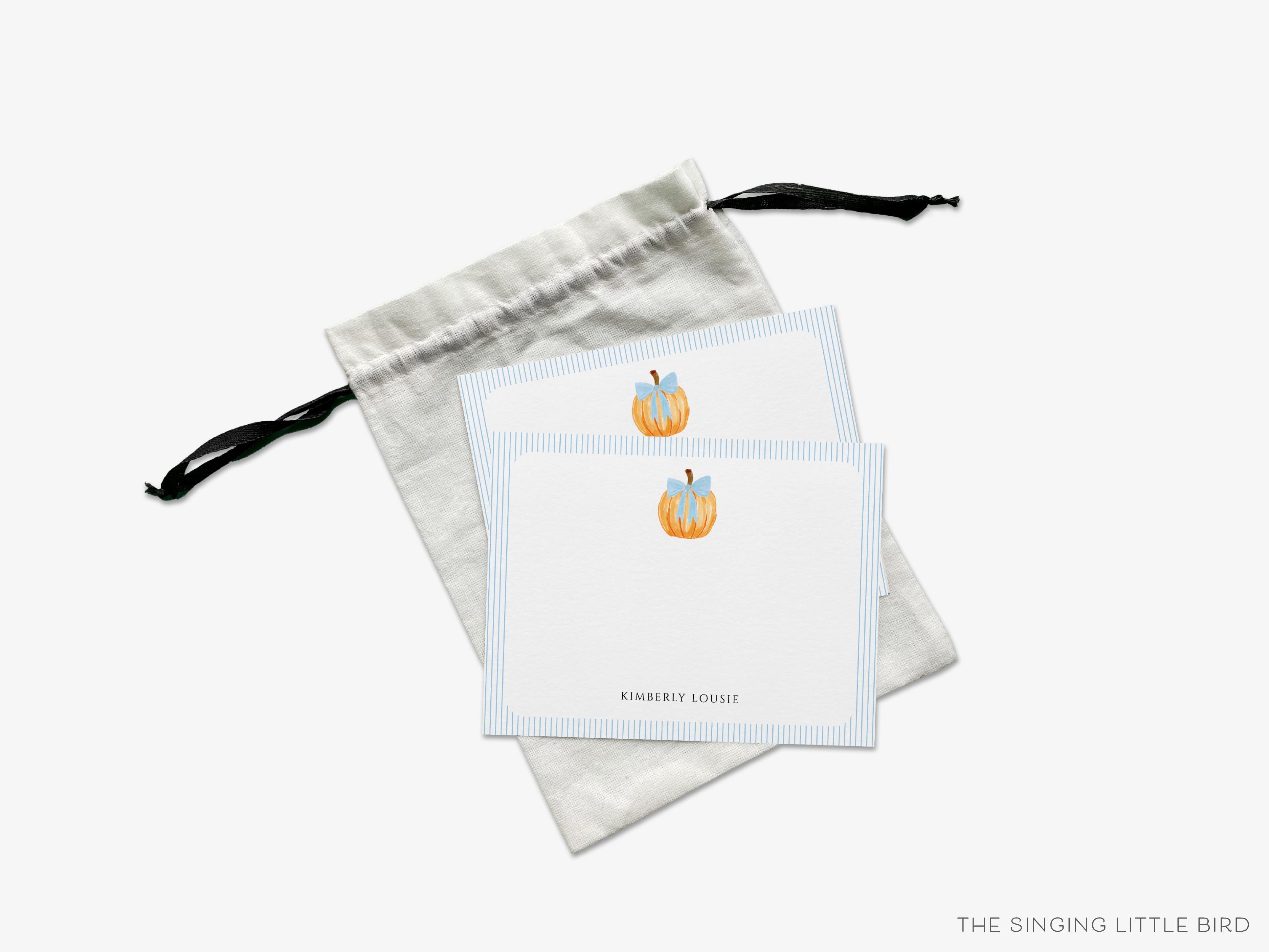 Pumpkins Personalized Stationery | Blue Bow Fall Watercolor Notecards | Autumn Light Blue Thank You | Pumpkin Thank You Notes | Preppy Card