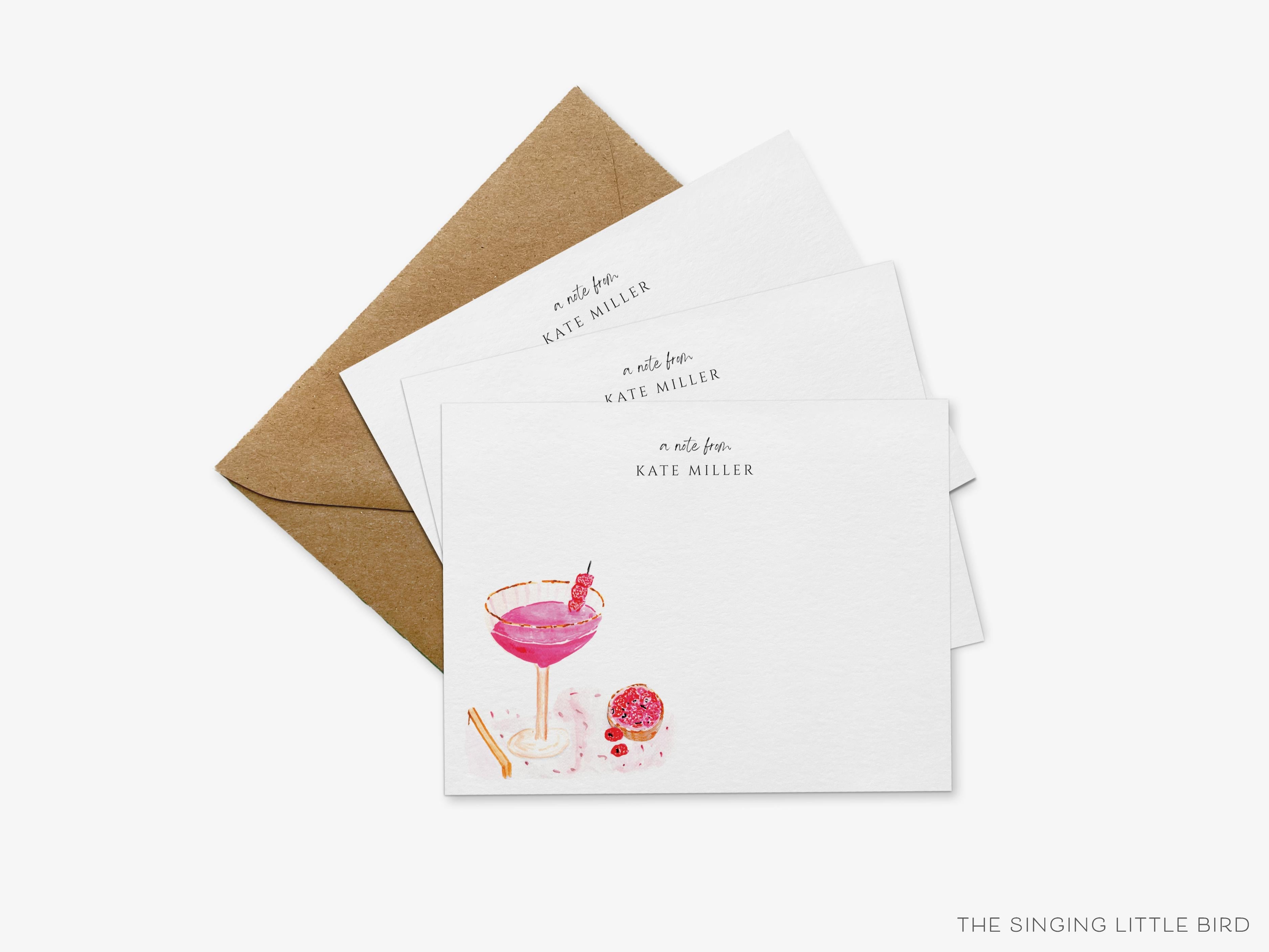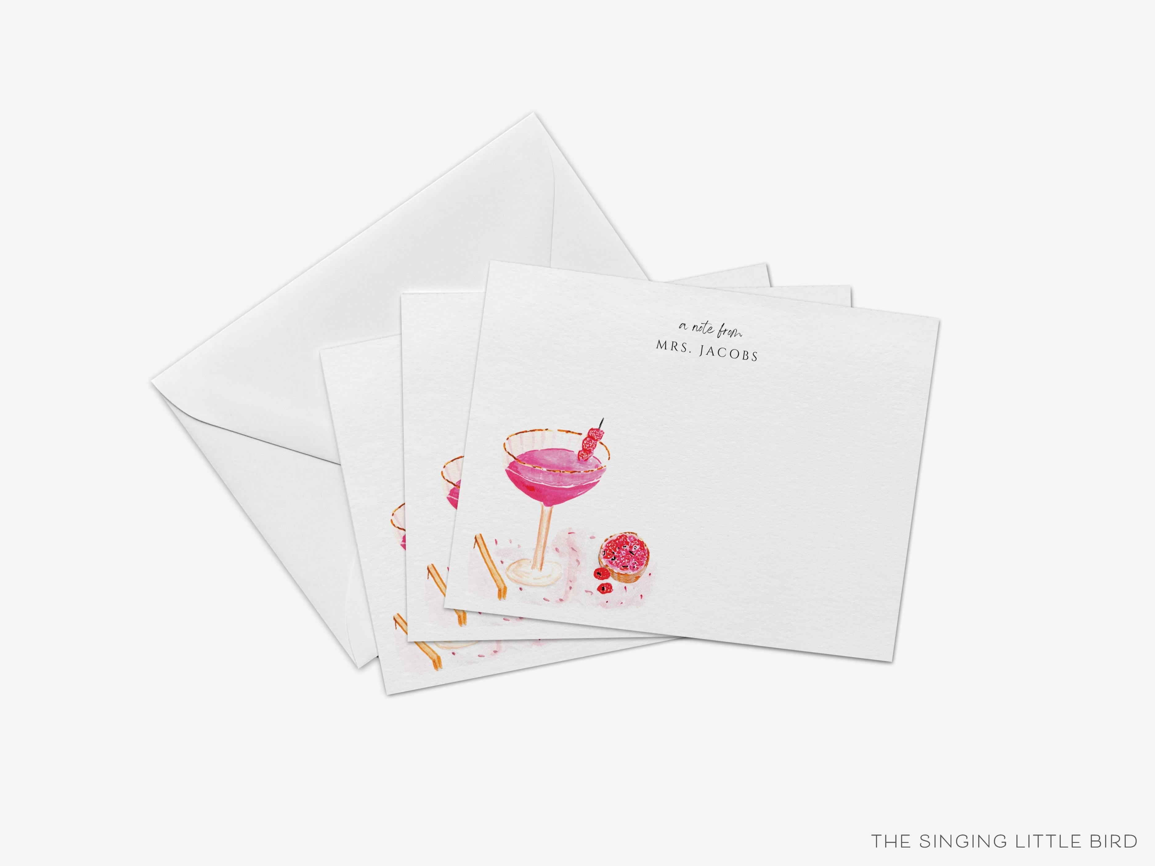 Personalized Cocktail Lover Stationery | Bar Cart Thank You Notes | Drink | Feminine Notecard Set | Pink Greeting Cards | Coupe Glass Cards