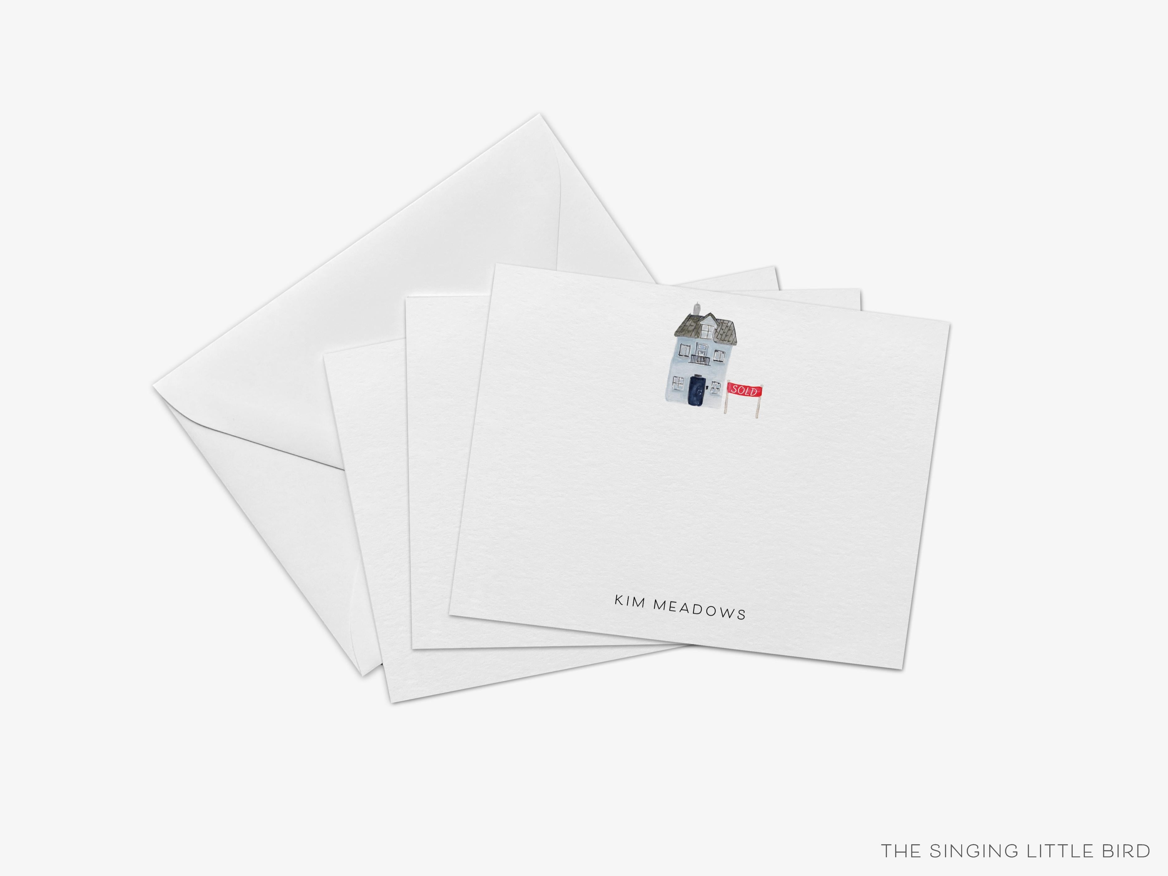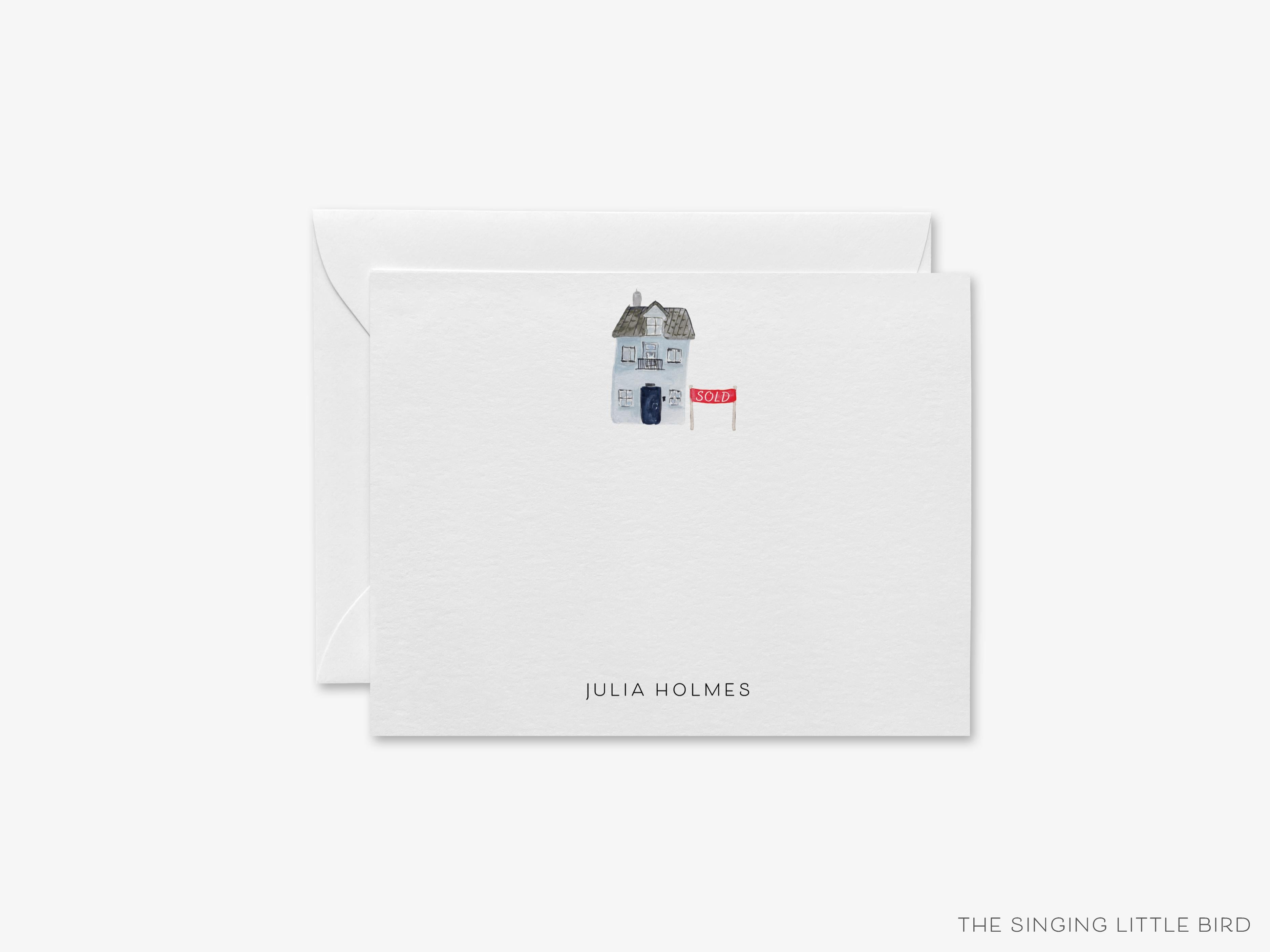 • Sets of Personalized Realtor House Sold Flat Note Cards + White or Kraft Envelopes