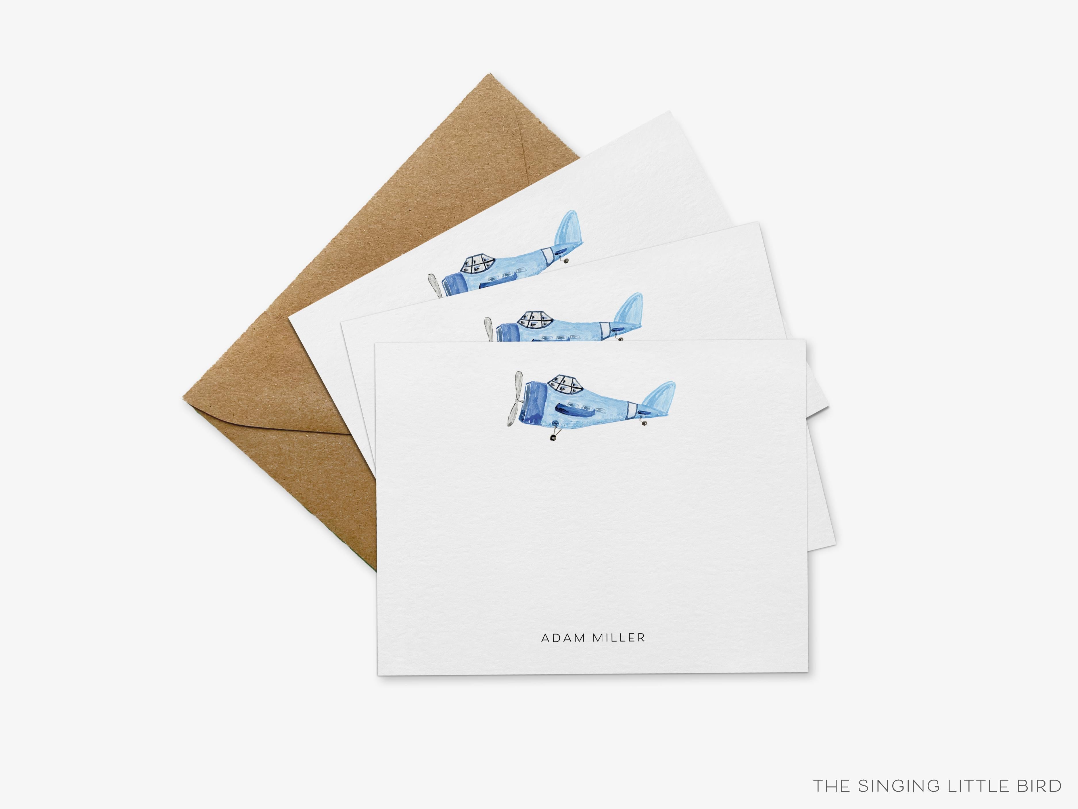 • Sets of Personalized Vintage Airplane Flat Note Cards + White or Kraft Envelopes