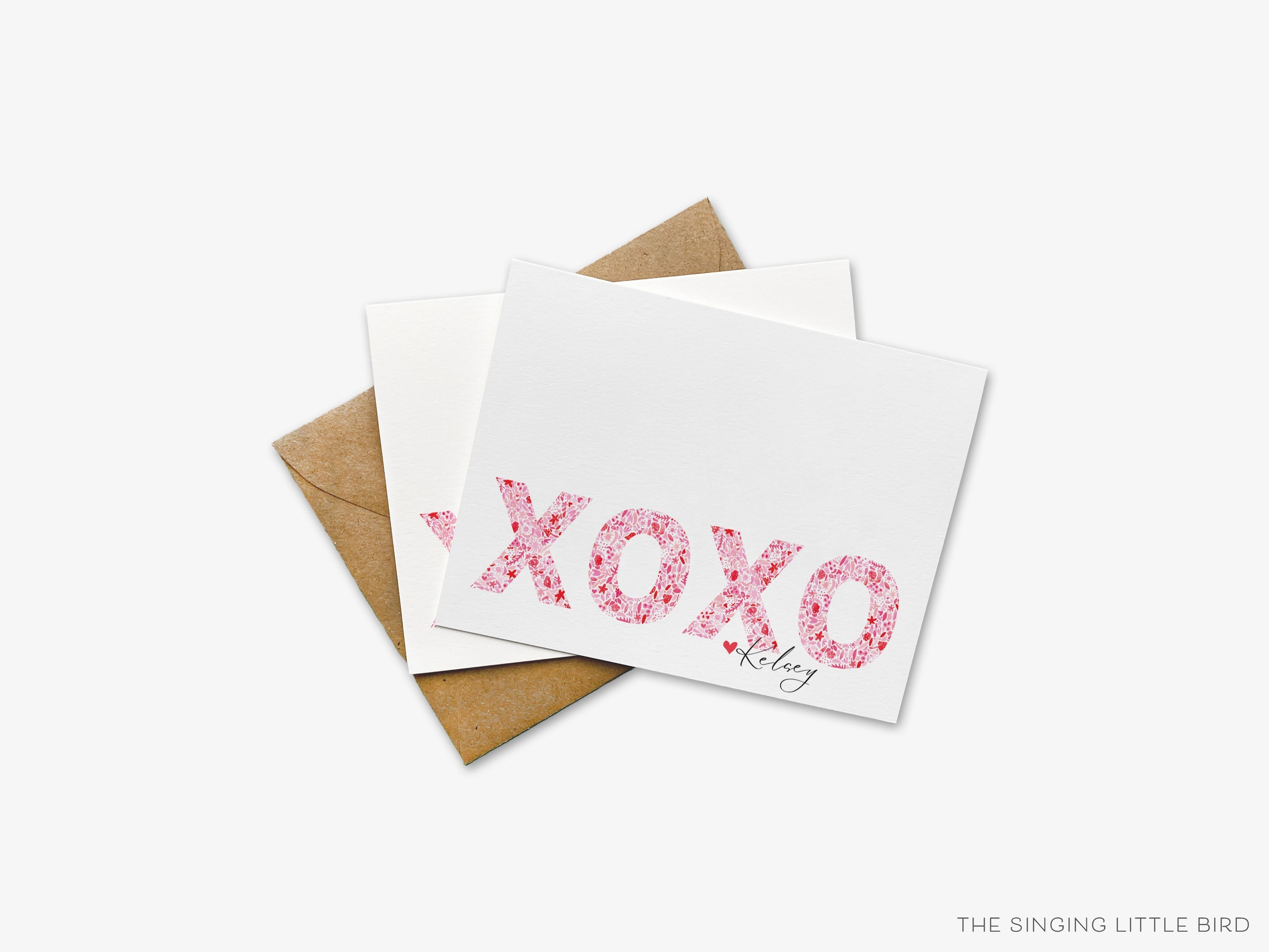 • Folded Personalized XOXO Pink and Red Pattern Greeting Cards + White or Kraft Envelopes