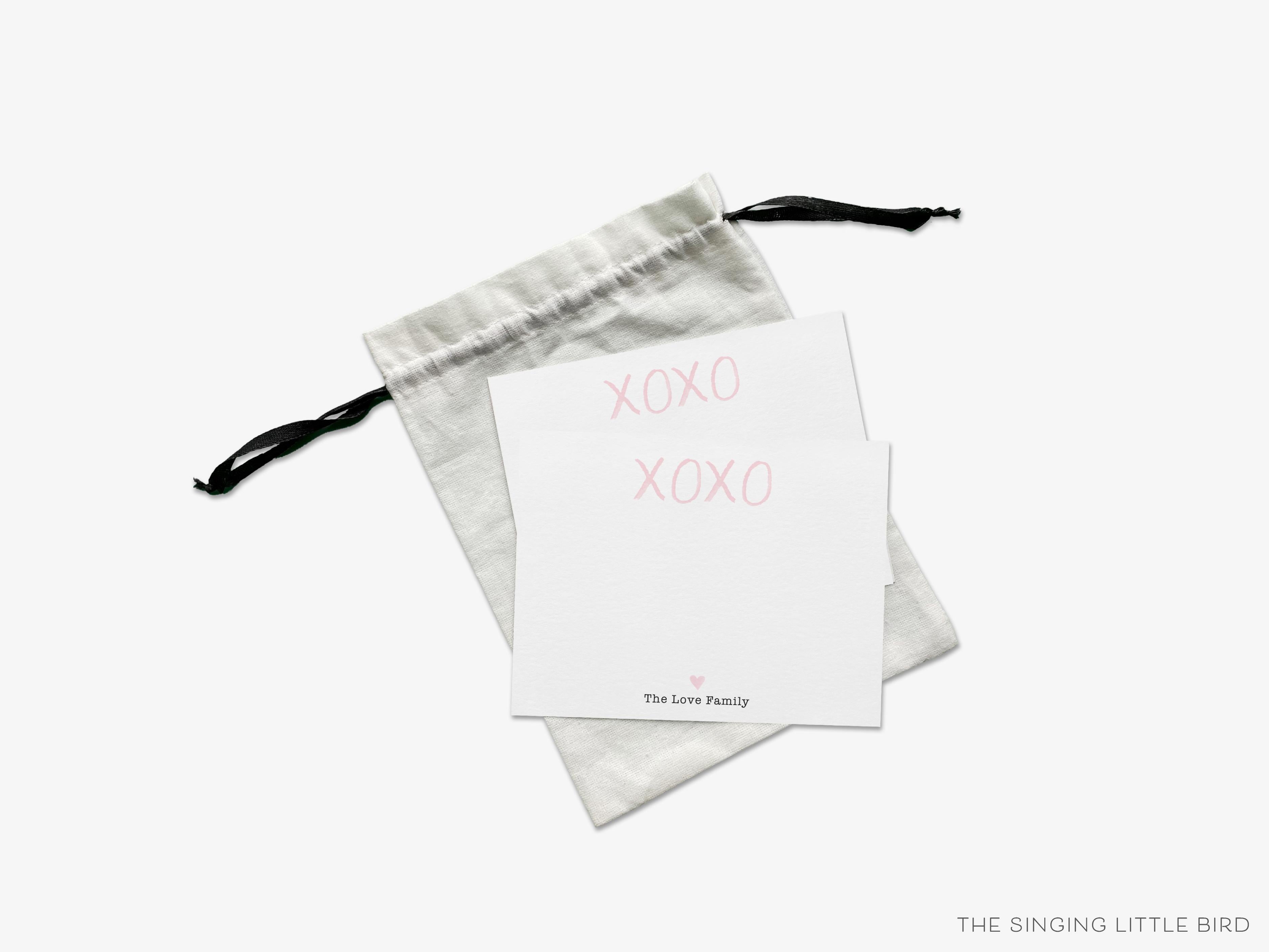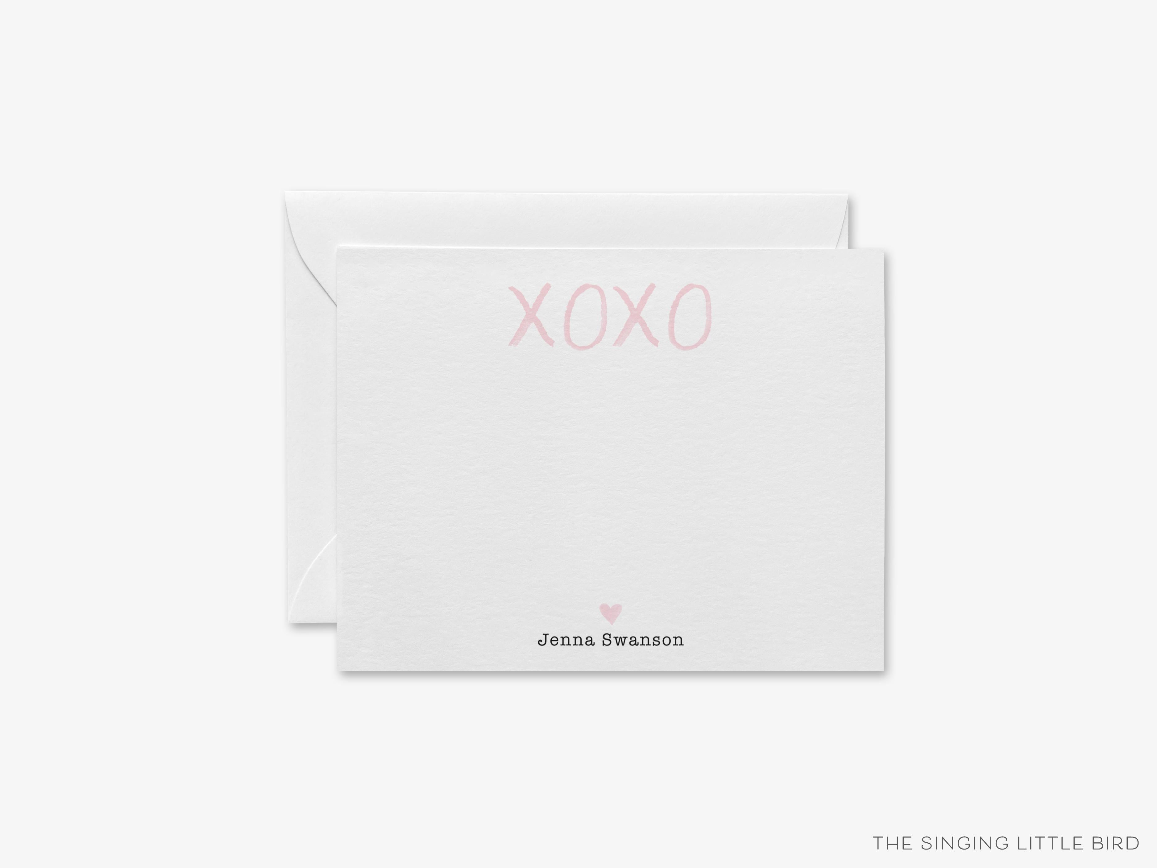 • Sets of Personalized XOXO Pink Heart Flat Note Cards + White or Kraft Envelopes