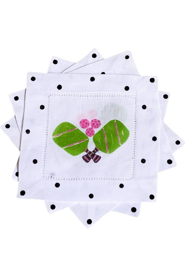 Serve up these custom designed Pickleball linen cocktail napkins at your summer party. The perfect complement to any beverage. Having the option to personalize them makes them a great hostess, housewarming, and birthday gift idea for the tennis lover