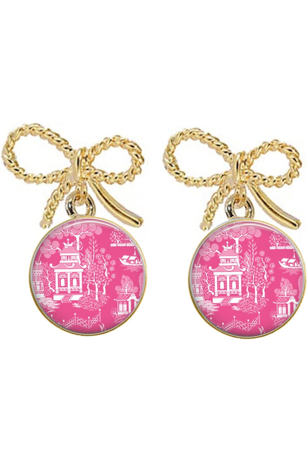 Pink Chinoiserie Earrings, Many Styles, Silver or Gold