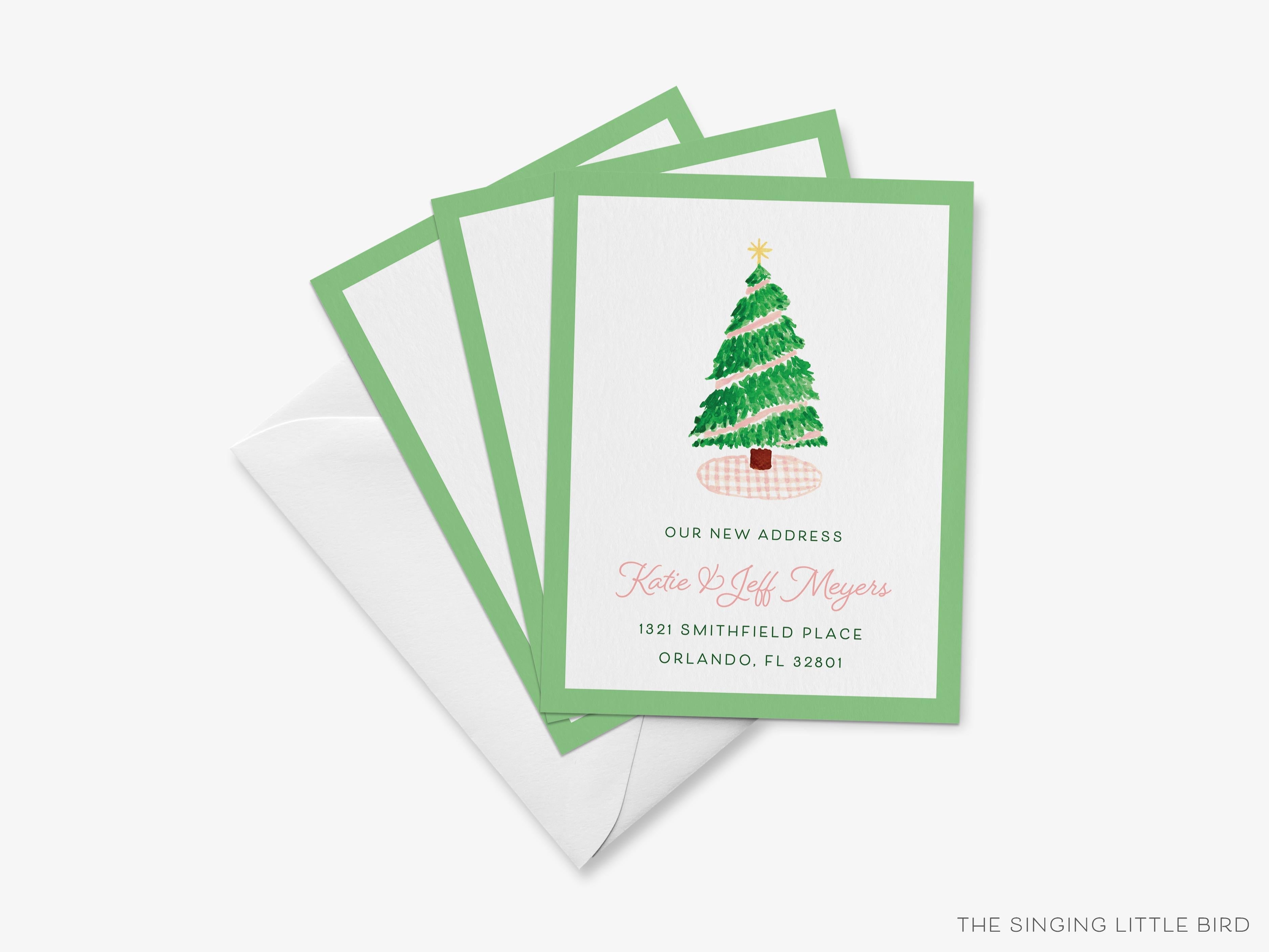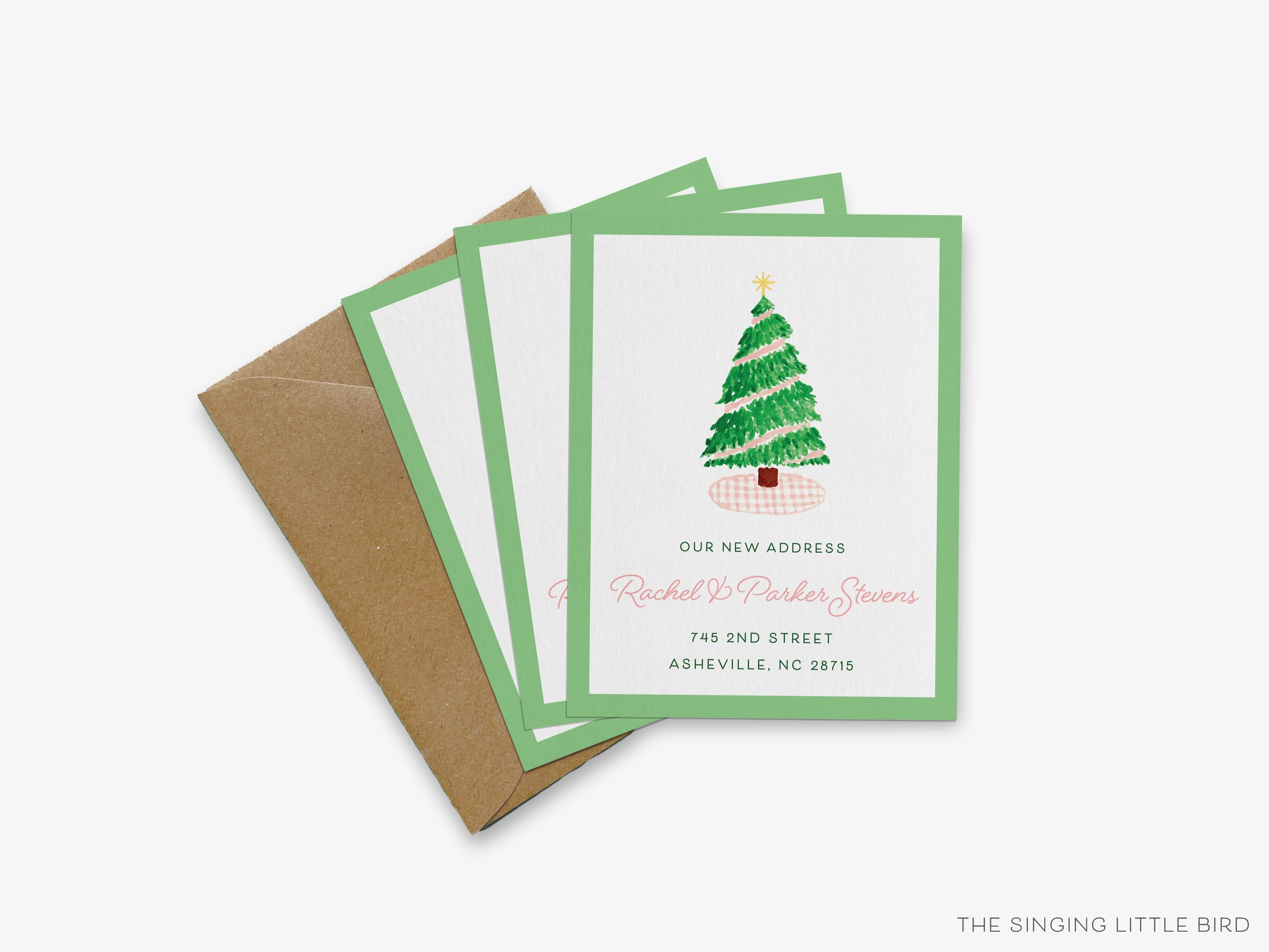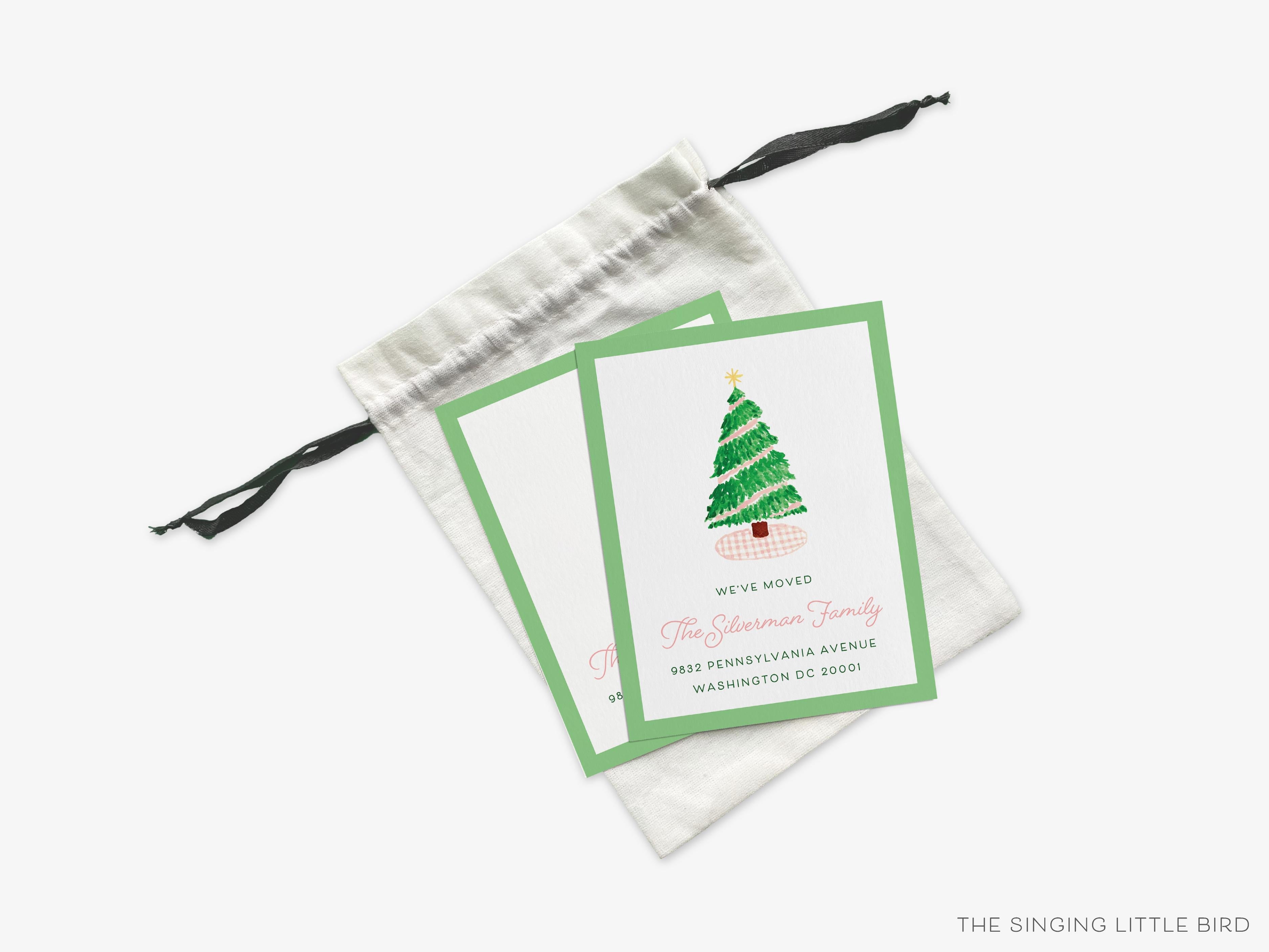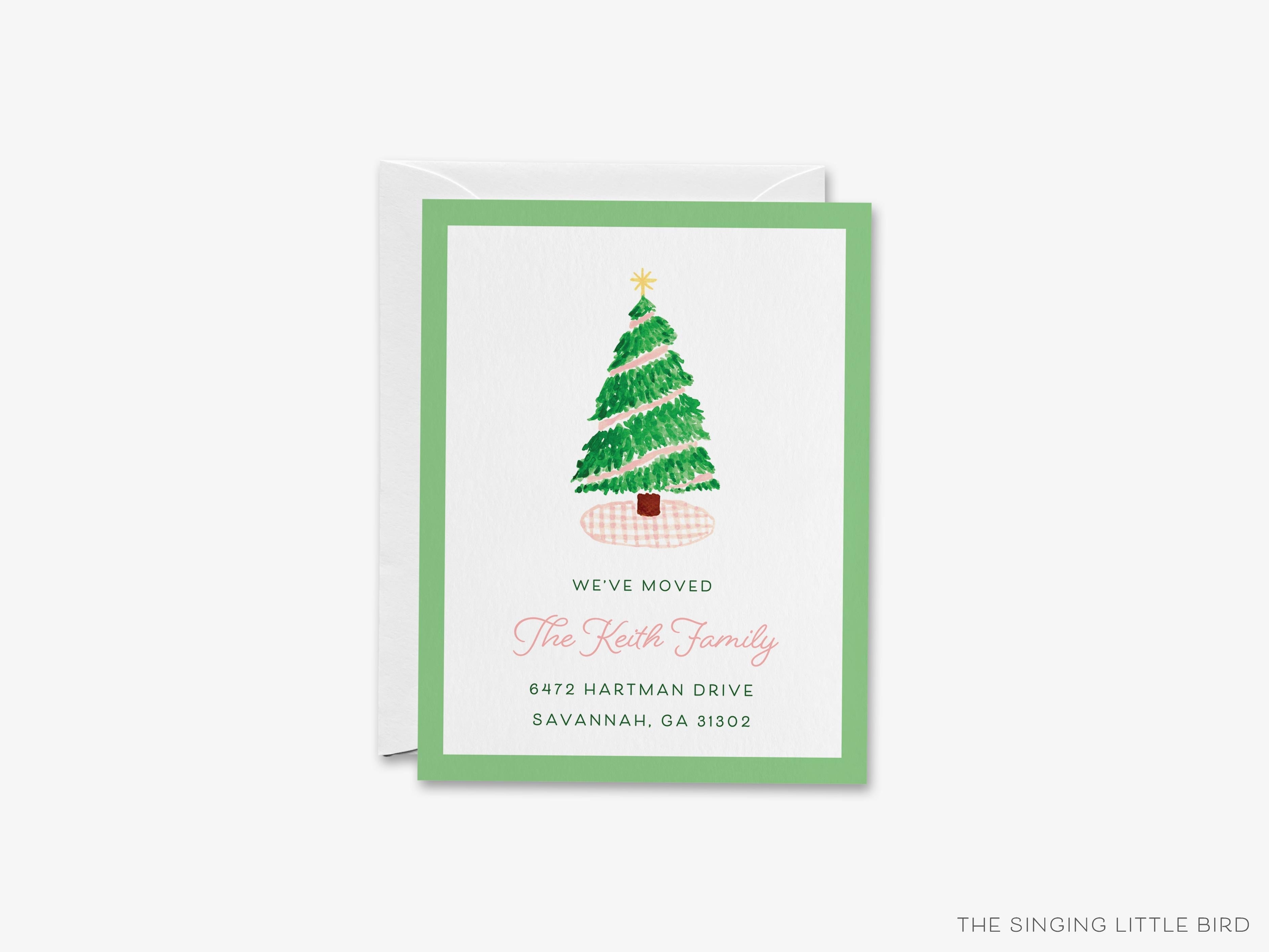Christmas Moving Announcement | Holiday Change of Address | We've Moved Card | New Address Cards | Pink Gingham Preppy Christmas Tree Card