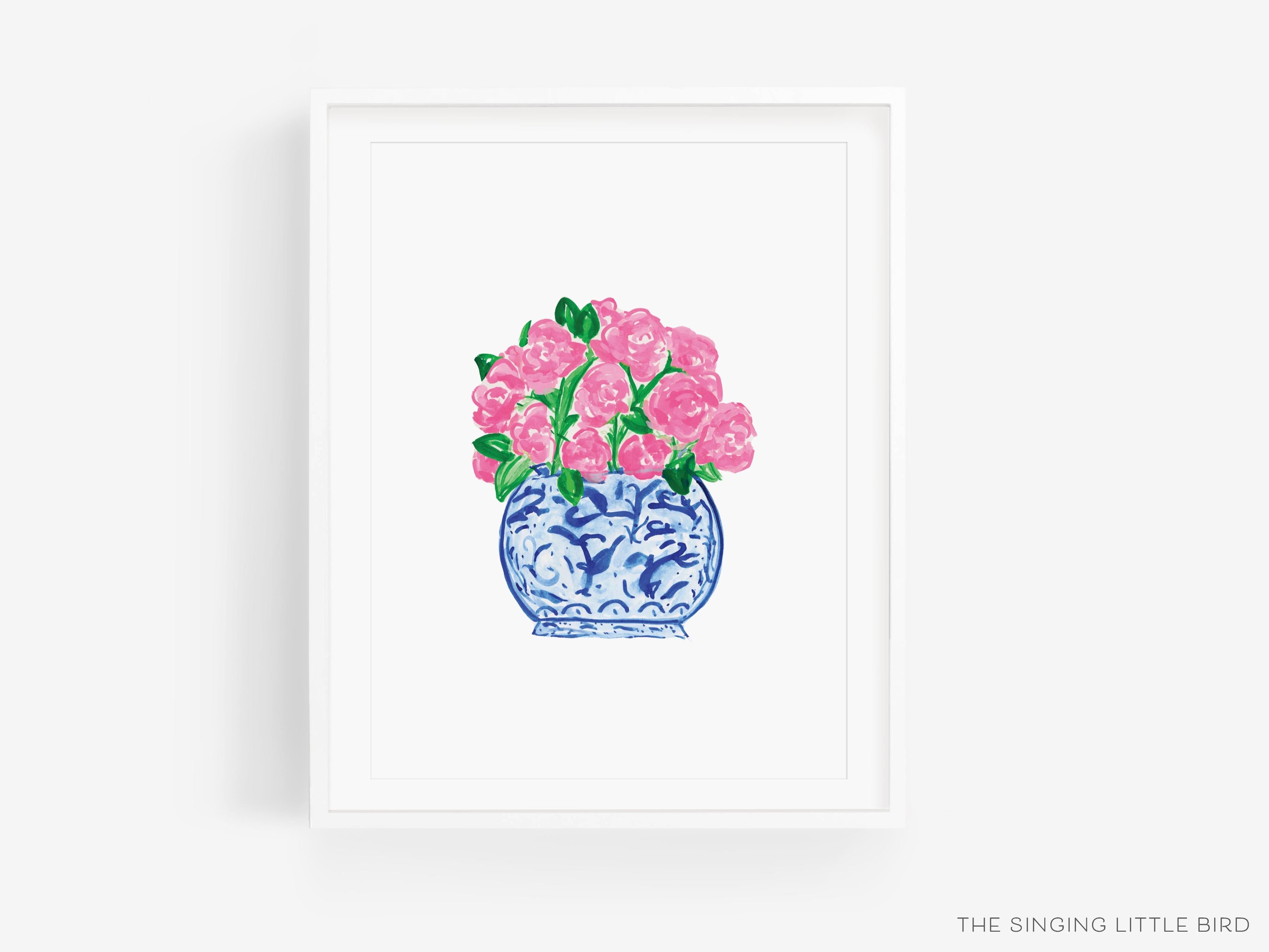 Peony Art Print | Blue Ginger Jar Art Print | Pink Peonies Painting | Chinoiserie Preppy Decor | Watercolor Floral | Feminine Room Wall Art