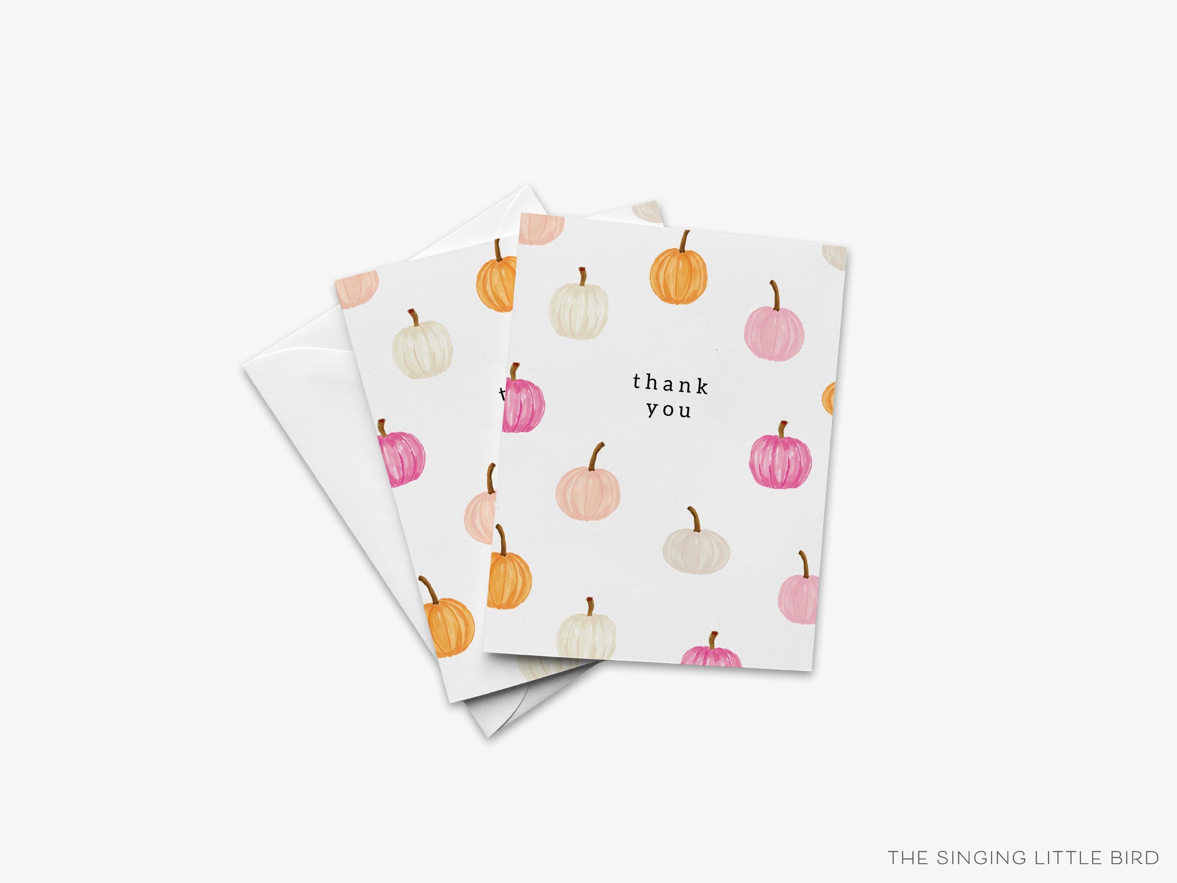 • Folded Pink Pumpkin Thank You Card + White Envelope