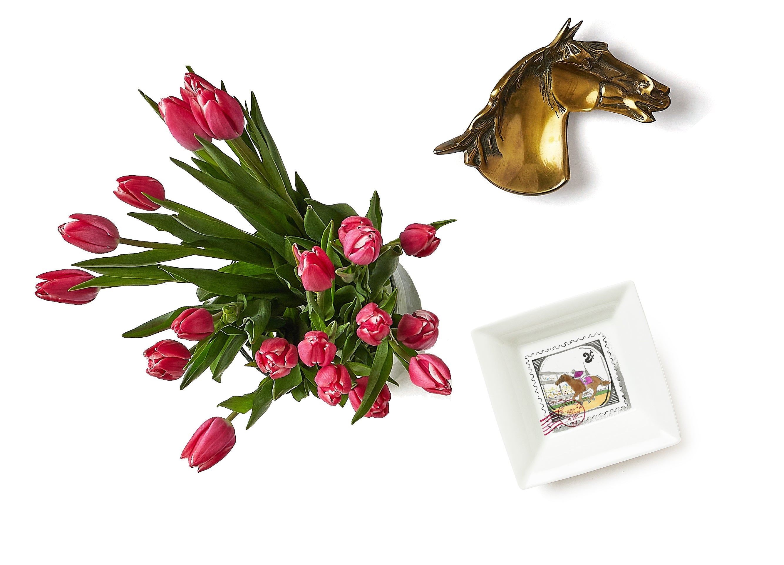 Our Post Position design on a square 4.5" trinket tray. Decorative use only.