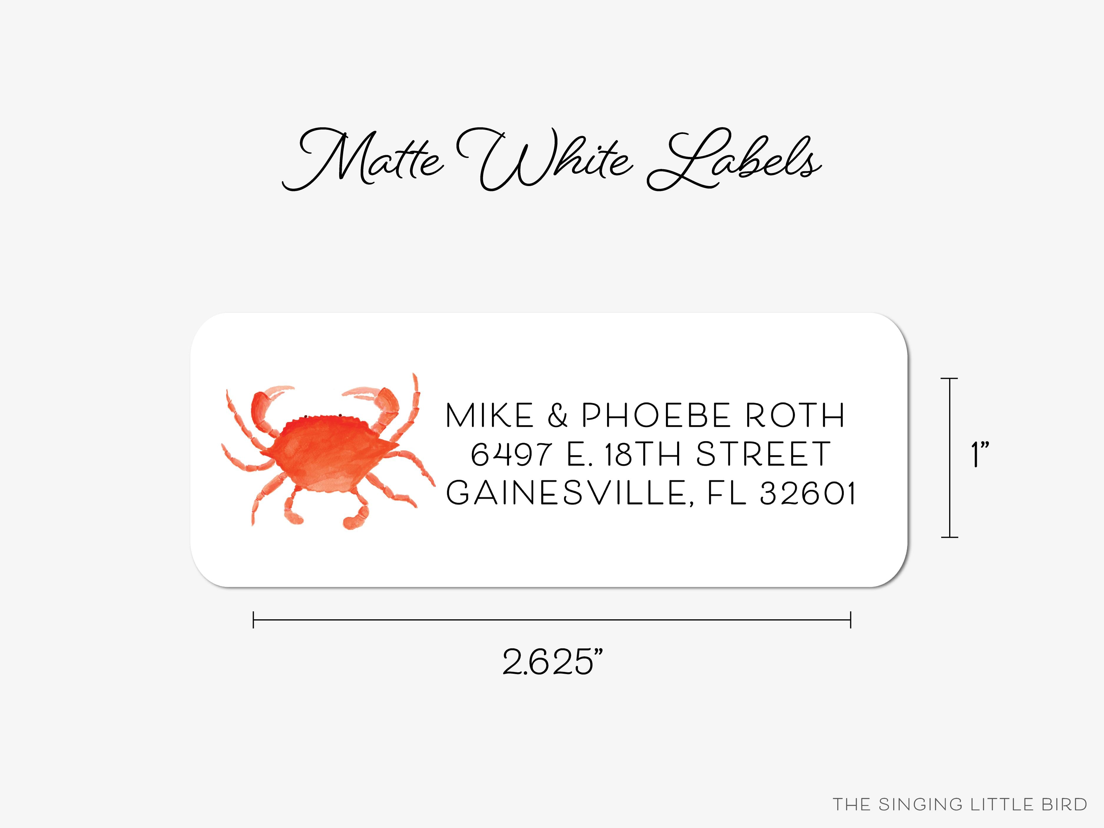 Crab Return Address Labels PRINTED | White Matte Address Envelope Label | Personal Address Label | Red Crab Return Mailing Sticker | Coastal