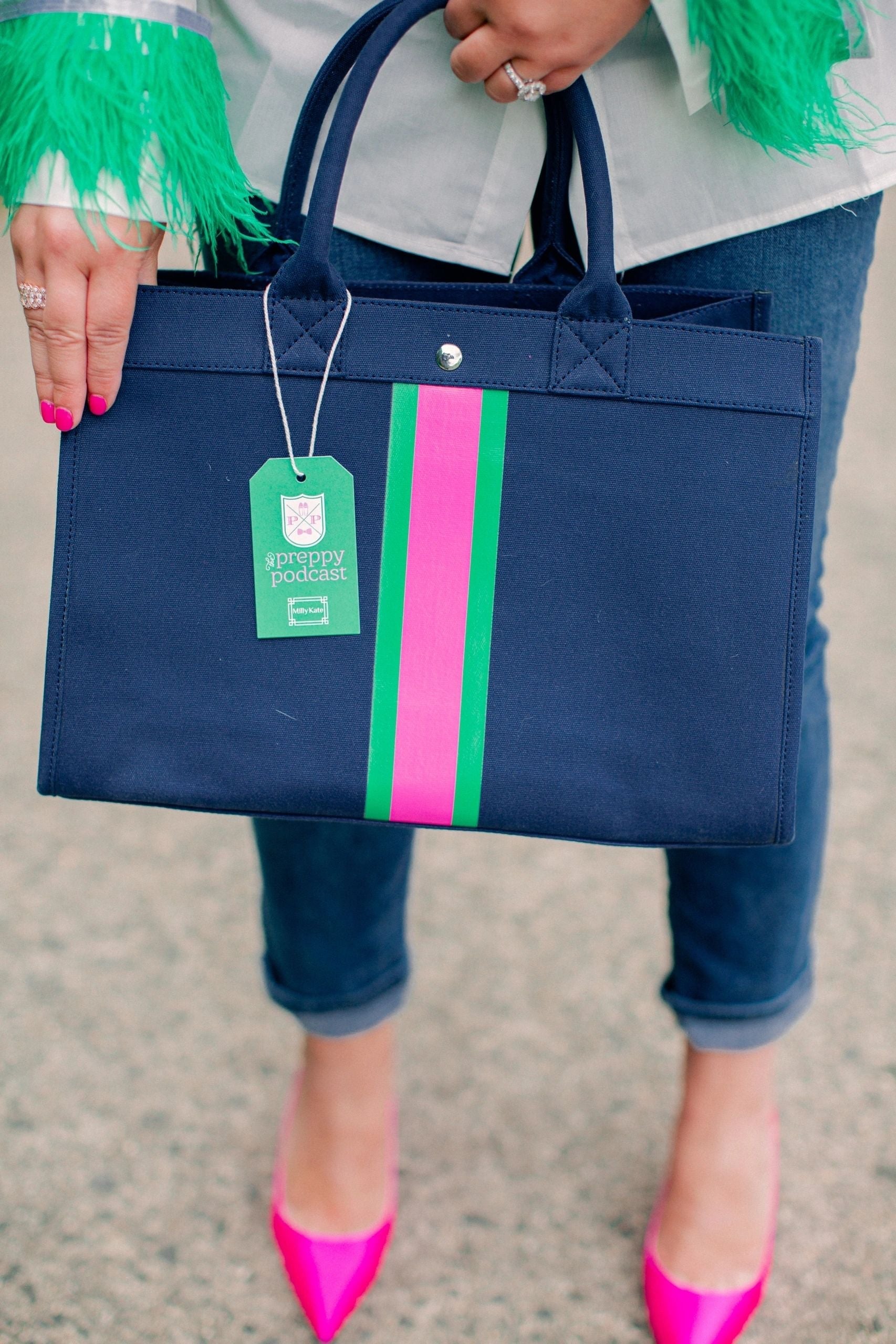 Introducing a special collaboration...The Preppy Podcast x Milly Kate Navy Canvas Tote Bag! A little retro 80s prep with modern, bright colors. We hope this tote is your favorite for work, travel and everyday life!