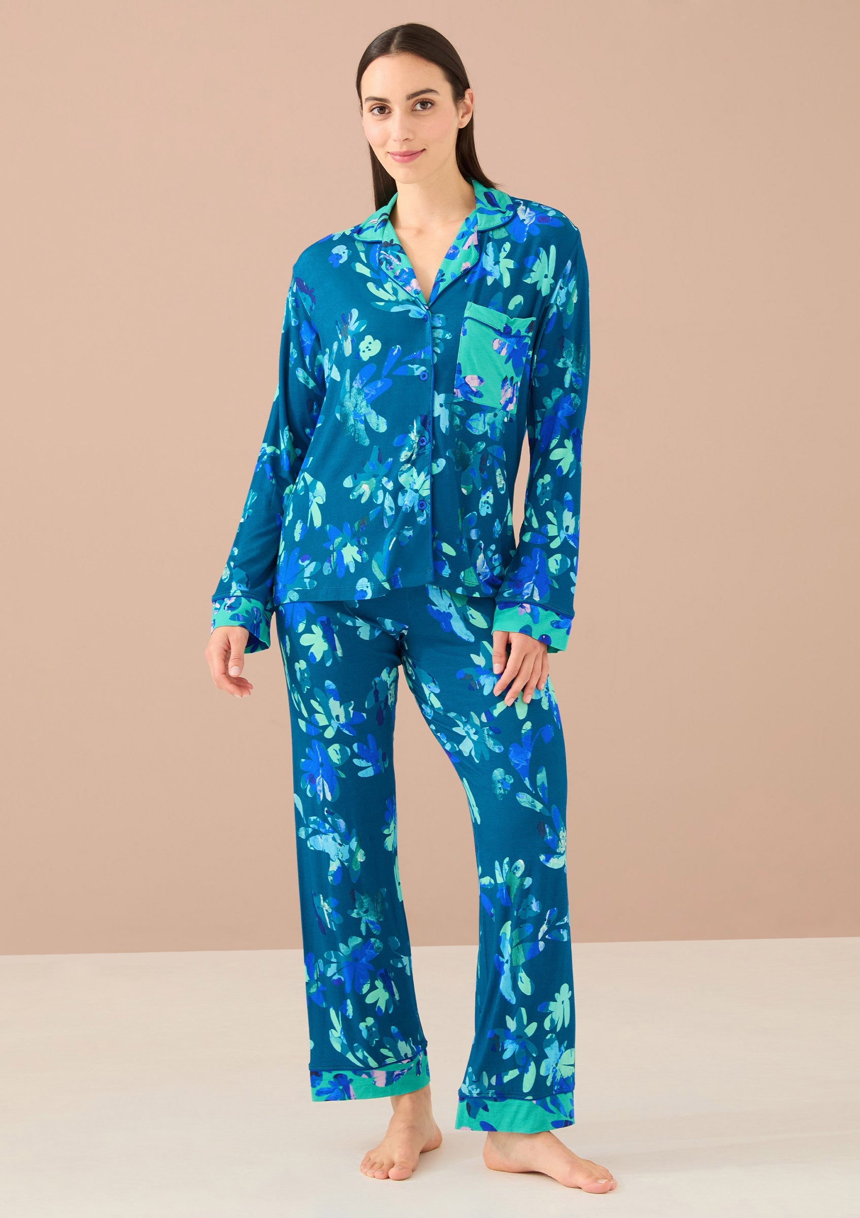 Created from the softest jersey fabric, this pajama set is ultra-soft and naturally cooling. Designed as a relaxed fit for easy movement, and an added stretchy waistband ensures maximum comfort for all sizes. This set features a chest pocket for functionality, and contrast piping details inspired by classic men’s pajamas.