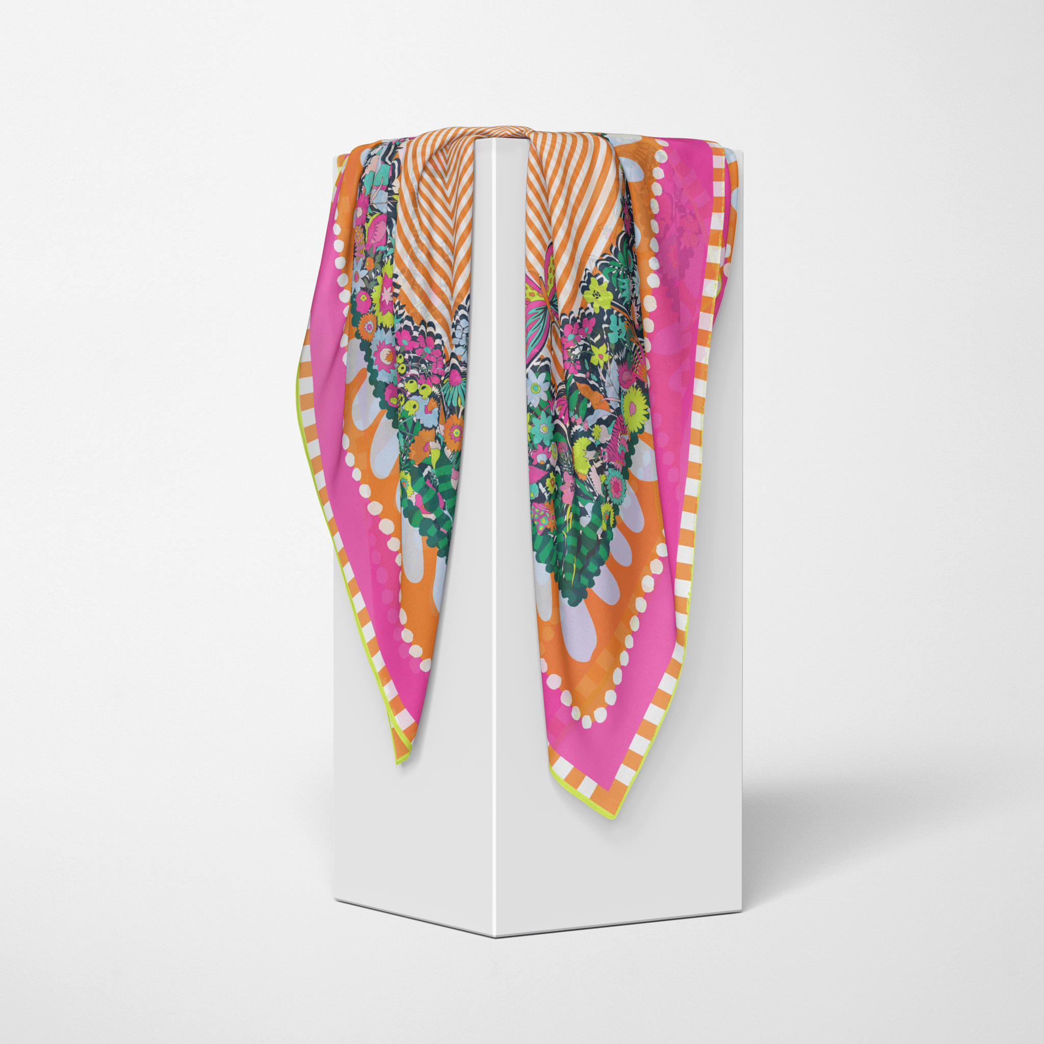 Put some pizzazz in your outfit with The Taylor Silk Scarf! Crafted with luxurious silk twill, this fun, whimsical design showcases hidden elements like dinosaurs, a tiger chillin' in shades, and a garden sign that read "I am not for everyone", all in bright, vibrant colors. Enter a new world of style with this unique accessory!