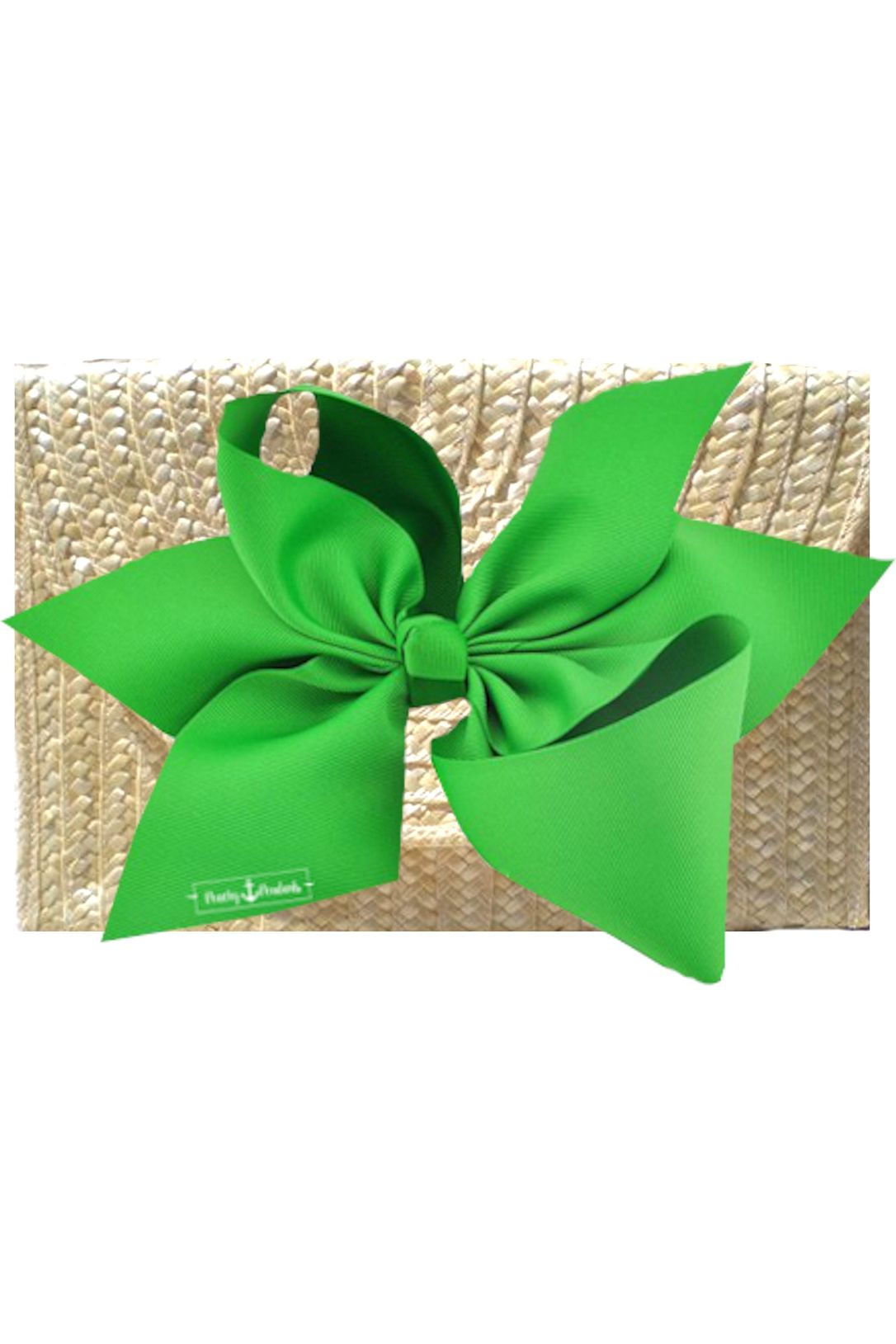 The Vineyard Straw Clutch with Green Bow - Interchangeable
