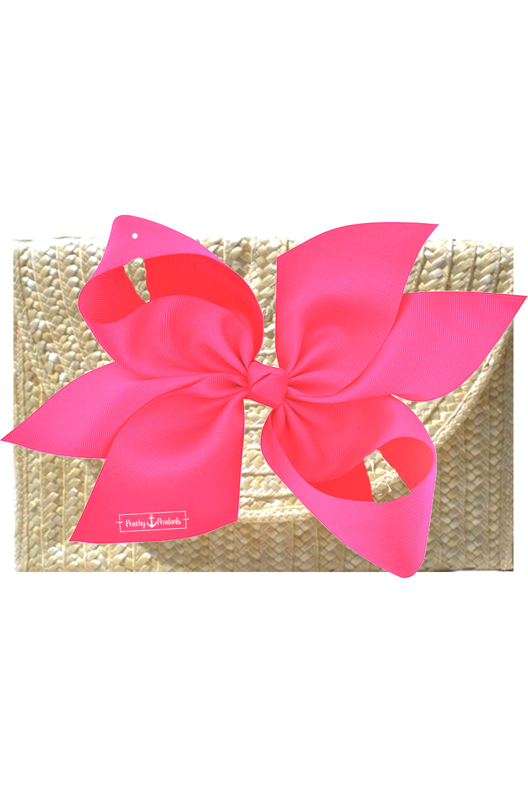 THE VINEYARD STRAW CLUTCH WITH HOT PINK BOW - INTERCHANGEABLE