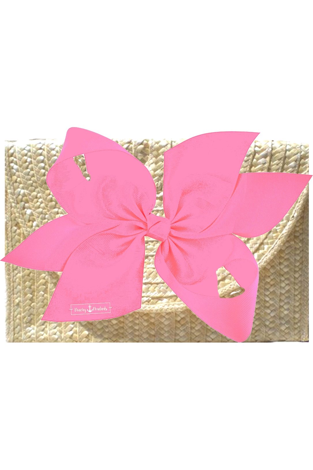 The Vineyard Straw Clutch with Pink Bow - Interchangeable