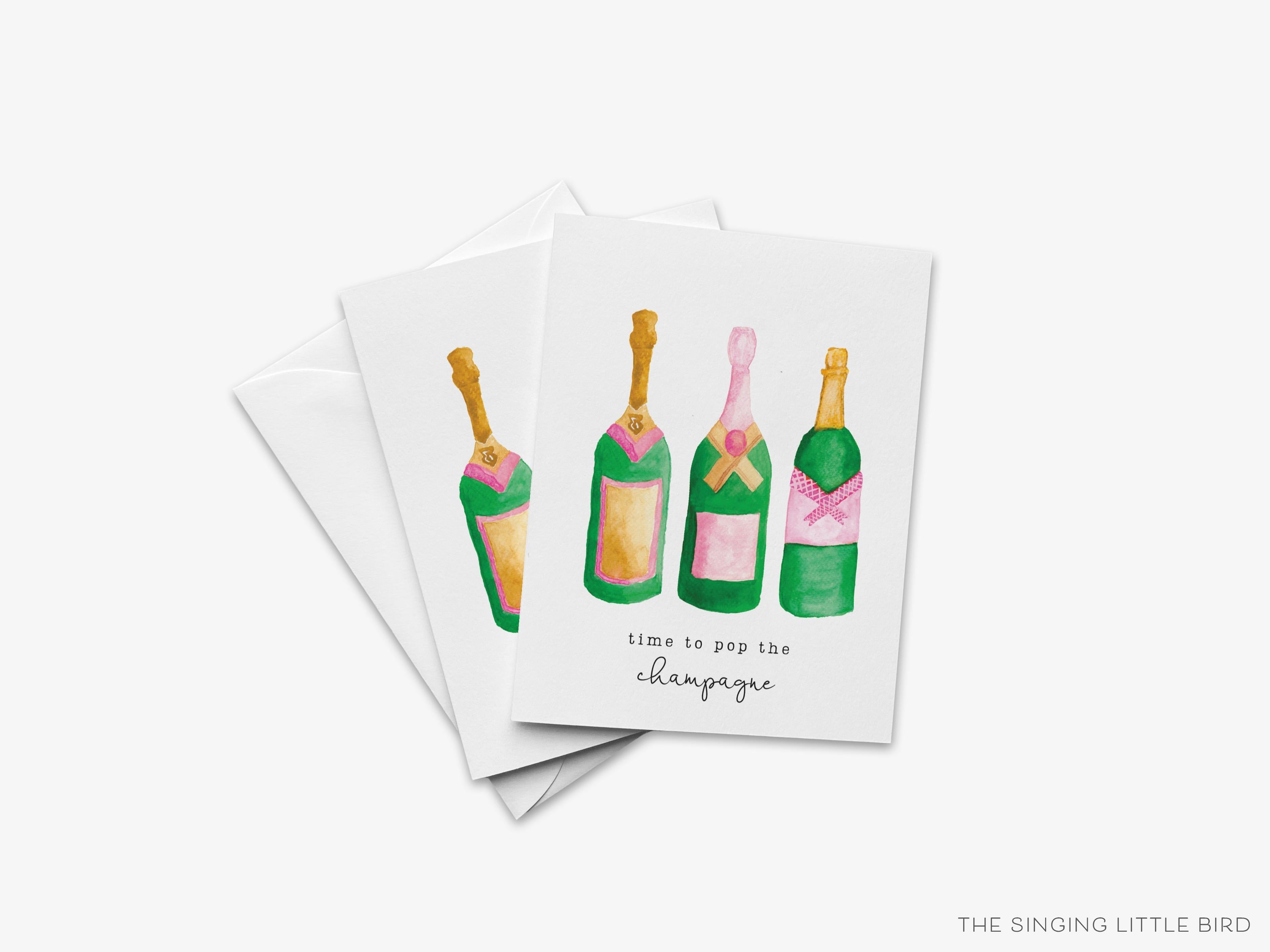 • Folded Time to Pop the Champagne Cocktail Greeting Card + White Envelope