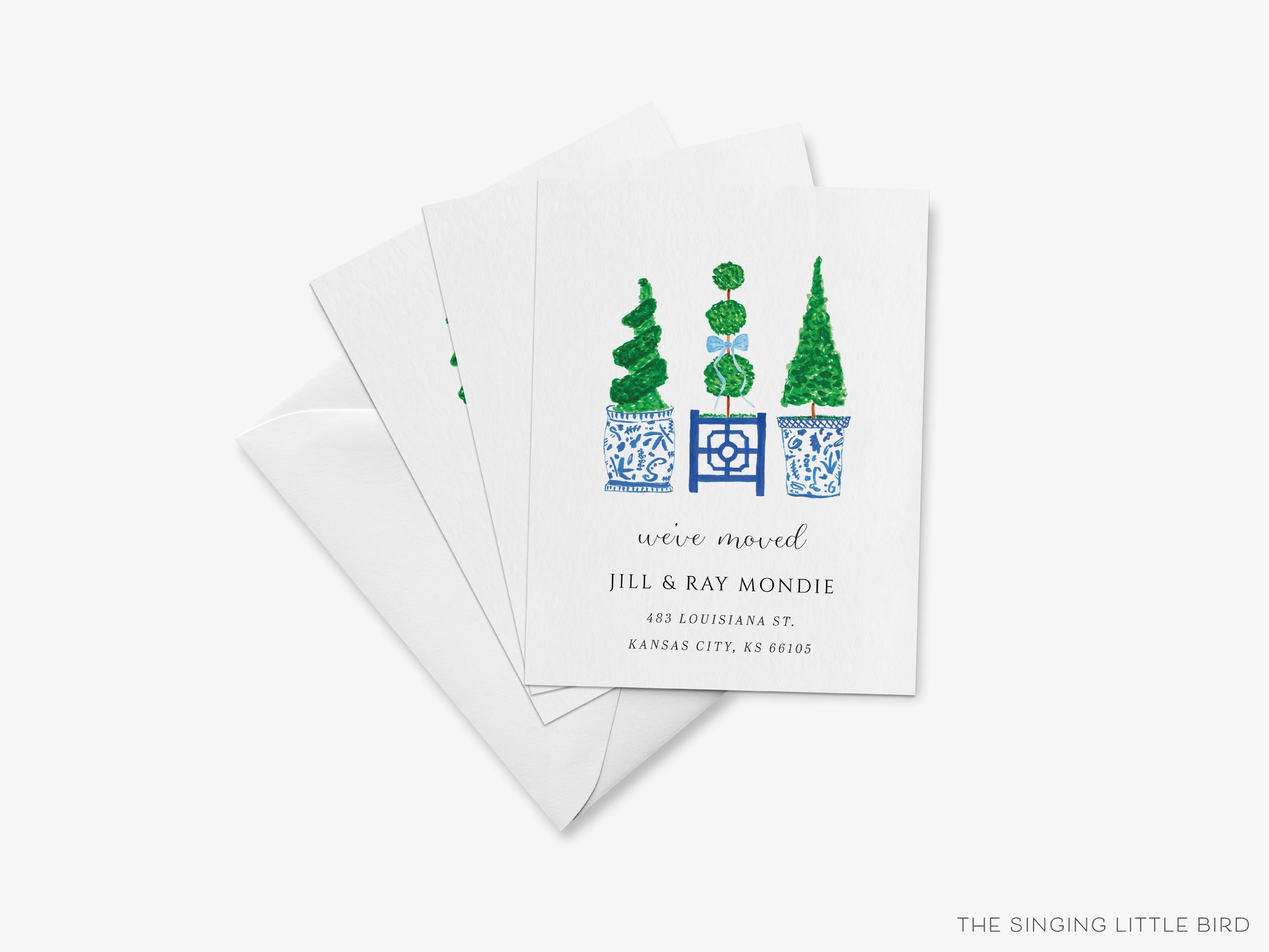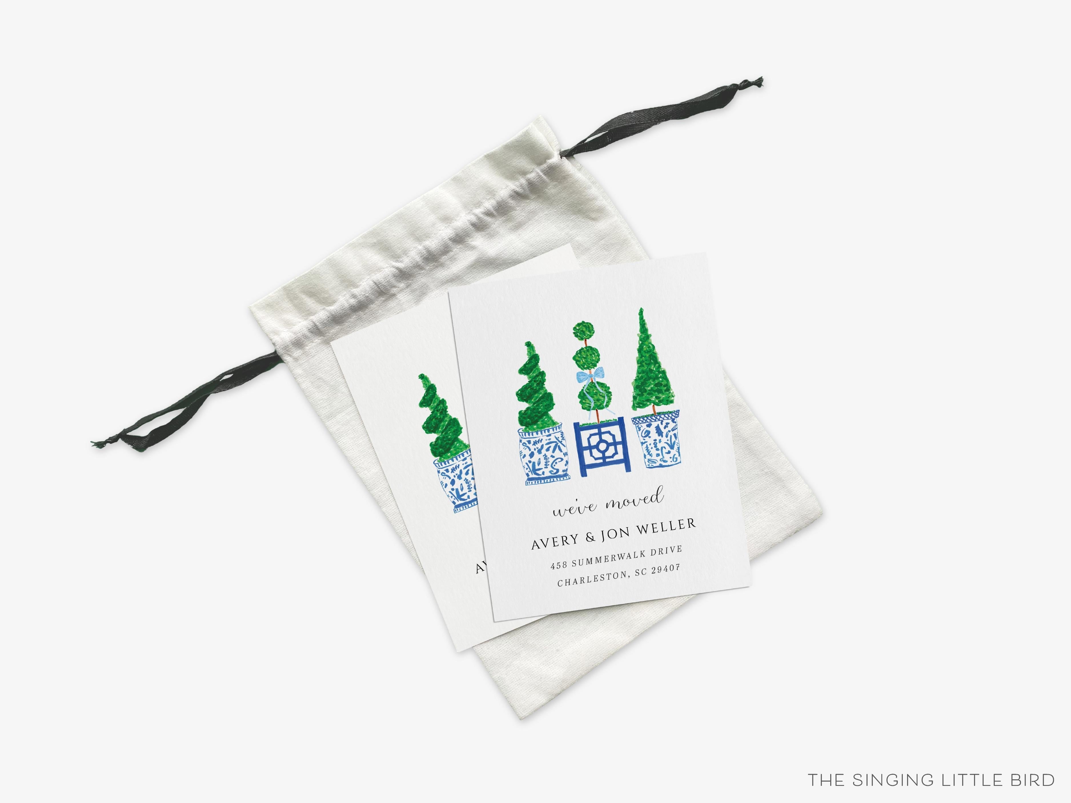Topiary Moving Announcement Card | Change of Address Card | We've Moved Cards | New Home | Personalized House | Blue and White Chinoiserie