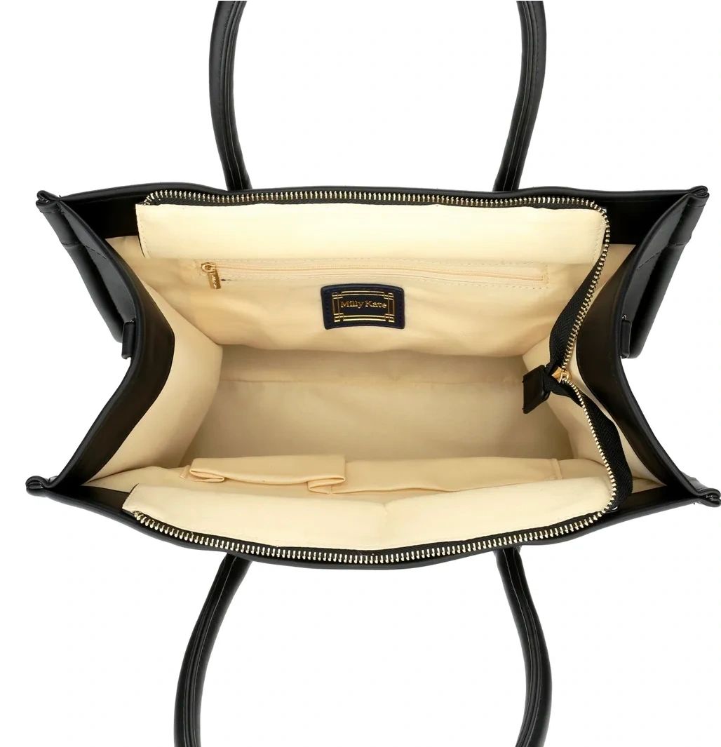The Milly Kate Tote Bag is a classic and classy option for carrying everything you need. At 11” x 14” x 7” with inside pockets and a zip-top closure it is great for everyday use, work and traveling. The bag is made with vegan leather and has gold hardware. The Tote Bag has comfortable handles and comes with a detachable strap for the times you need to be hands-free.