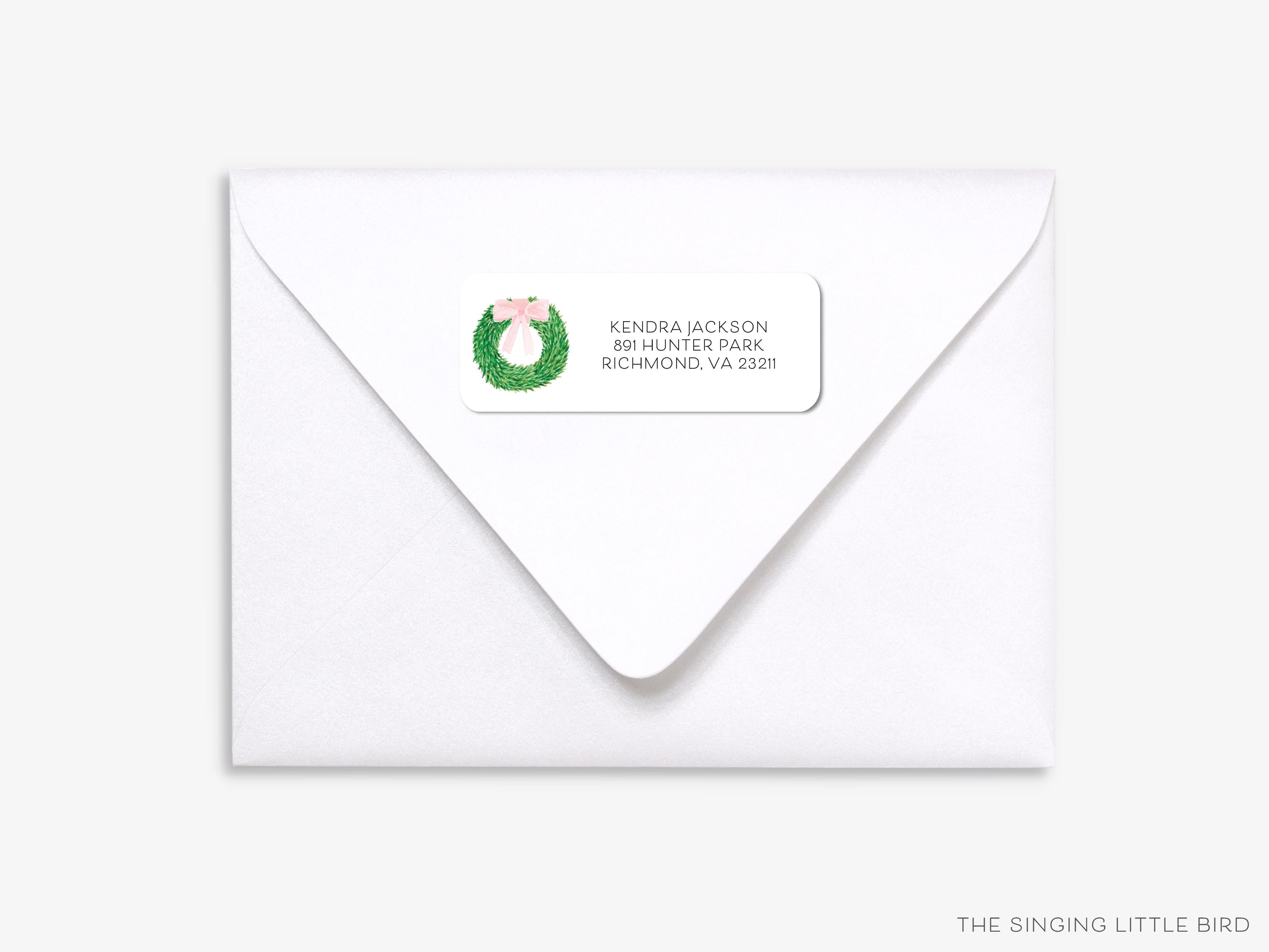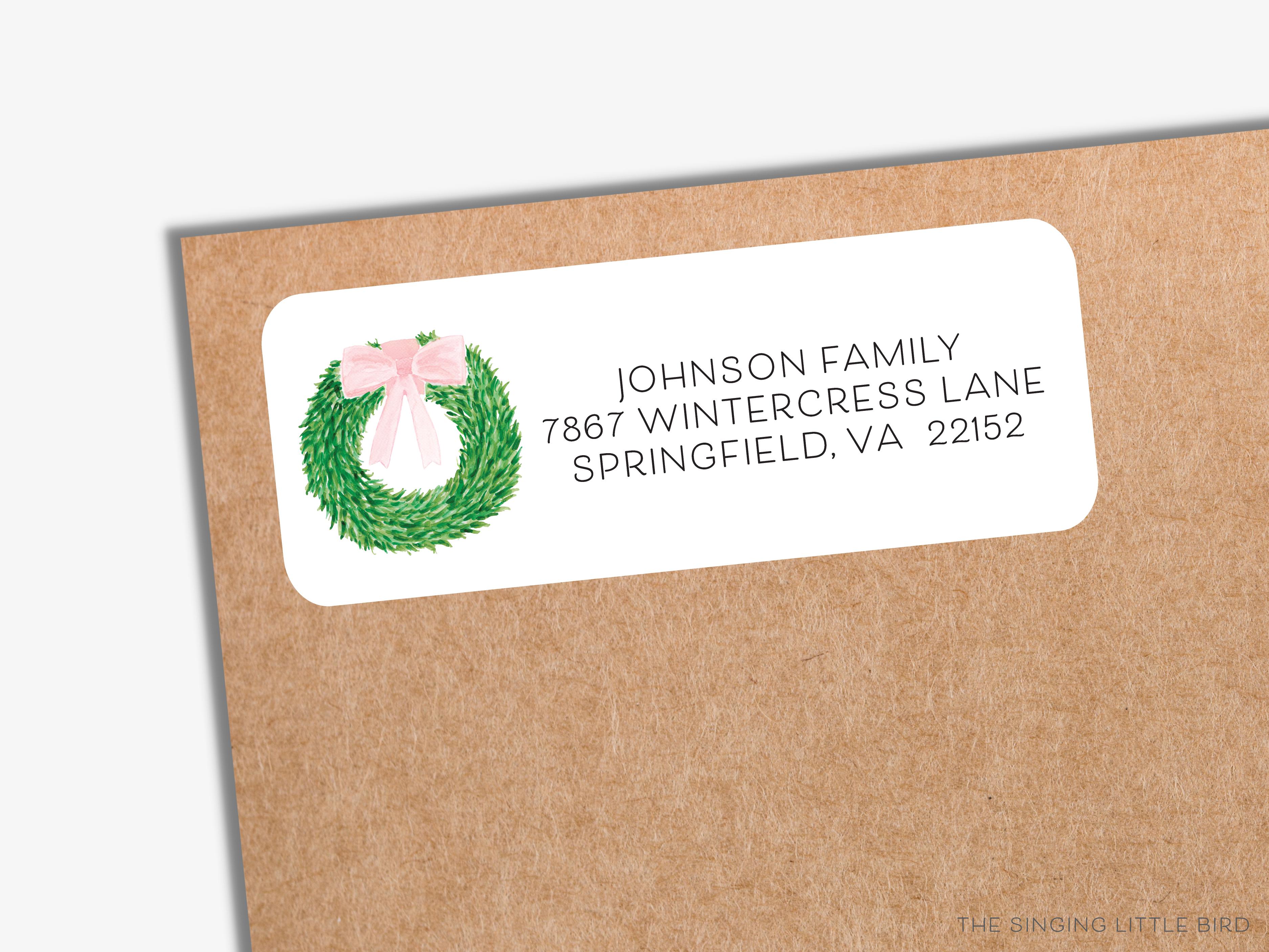 Wreath with Pink Bow Return Address Labels PRINTED | White Matte Address Envelope Label | Personal Address Label | Return Mailing Sticker