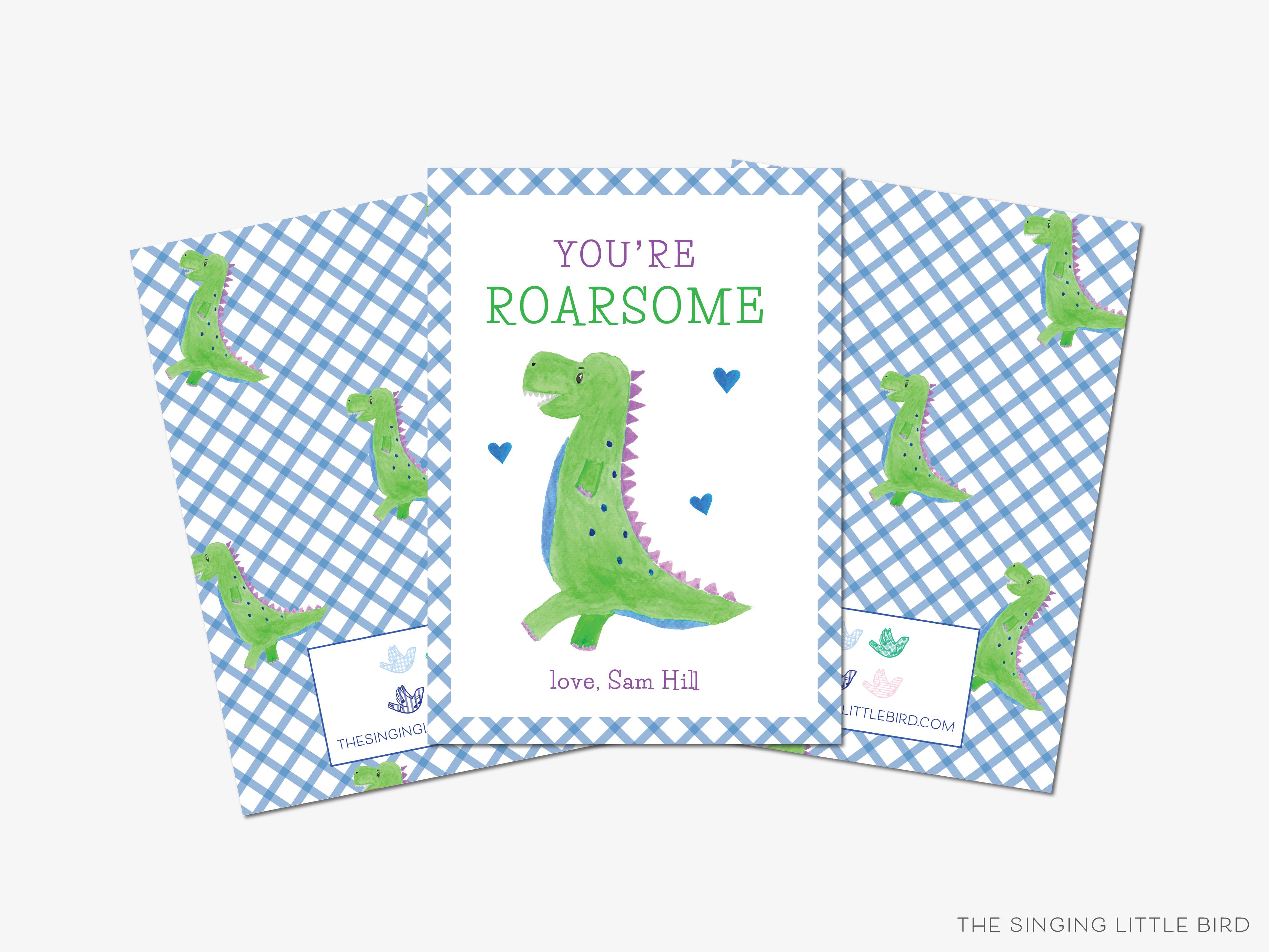 • Sets of You're Roarsome Dinosaur Valentine's Day flat cards + white envelopes