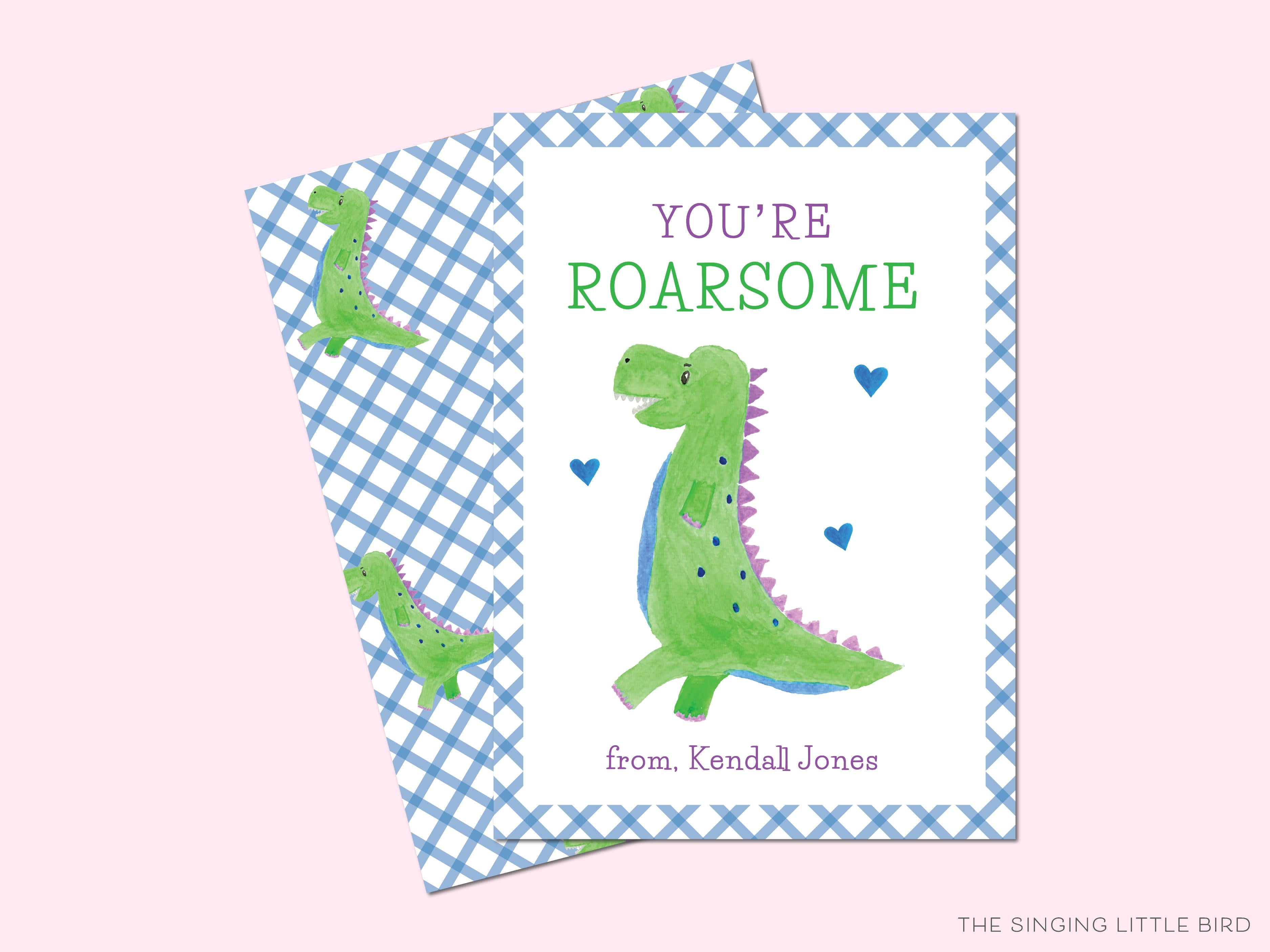 Personalized Kids Valentine Cards for School | Dinosaur Valentine's Day Cards | Classroom Valentines | Class Valentines | Roar-Some Pun Boys