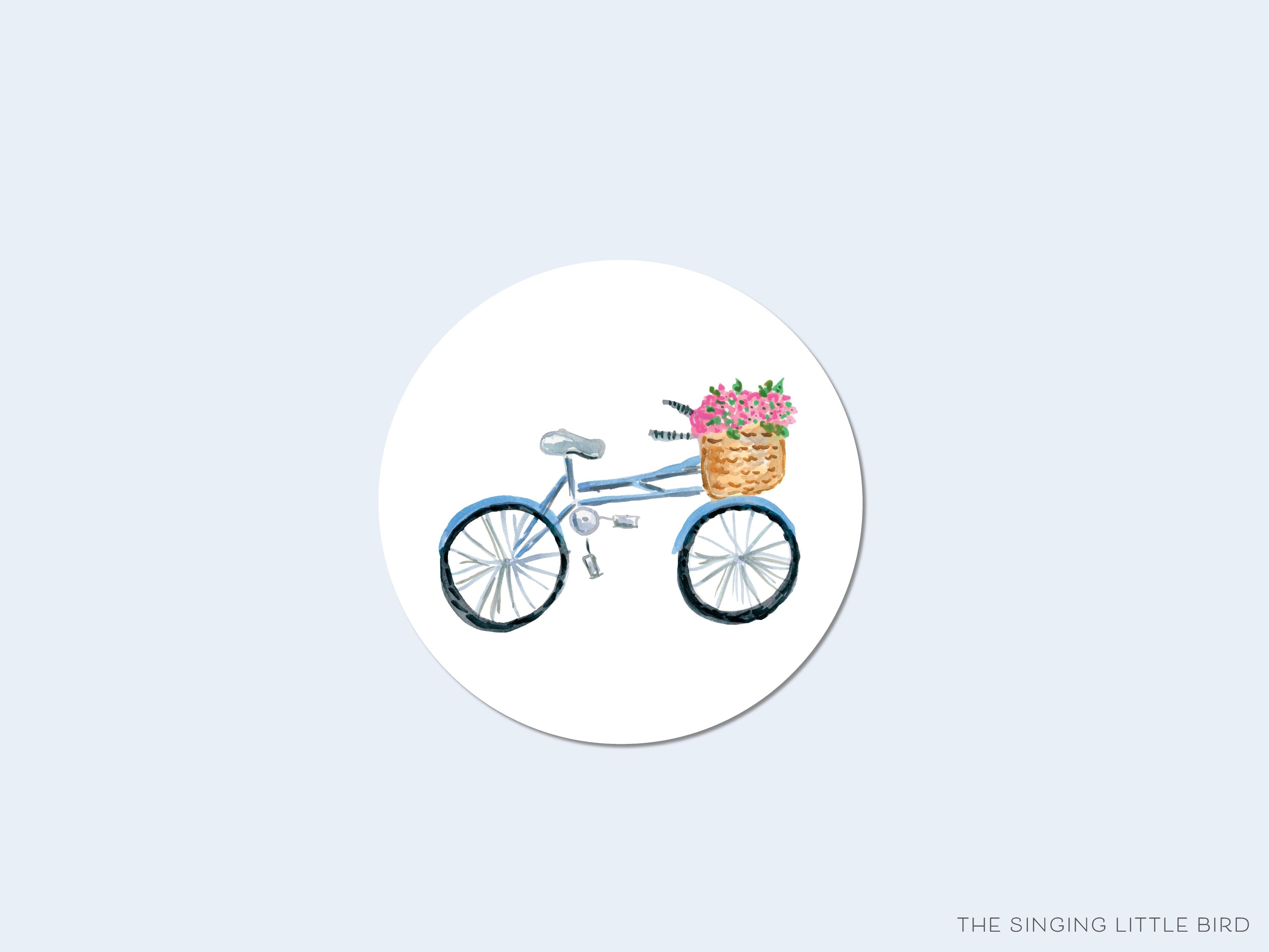 Bicycle with Flower Basket Round Stickers
