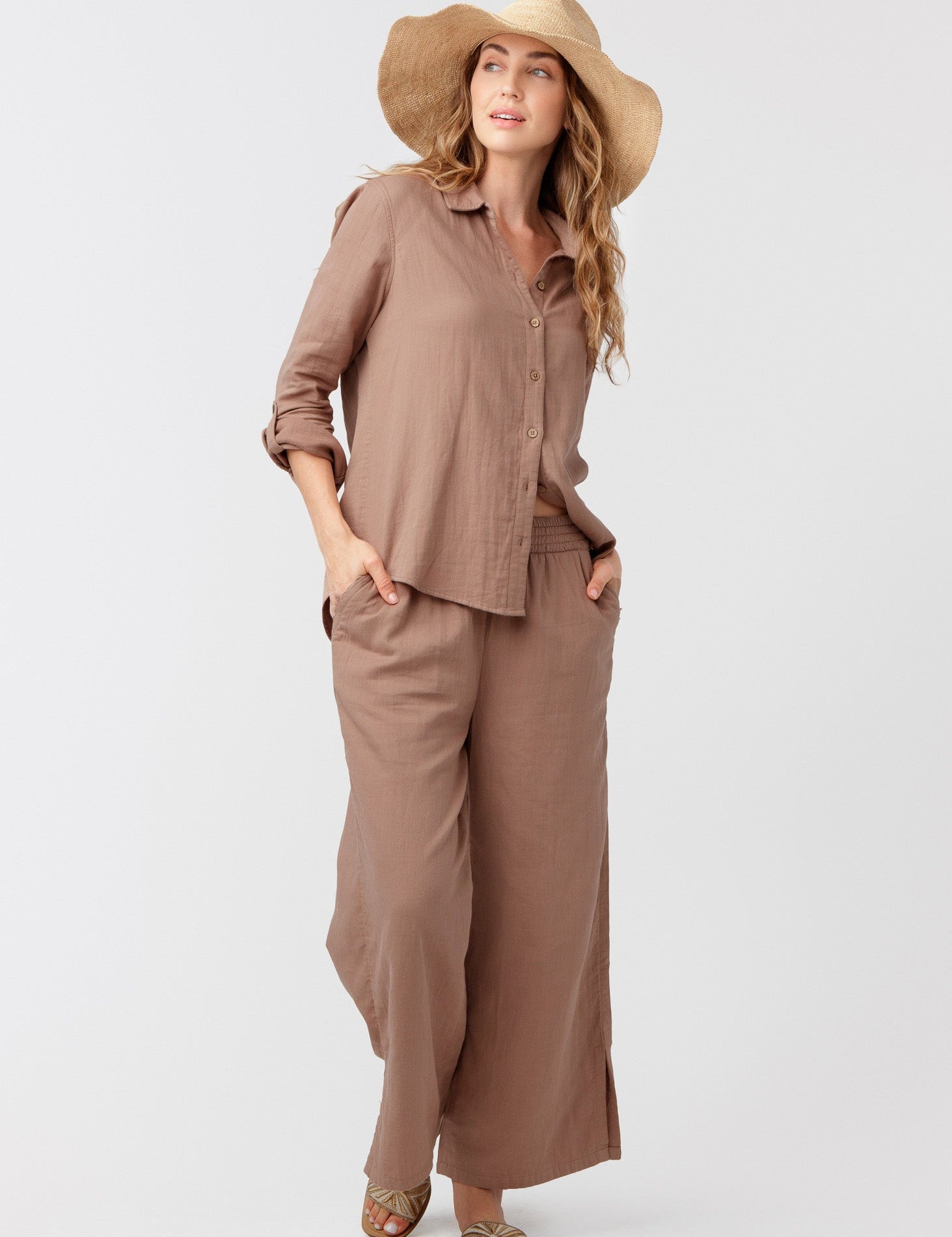Sand Hi/Lo Bamboo Long Sleeve Top