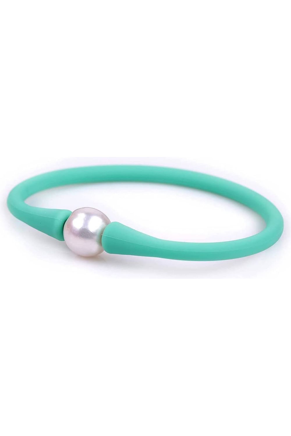 Silicone Beach Bracelet with Freshwater Pearl - Mint