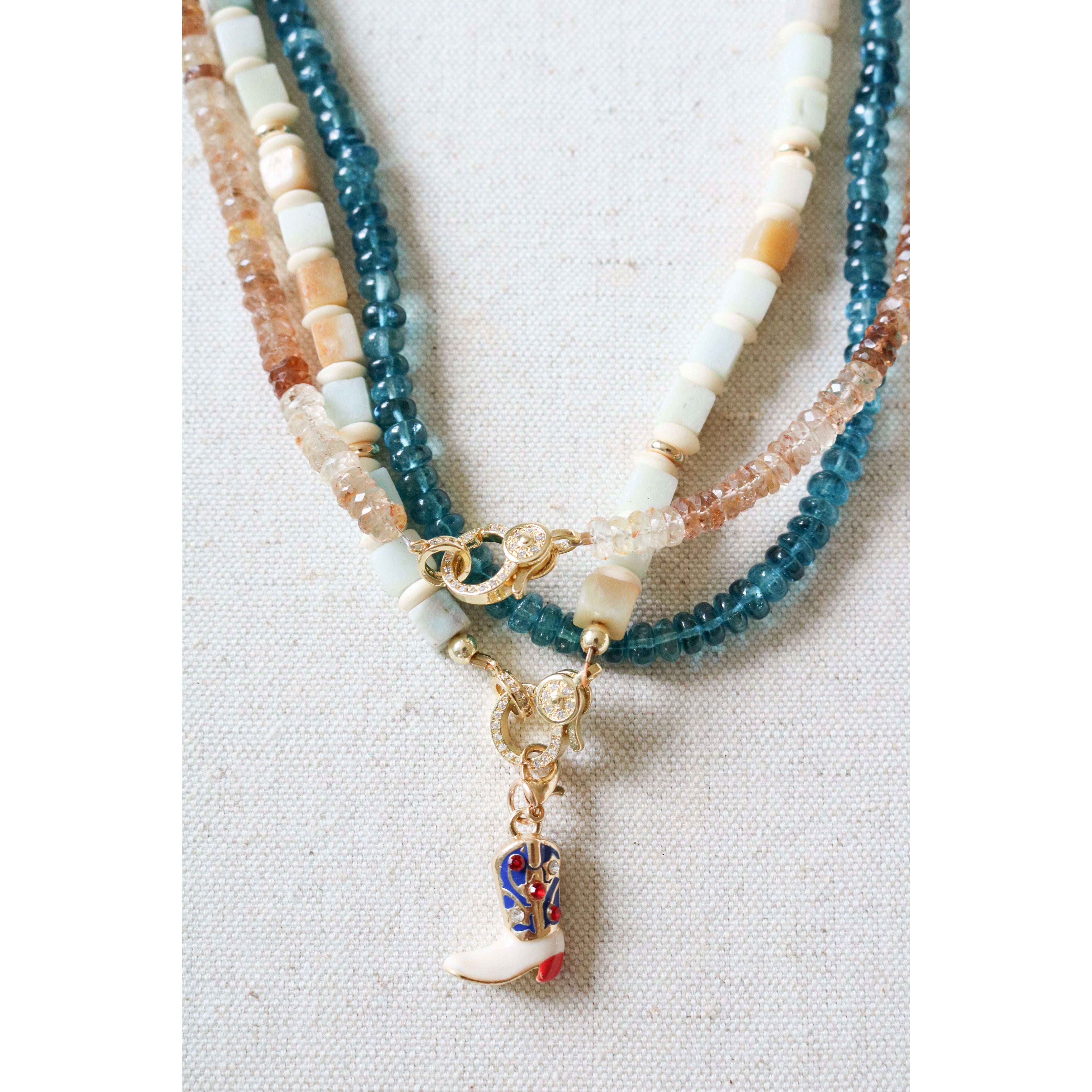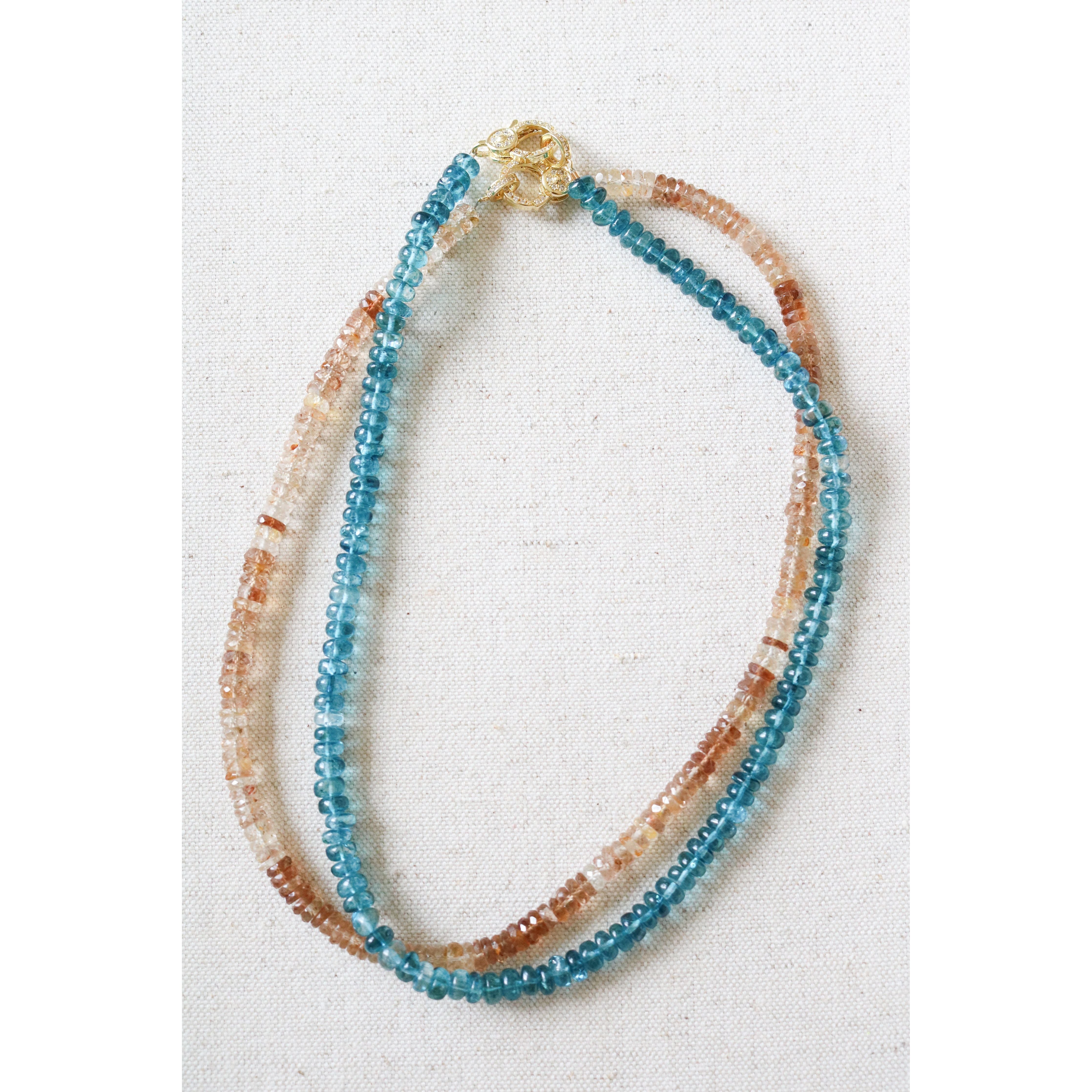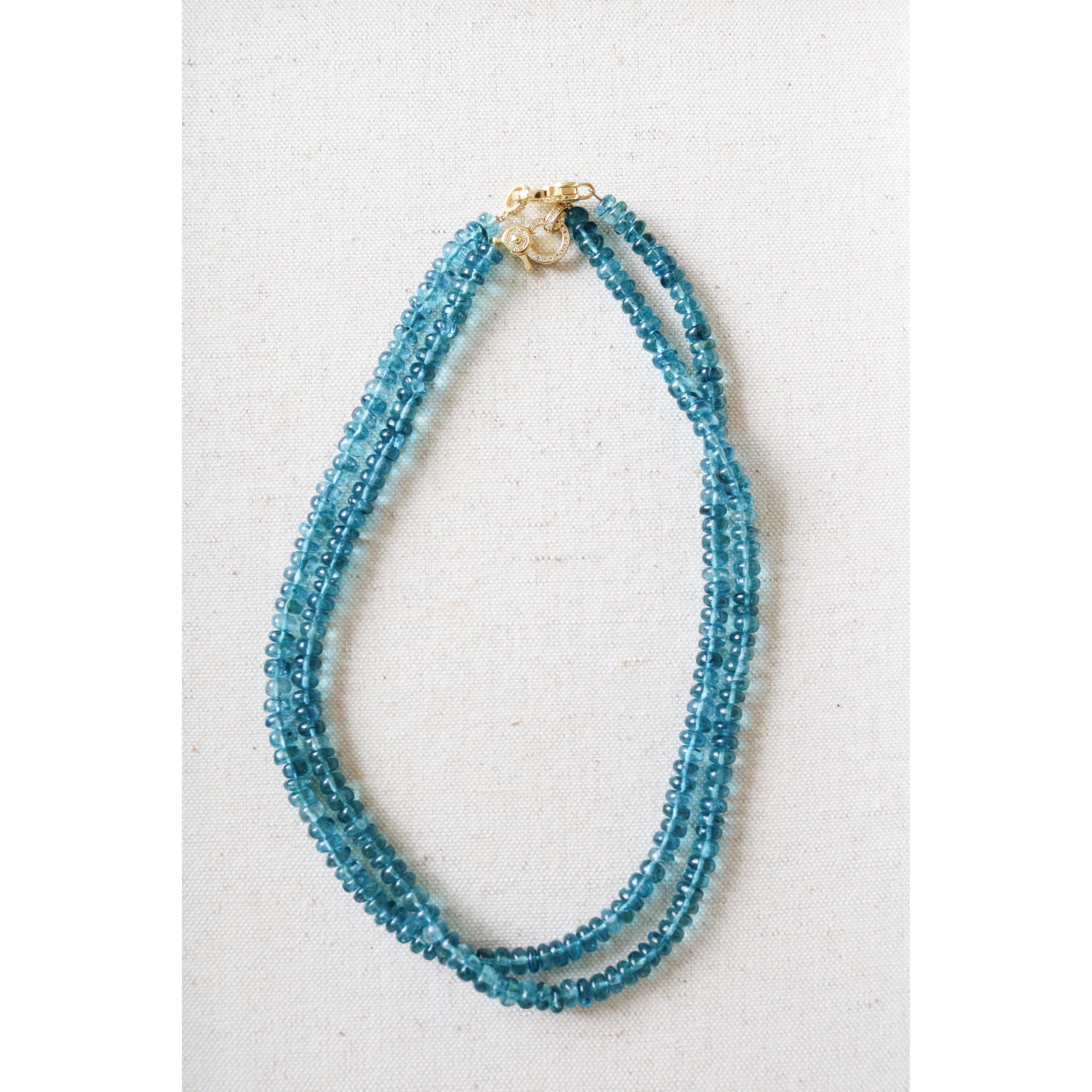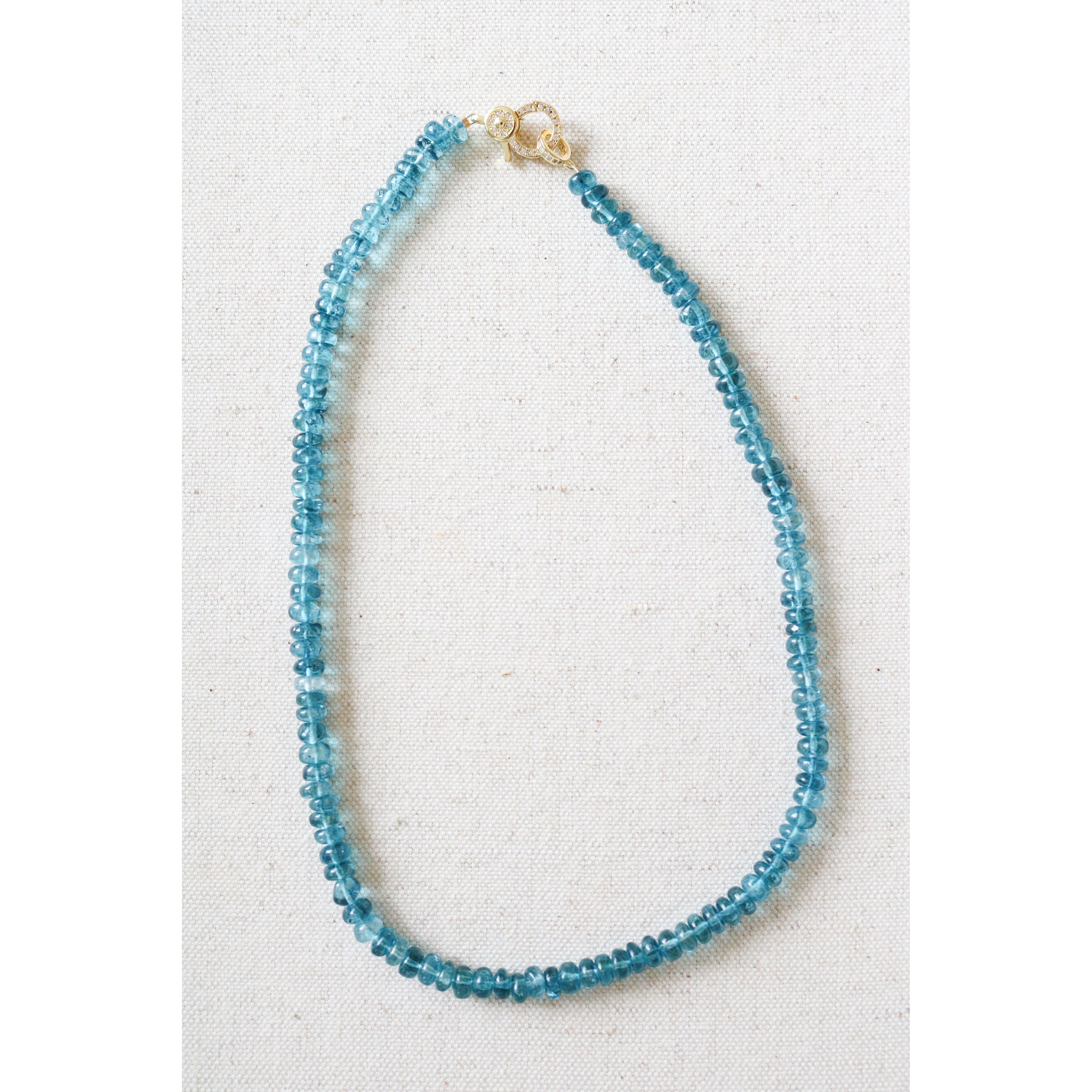 This beautiful, smooth, transparent apatite gemstone necklace features a lovely deep blue coloring that is stunning for this season and gifting. The single-layer strand makes it the perfect layering piece.