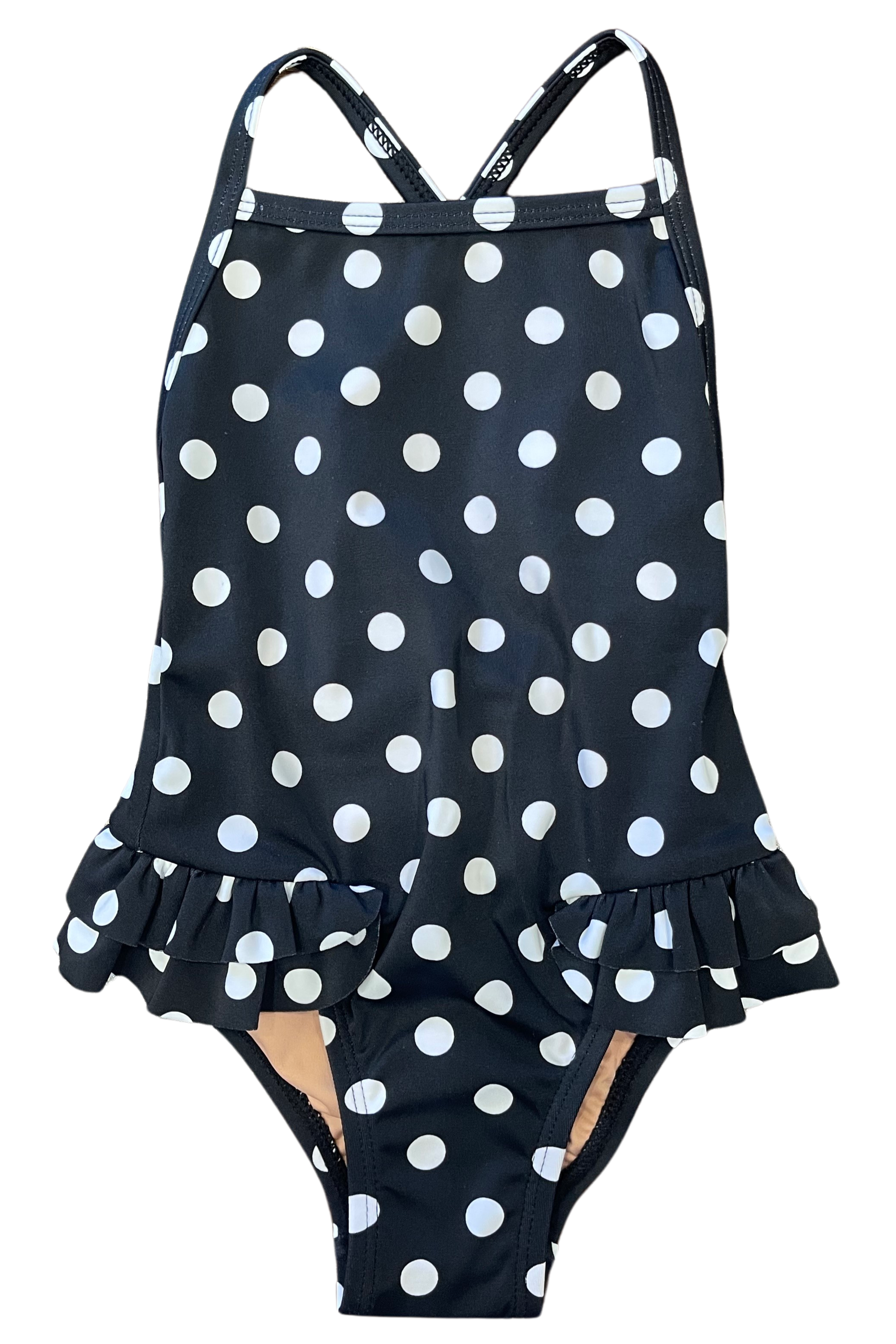 Little Clementine Criss-Cross Back Ruffle One-Piece Swimsuit in Polka