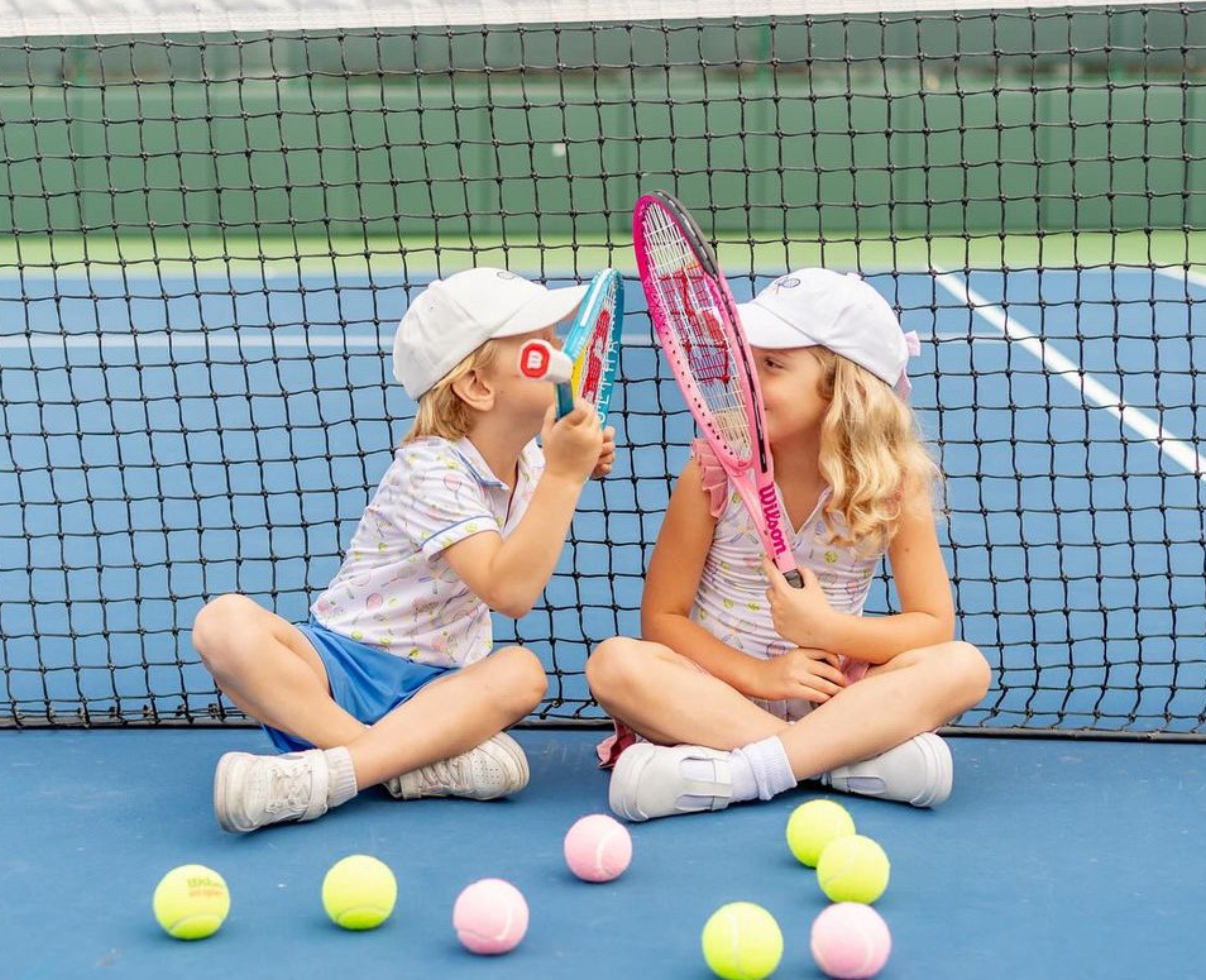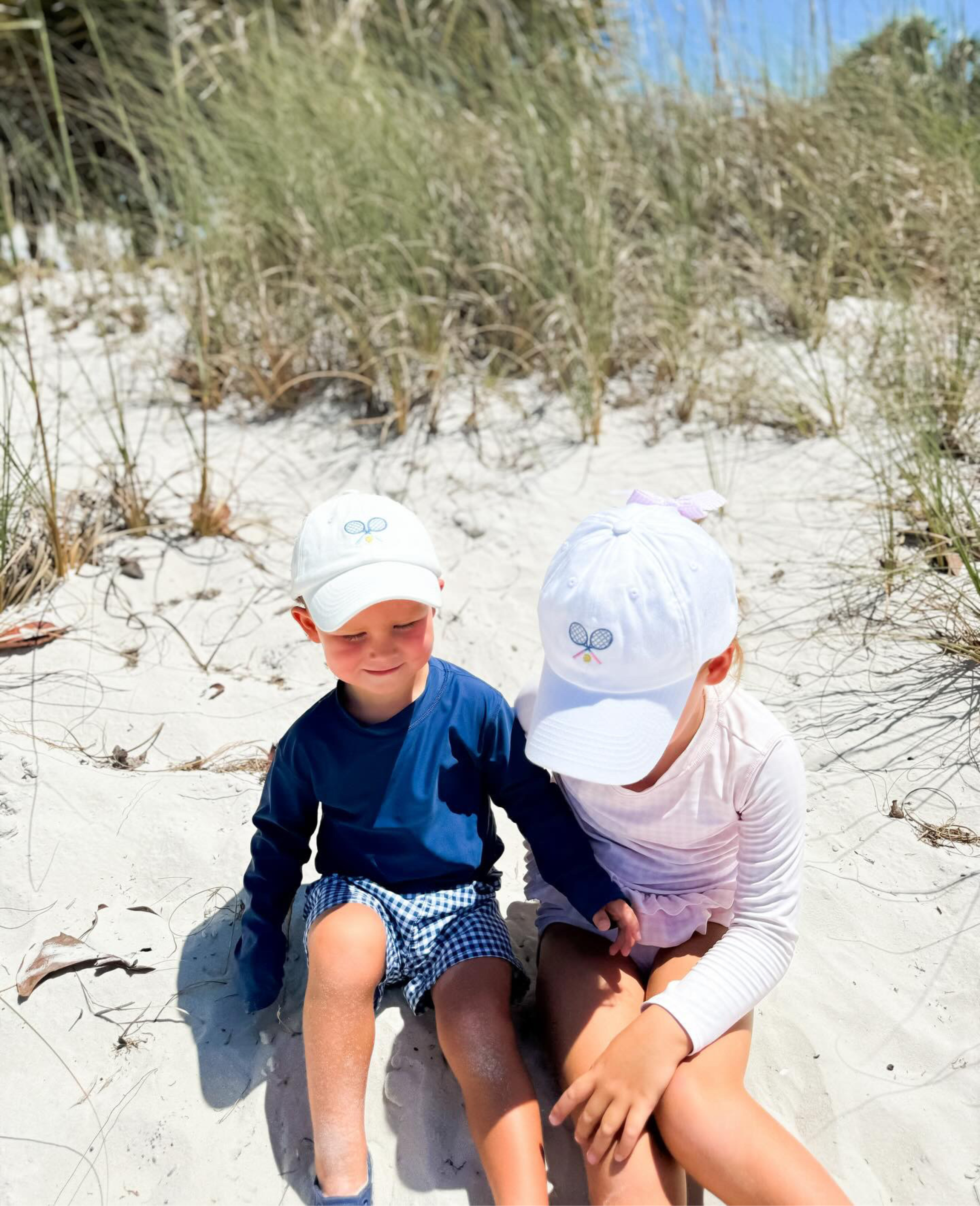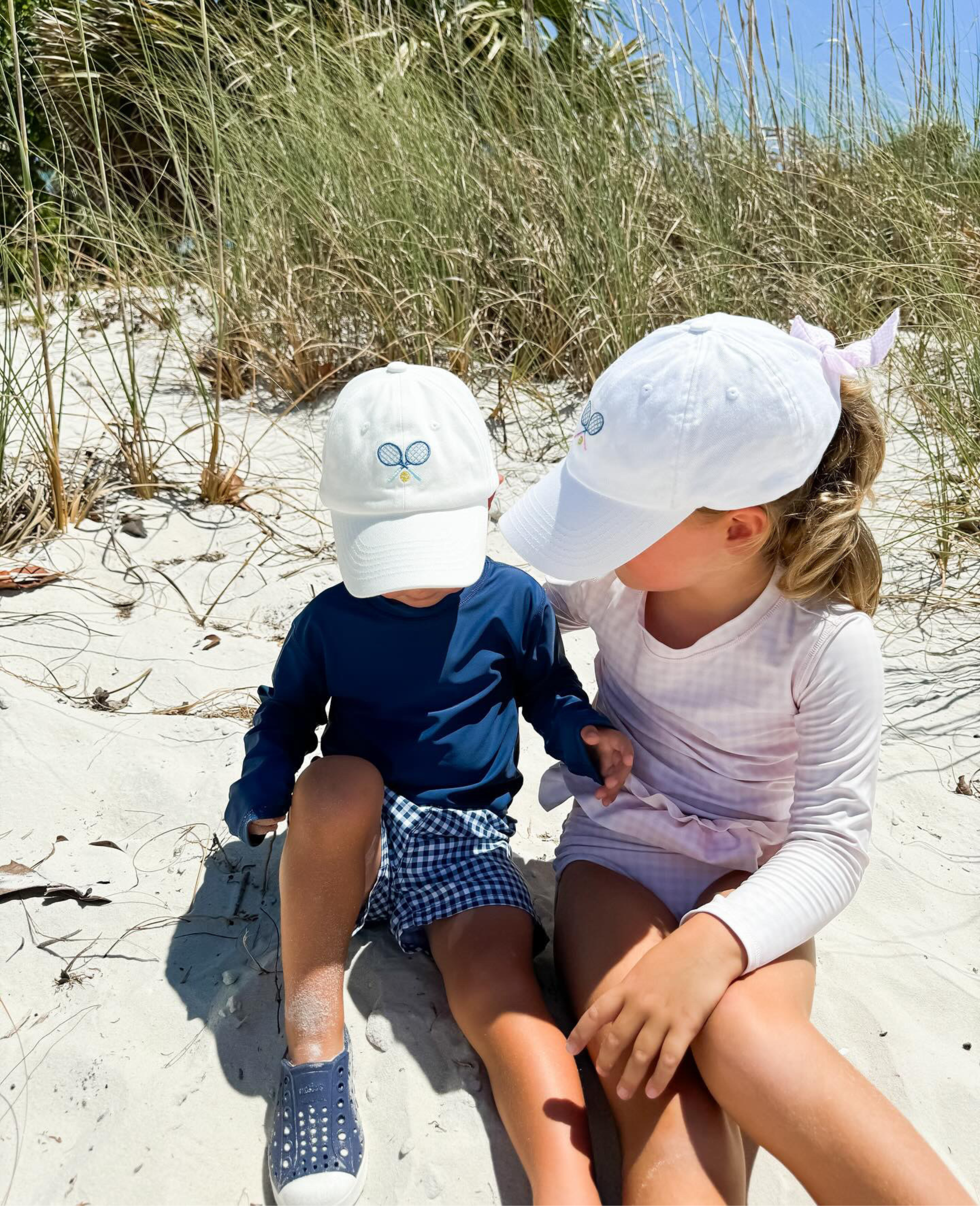 Serve up winning style, and top off those tennis whites with the sweetest choice in sun protection: the Bow Baseball Hat. Crisp, Winnie White soft cotton twill is embroidered with a pair of tennis racquets and tennis ball and is adorned with a pink-and-white seersucker bow in back. The perfect athleisure accessory to take her from the court to the green — and everywhere in between.