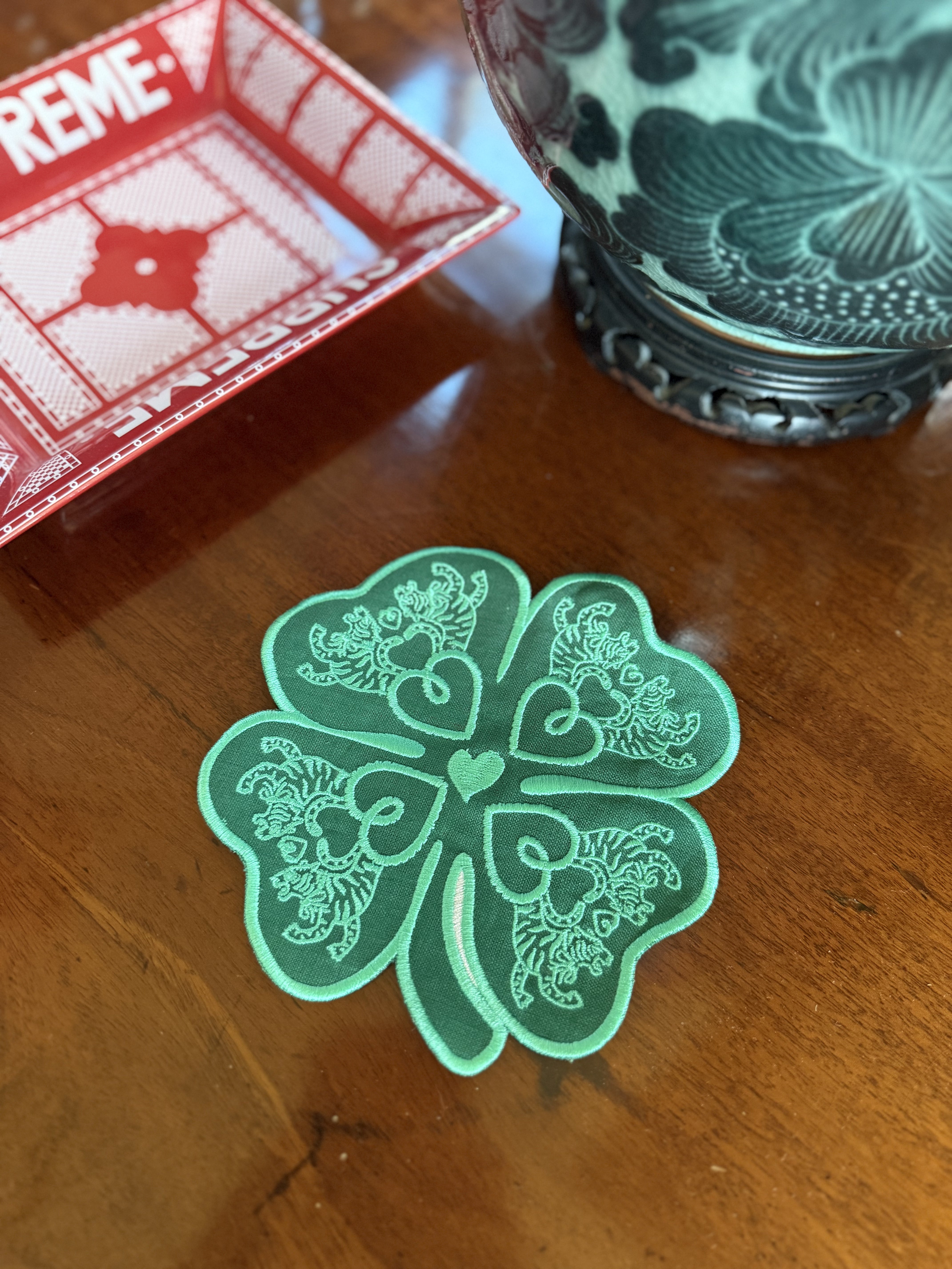 Our Tiger Clover Embroidered Linen Cocktail Napkins add that POP to your tablescape you’ve been looking for! How cute to add these little guys to a tray of goodies, a tea table scape or your card game night? A huge shout out to House of Gleason, who so wonderfully helped us bring these beauties to market. They are that same HOG quality you know, made for Tigre!