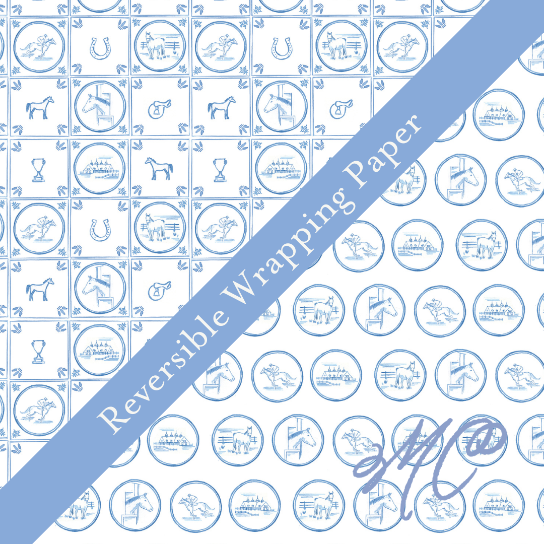 Derby Delft double-sided custom printed wrapping paper sheets, perfect for sprucing up gifts for the holidays, birthdays, or "just because."