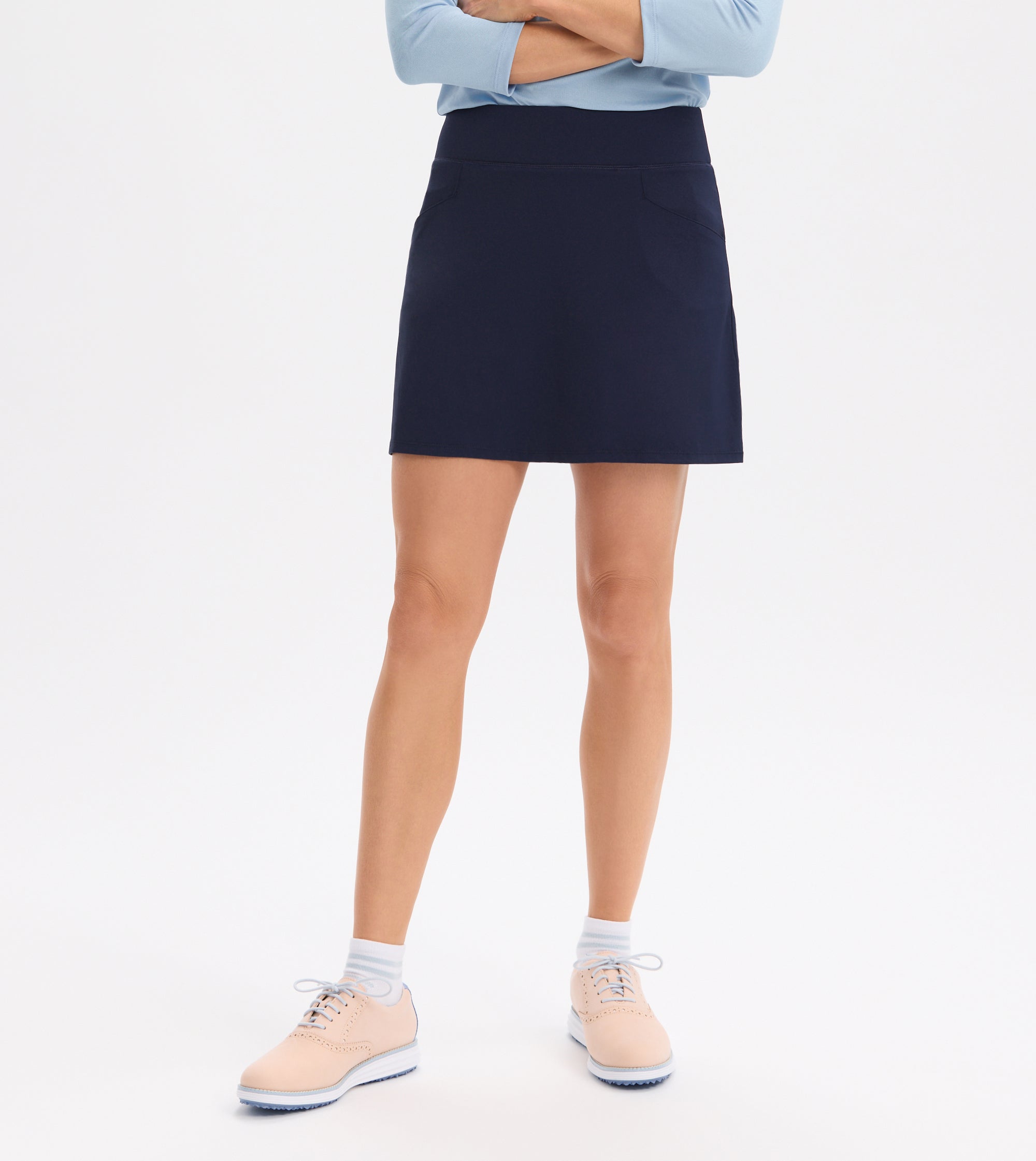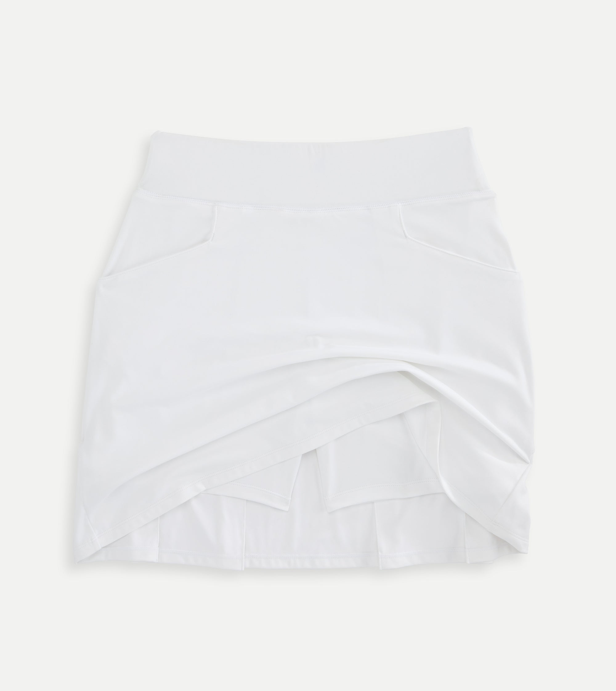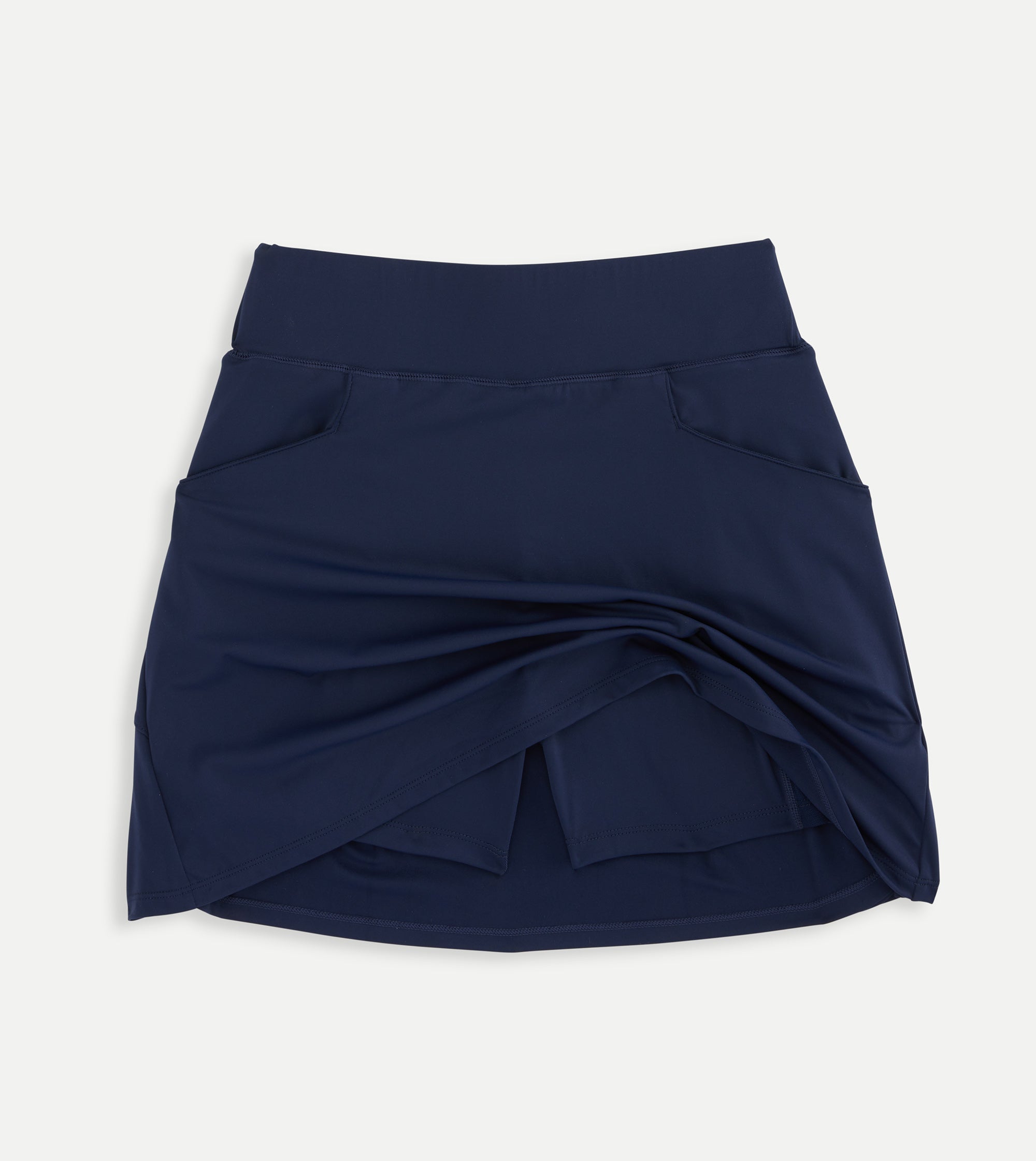 Pull on classic skort with back pleat detail. 16 1/2" length on skort. 80% nylon 20% spandex knit performance fabric. 2 front pockets. Interior bike shorts with additional pockets and tee holder. Imported. Machine Wash.