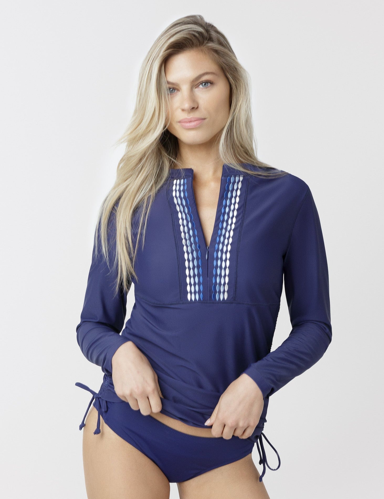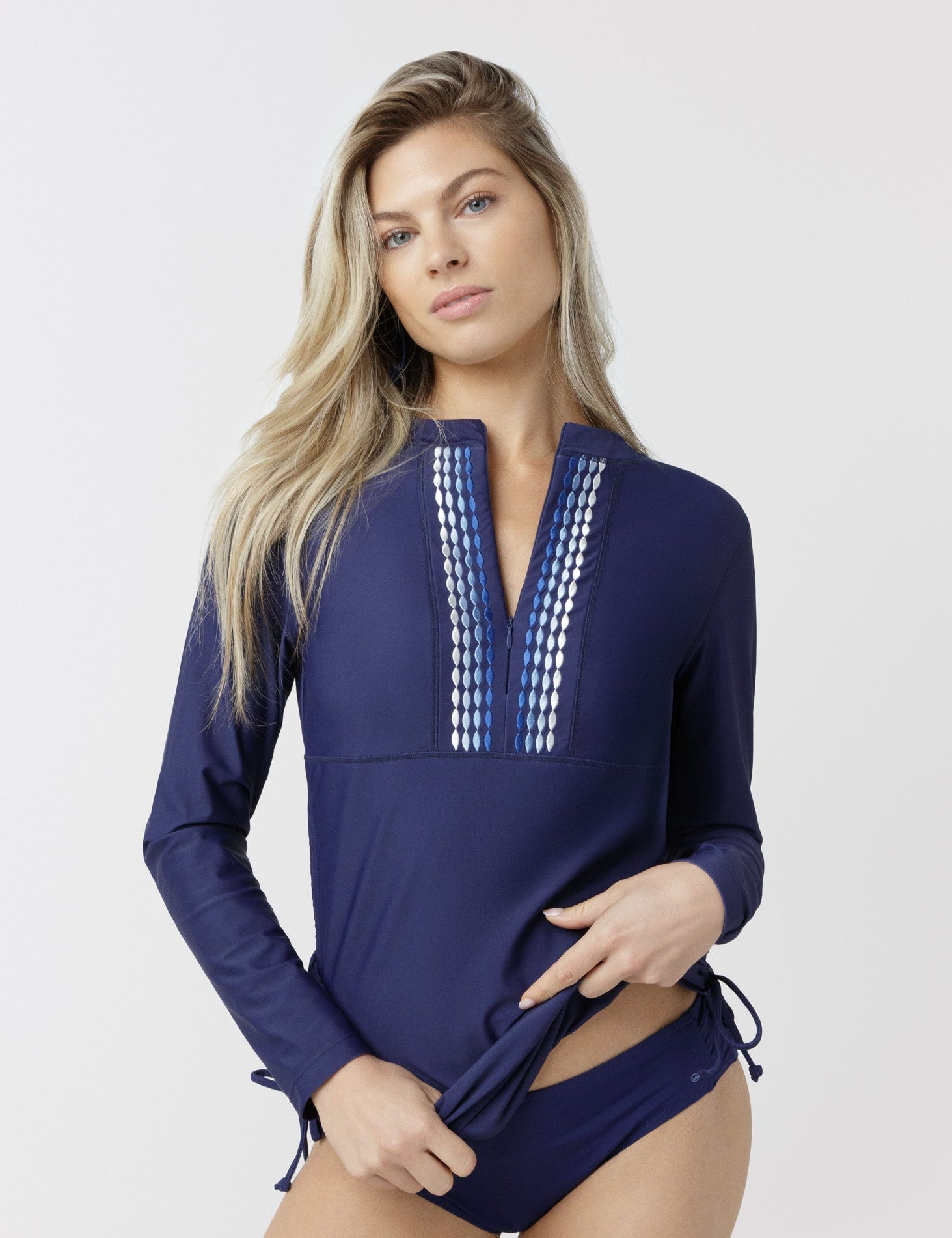 Navy Embroidered Convertible Ruched Rashguard