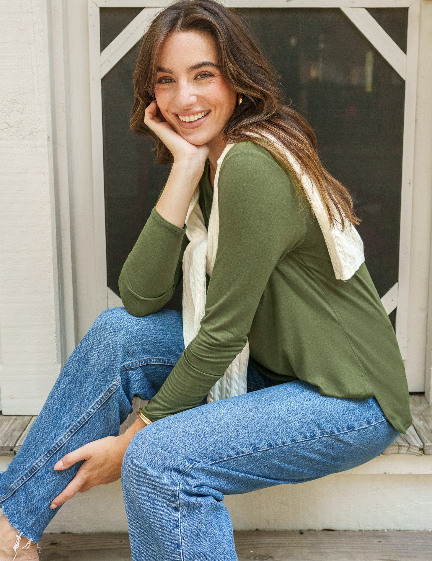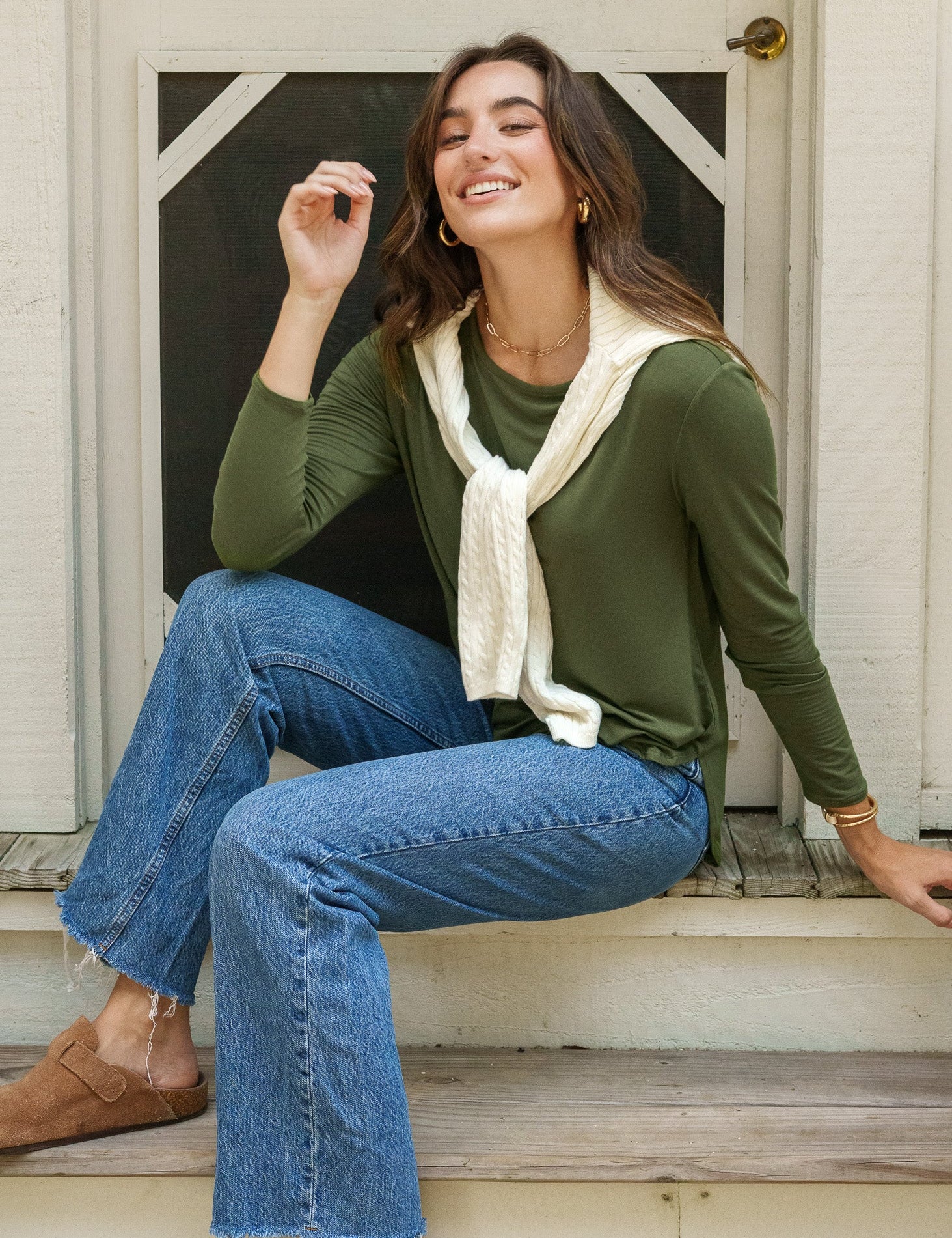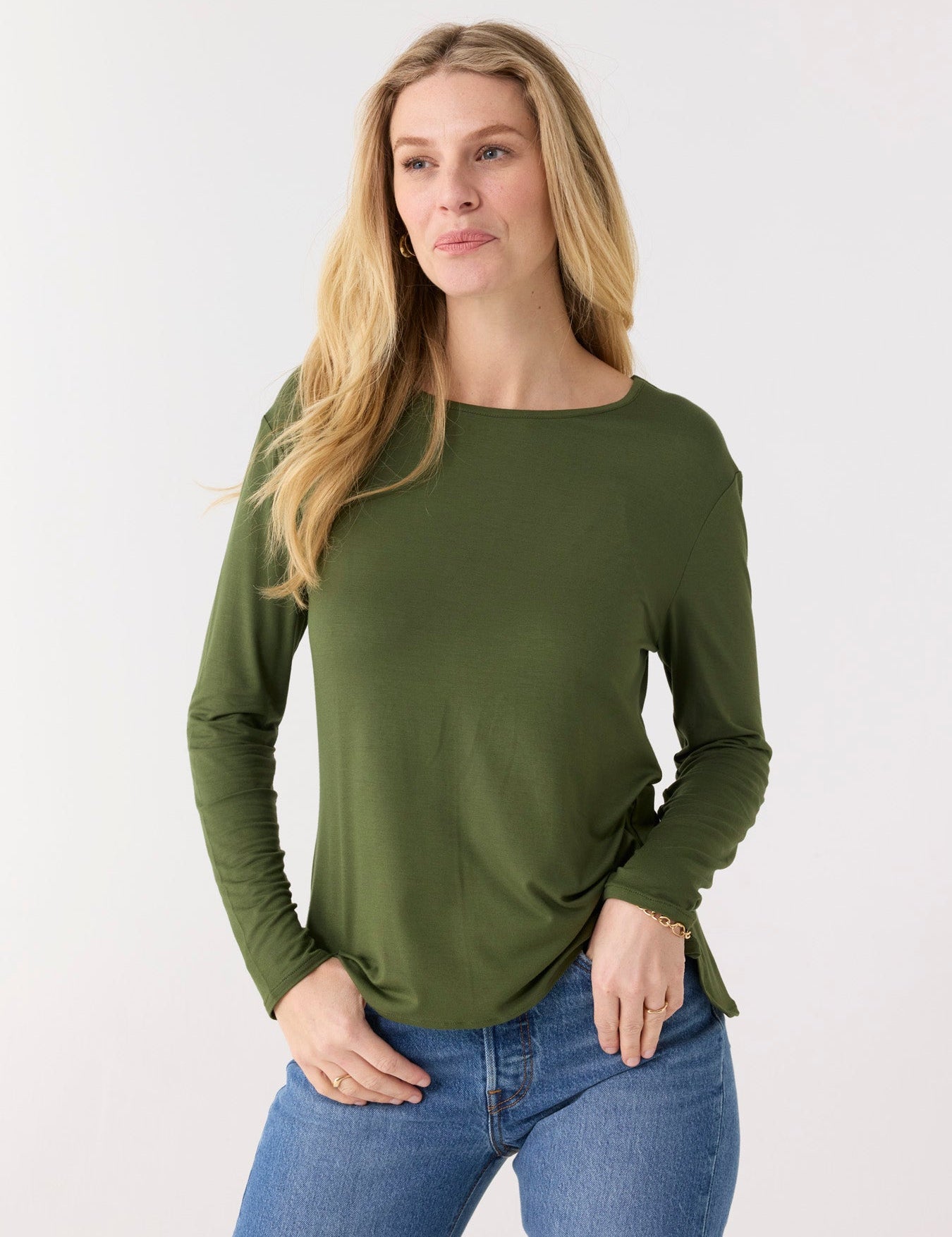 Olive Hi/Lo Bamboo Long Sleeve Top