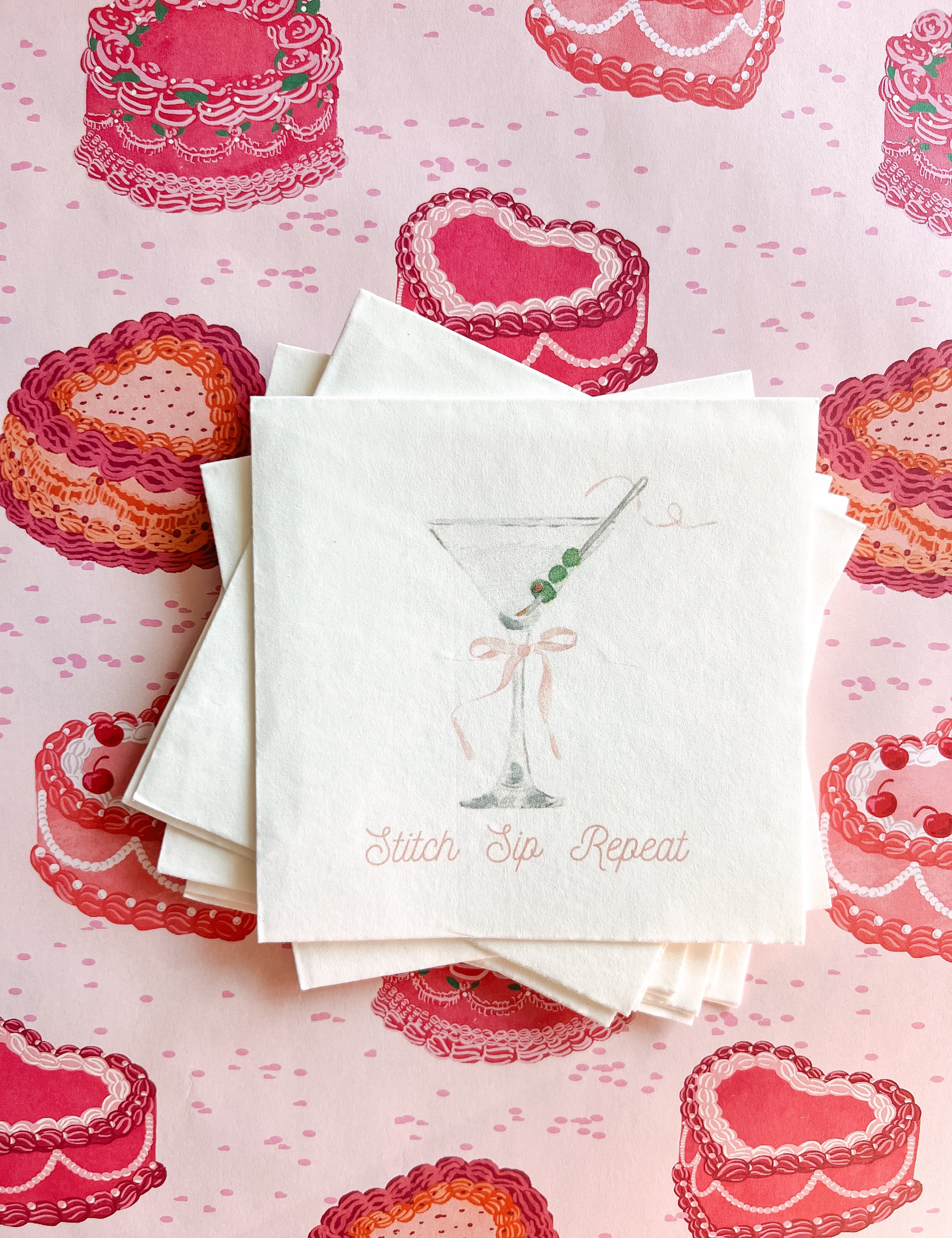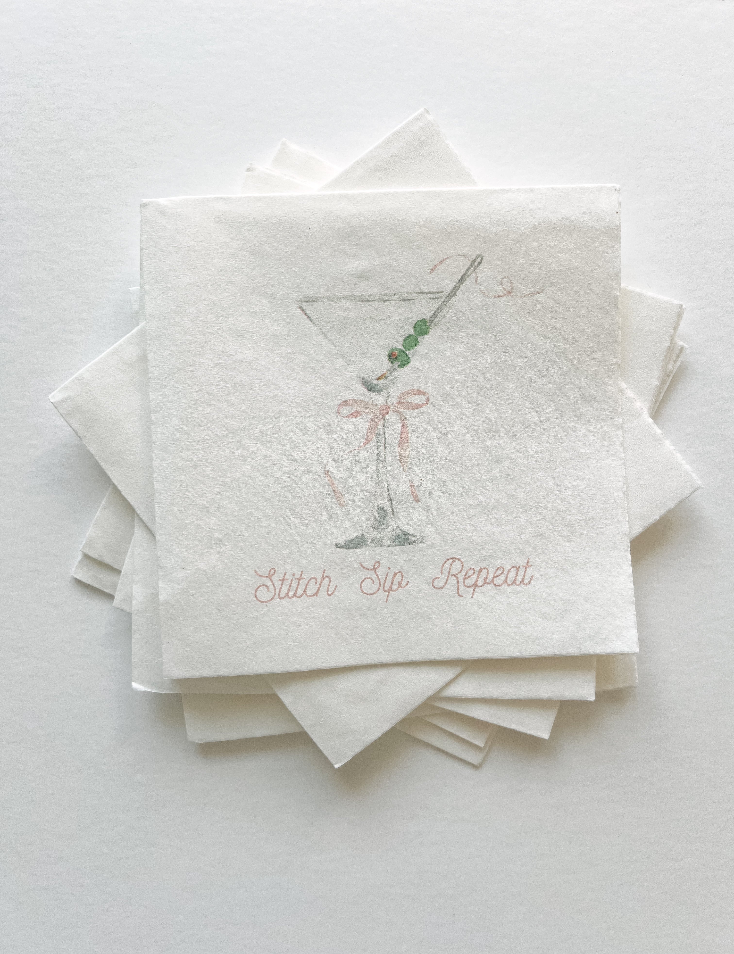 Stitch Sip Repeat Premium Cocktail Napkins with Martini | Designer Party Pack of 12