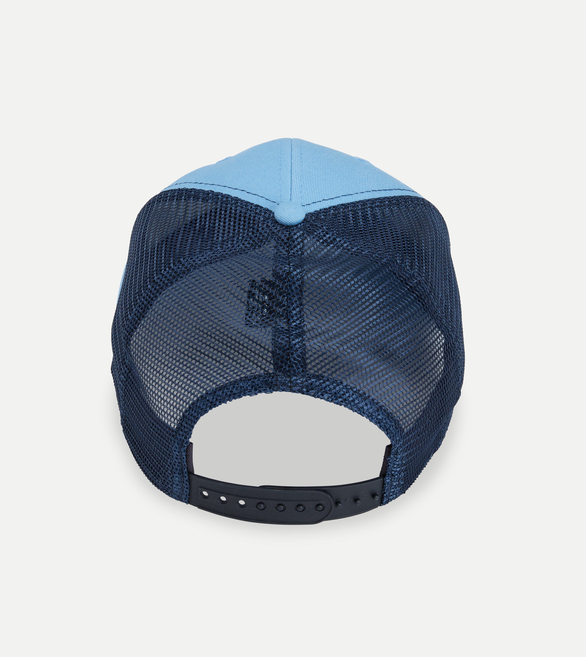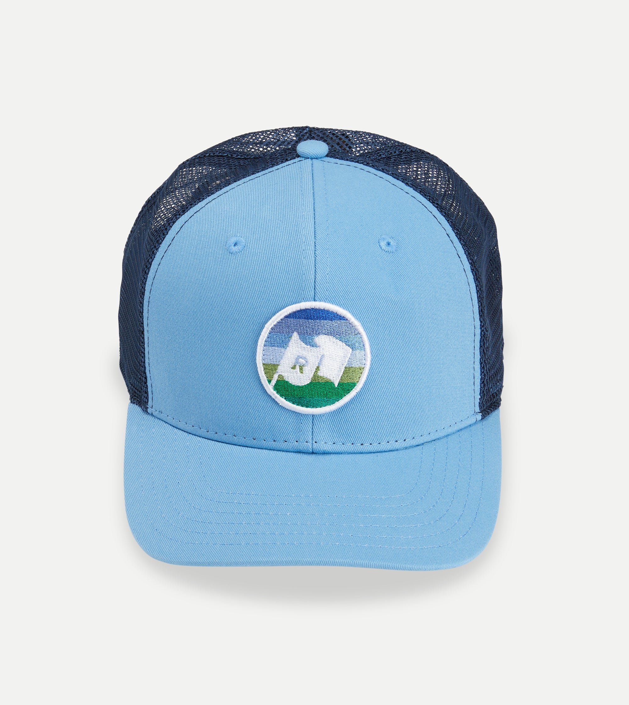 Cotton twill trucker hat with mesh back. Multi colored flag embroidery on front. Lightweight breathable fabric. Adjustable plastic snap closure. Imported.