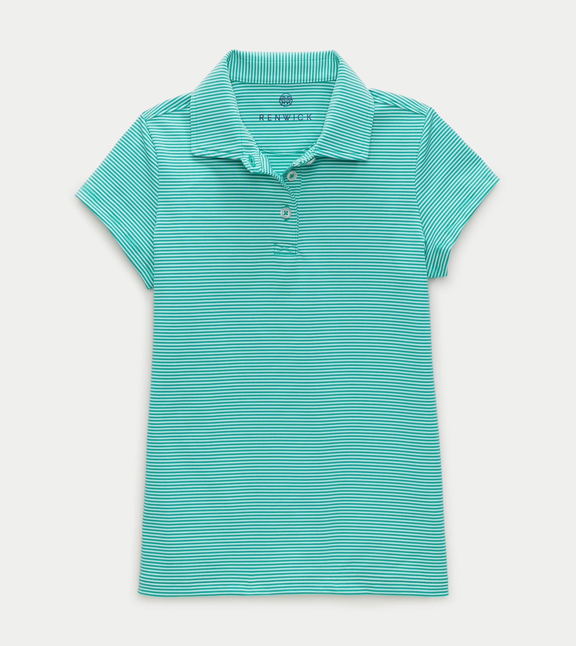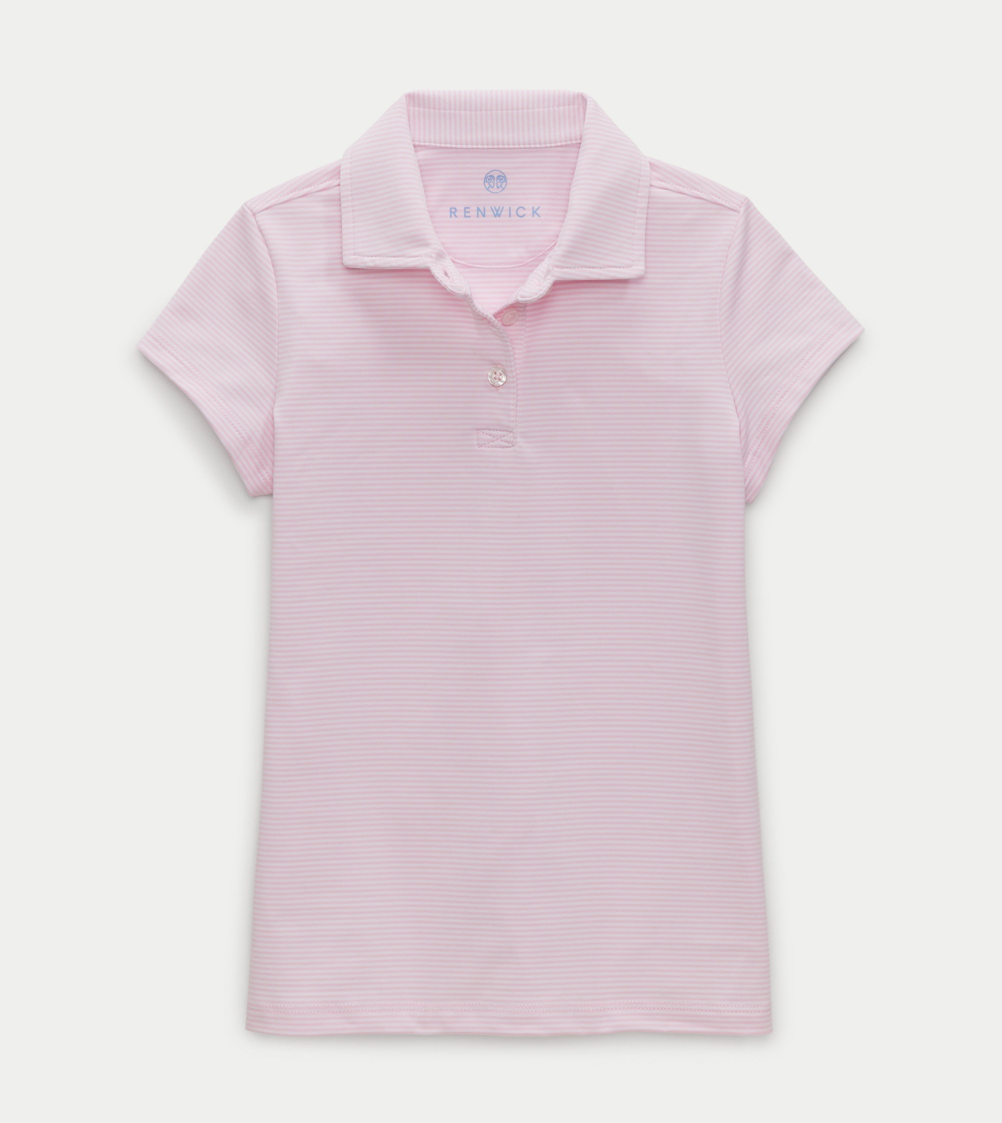 Short Sleeve. 3 button placket, shirttail hem. Performance polyester spandex blend. Machine wash. Imported. Sizes: XS (2-3), S (4-5), M (6-7), L (8-10), XL (12)
