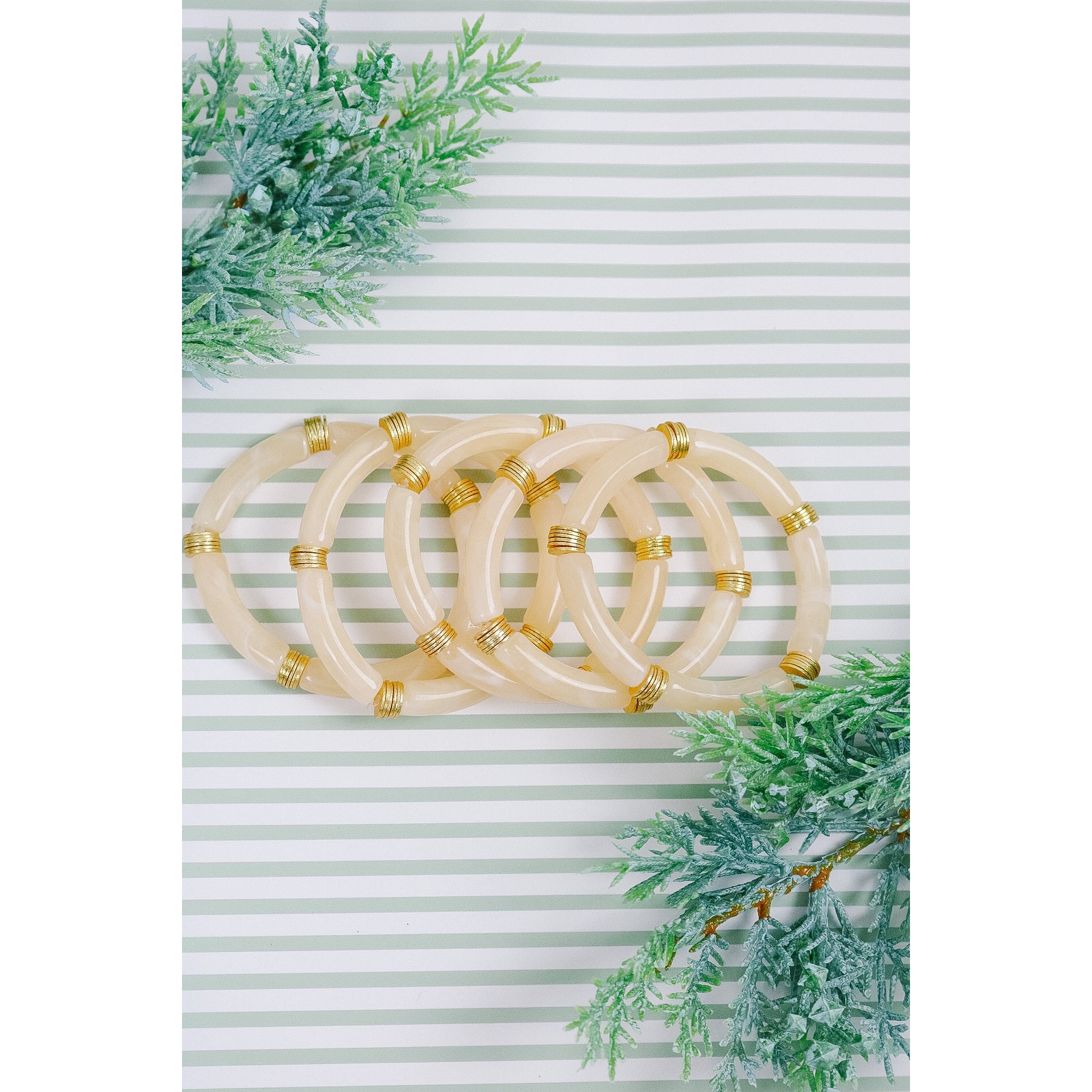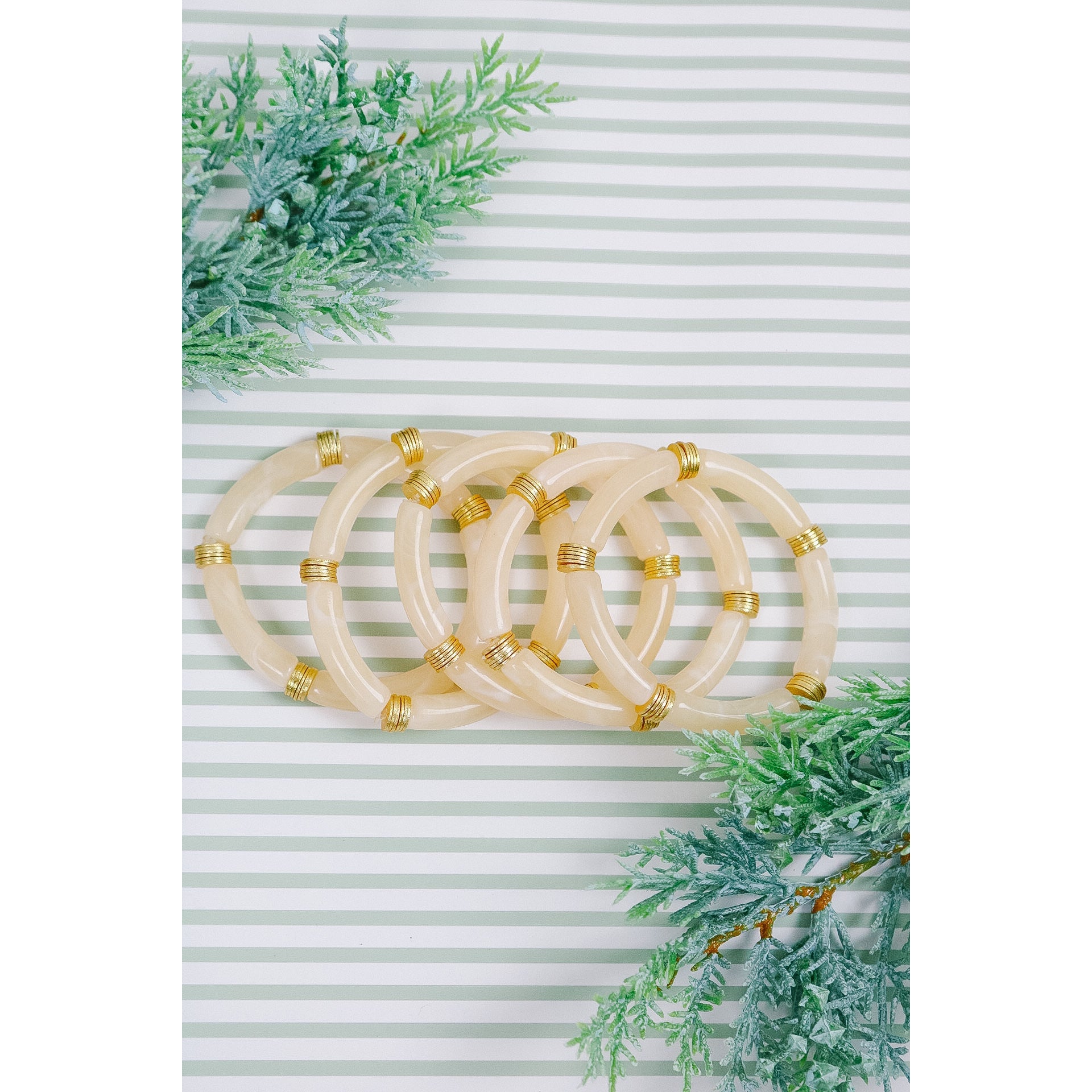 Water and sweat-resistant acrylic beads are a great way to stay accessorized! These fab stretch bracelets come in a variety of gorg colors & neutrals so you can pile them on in any combo you love. Gold accents offer a sophisticated touch to this casual, versatile style.