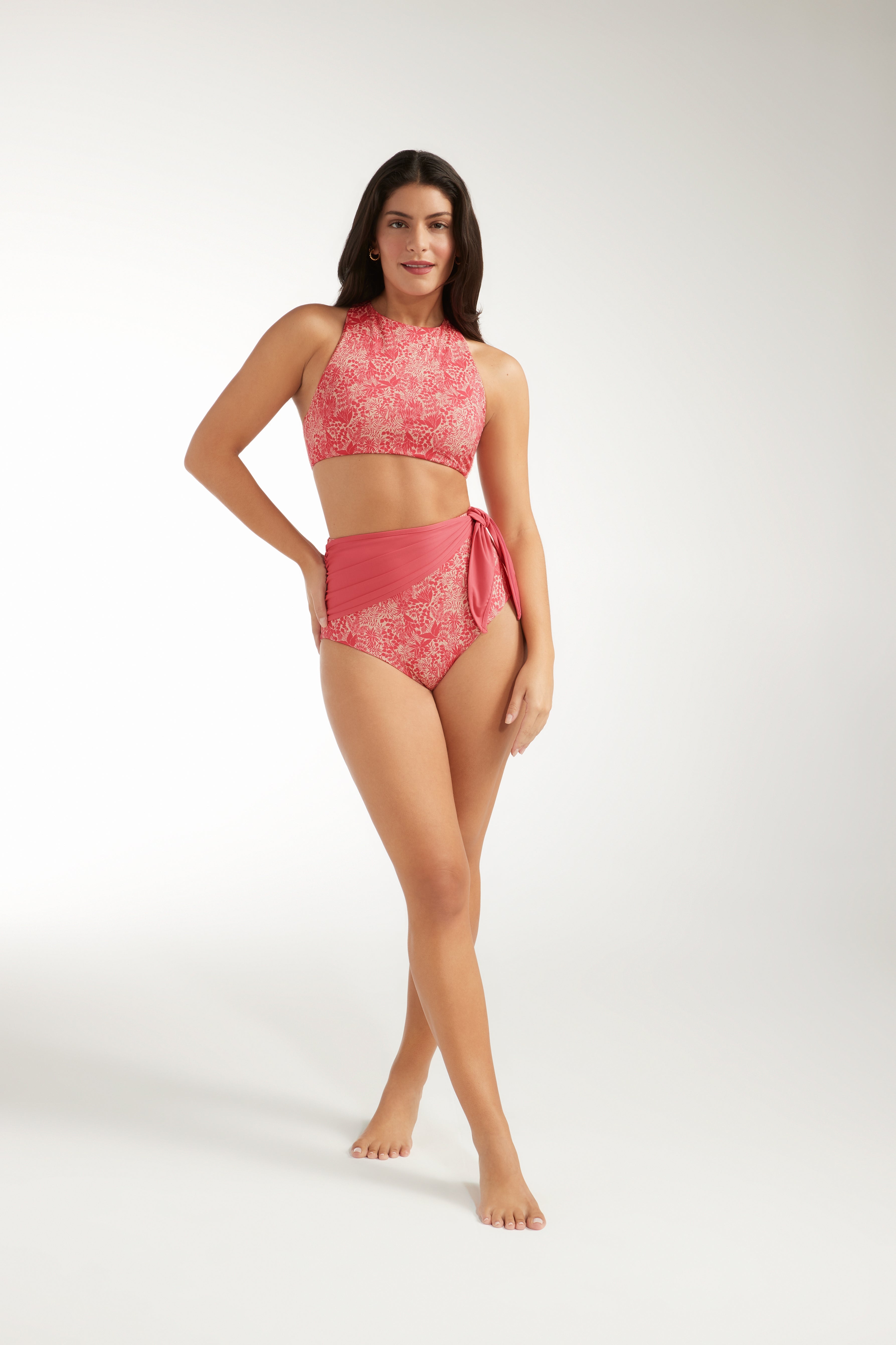Sporty and sweet! Add the Felicity Tankini Top to your rotation for a racerback, sleek moment ashore. Equipped with fully lined chest support and silky coverage, the Felicity is the perfect cross between fashion and function. It’s reversible too! Decide between a detailed dreamy Indra Coral print or lovely, blush Coral – for whatever the day calls for. Pairs perfectly with the Genevieve Bottoms!