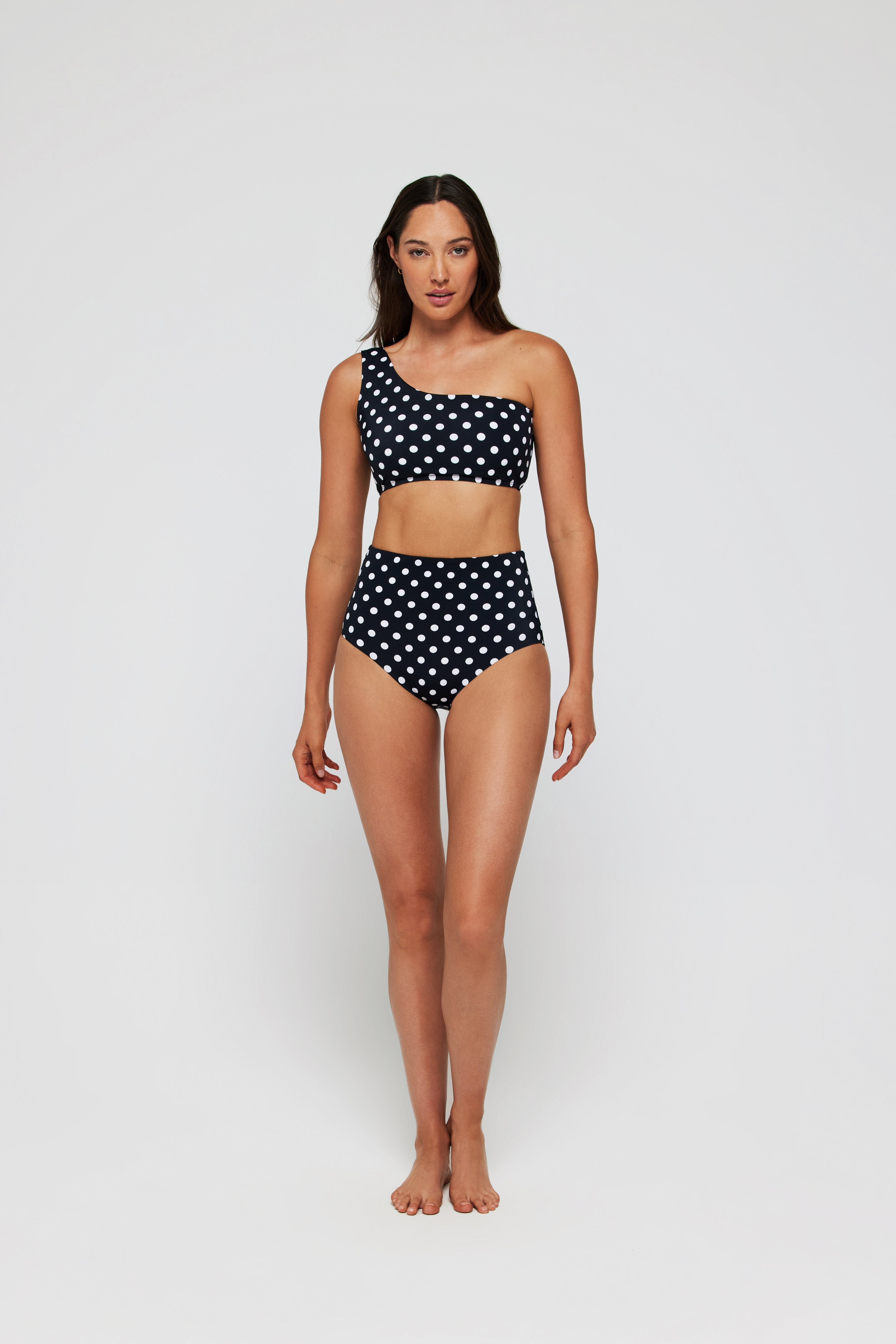 This Gianna two-piece swimsuit top is sure to catch some stares with its unique asymmetrical one-shoulder design. But it's not all just for show - the built-in bra provides the perfect support for a classy look. No wonder it's our best seller! Pair with the Mackenzie Bottoms.