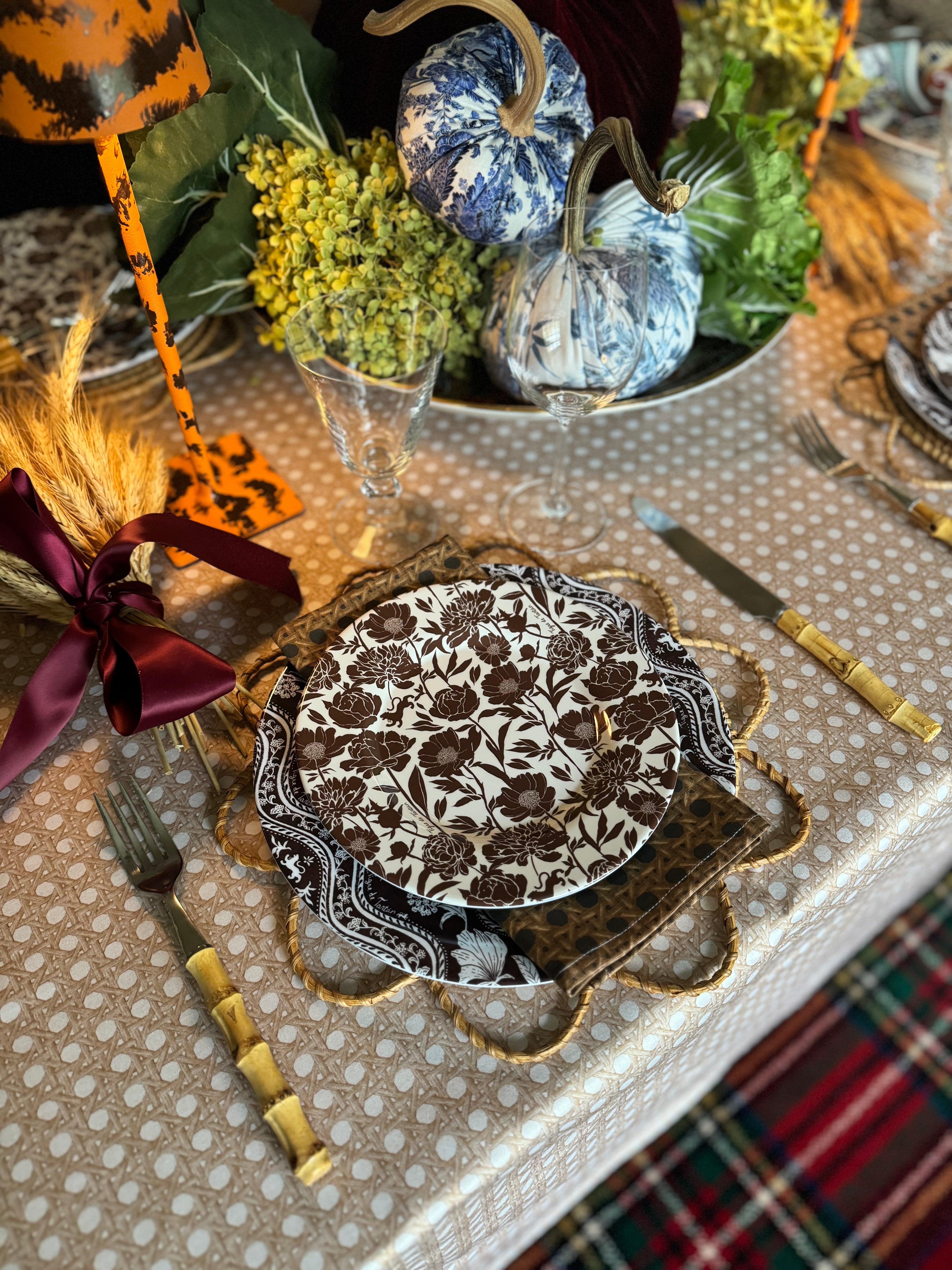 Experience our Domino Gingerbread design, showcasing a whimsical and graphic floral pattern. This artwork was designed by an independent female artist, and is exclusively ours. These are extremely convincing replacements for porcelain at first glance- their finish is glossy and smooth.